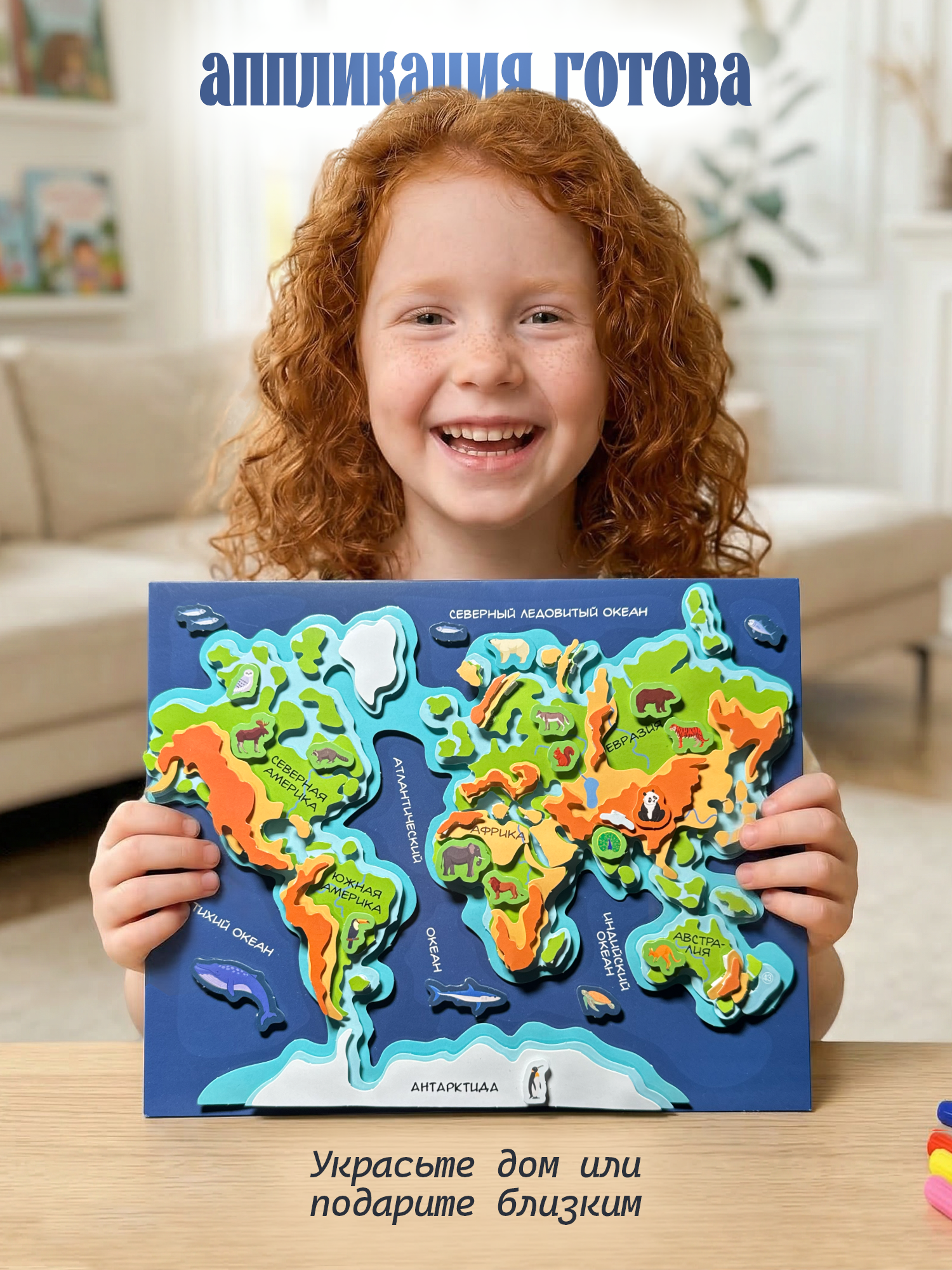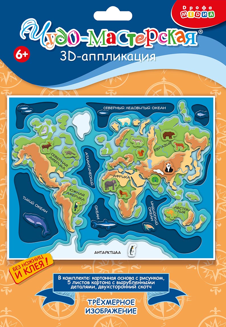 3D-аппликация — современный и очень увлекательный вид творчества. Данный набор позволит создать необыкновенно выразительную 3D-картину. Яркие и красочные детали изображения, выполненные из плотного картона, выступают над основой, создавая причудливый и сказочный мир. Этот удивительный 3D-эффект возникает благодаря использованию объёмного двустороннего скотча. Готовое изделие смотрится необыкновенно эффектно.