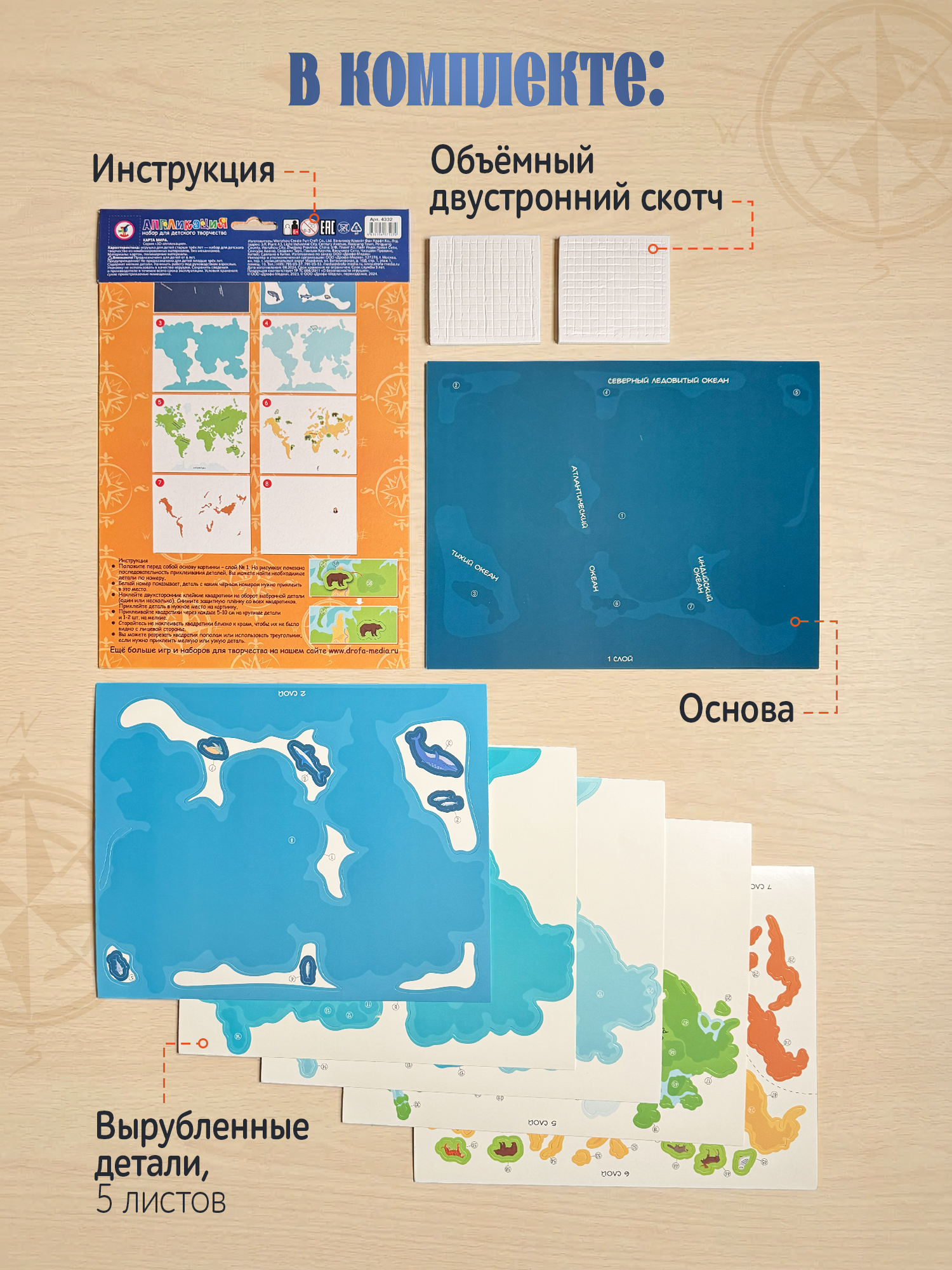 — цветная основа с рисунком и схемой размещения деталей,
