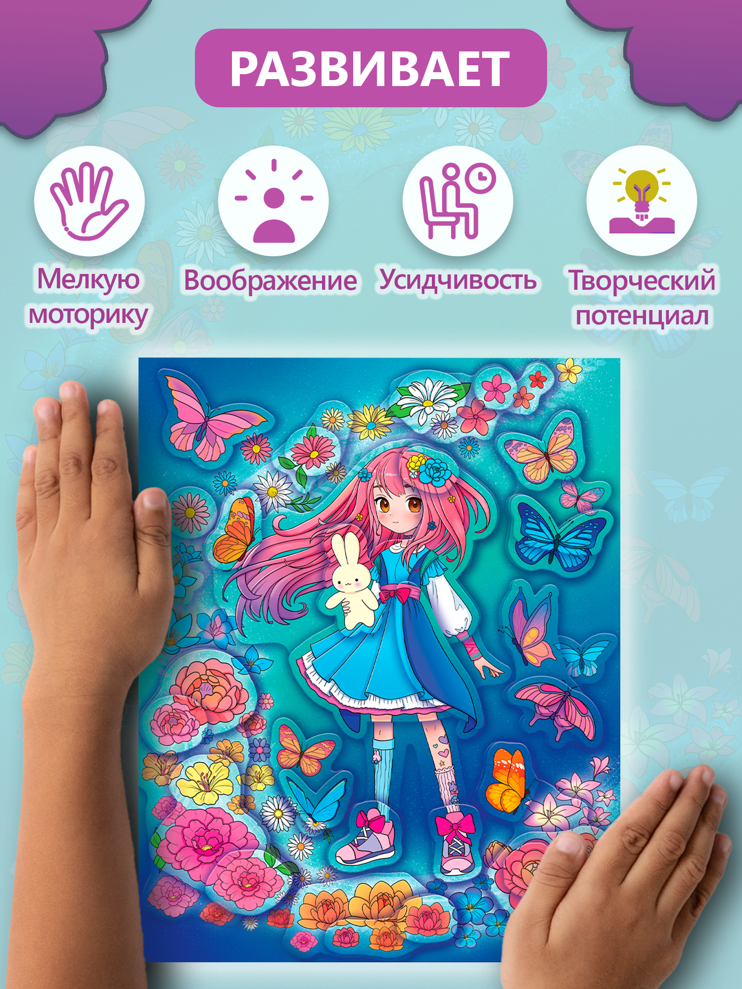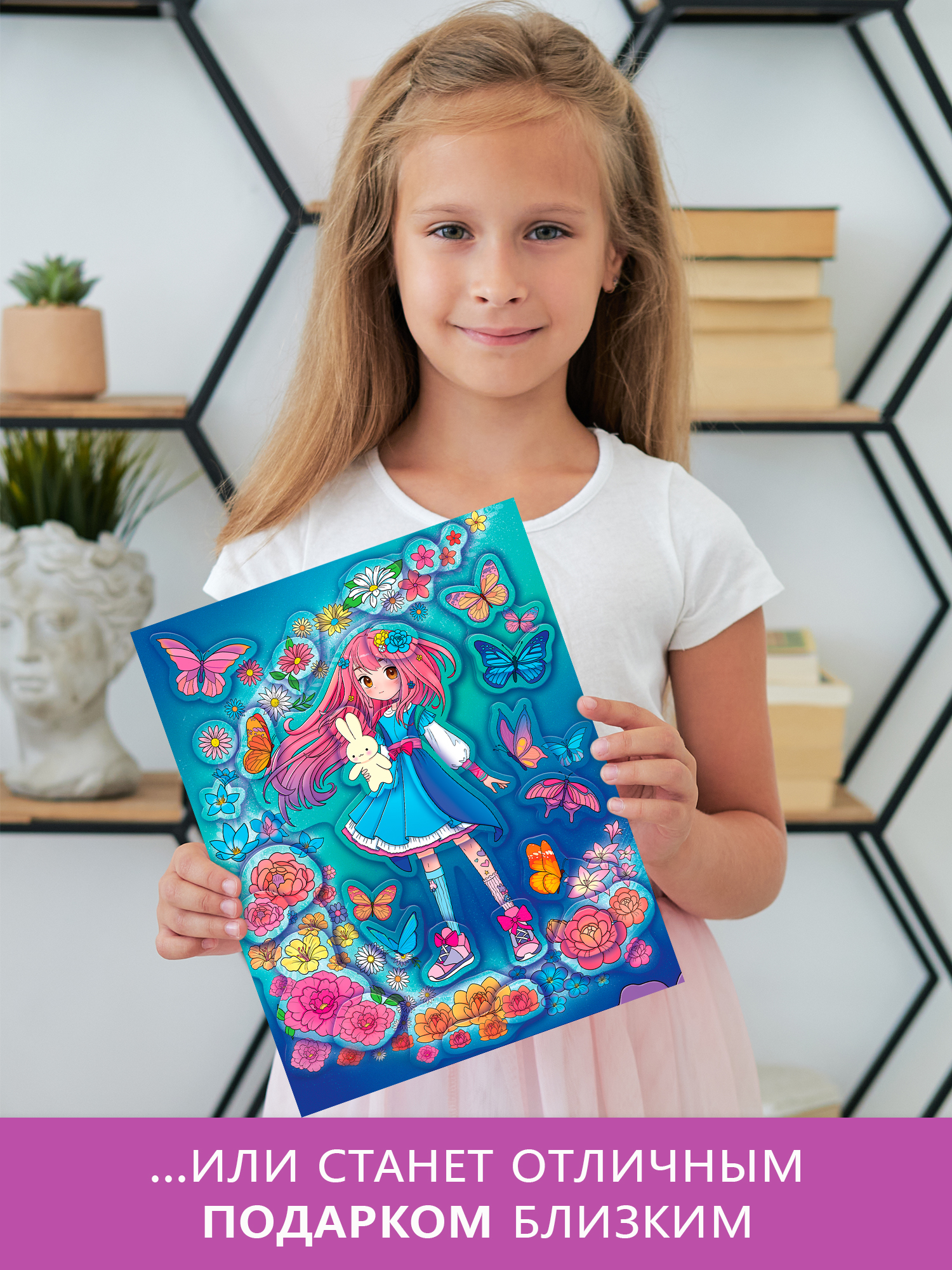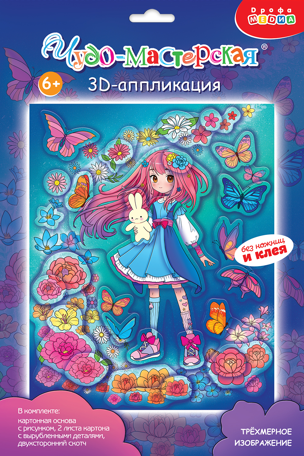 Новинка от Дрофы-Медиа – 3D-аппликация в стиле аниме! Думаете, стиль аниме это безумные глаза и странная одежда? Боитесь напугать ребёнка такими картинками? Дрофа-Медиа опровергает стереотипы и представляет милую аниме-девочку, которая дарит всем цветы. Композиция аппликации, выполненная в приятных, сдержанных сине-фиолетовых тонах, понравится детям и родителям. Кстати, «каваий» в переводе с японского – «милый», «хорошенький».