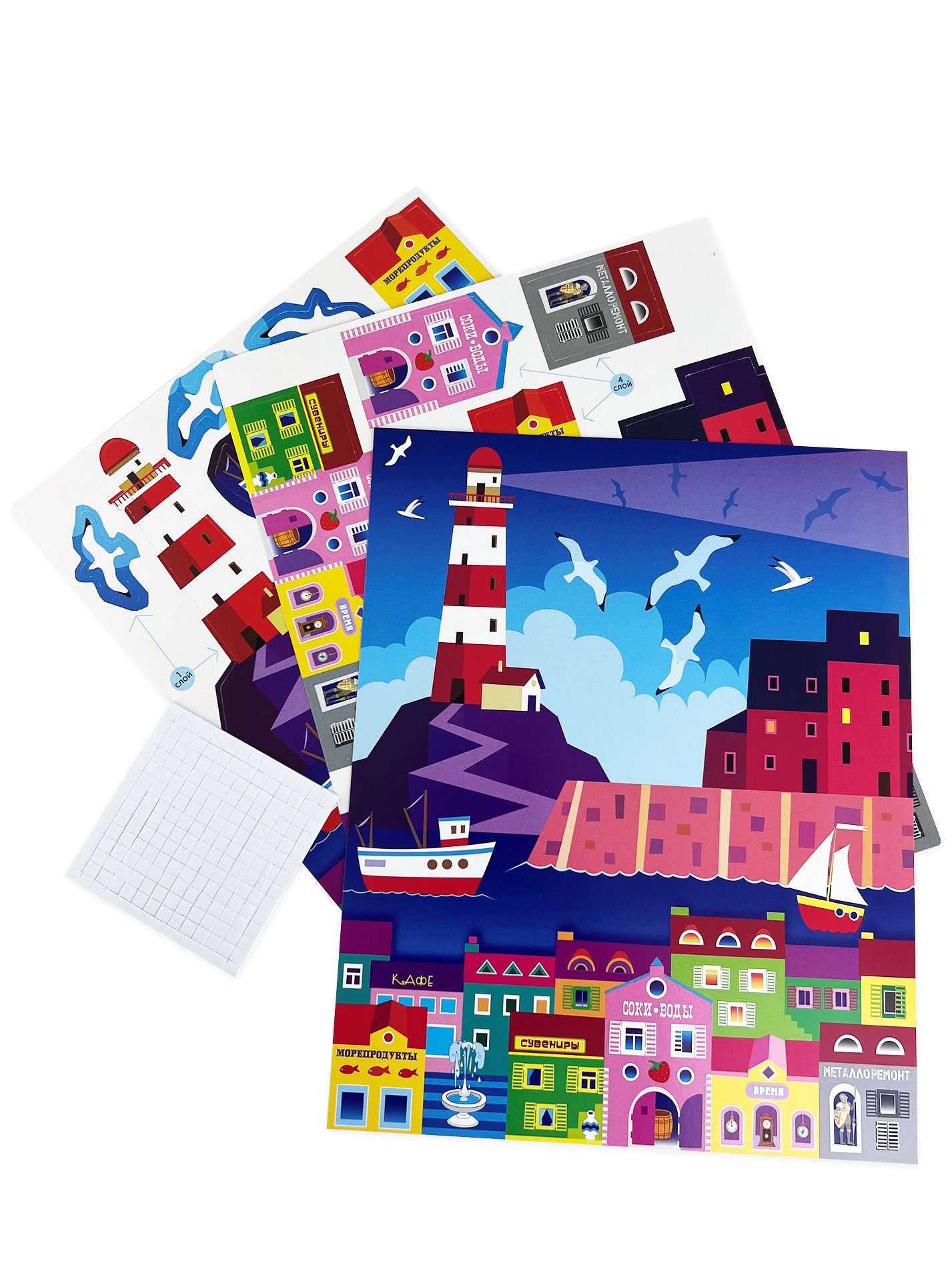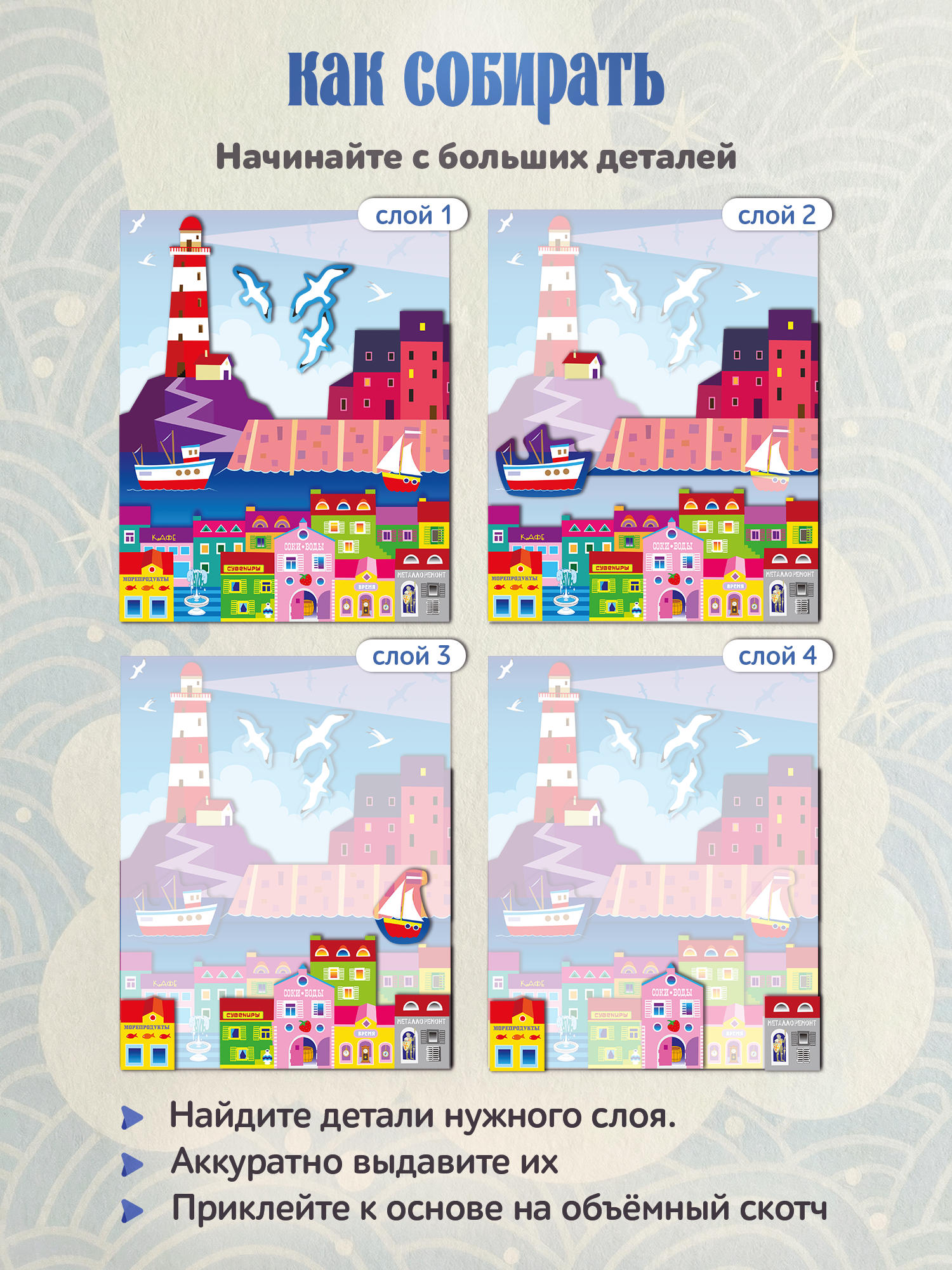 — цветная основа с рисунком и схемой размещения деталей,