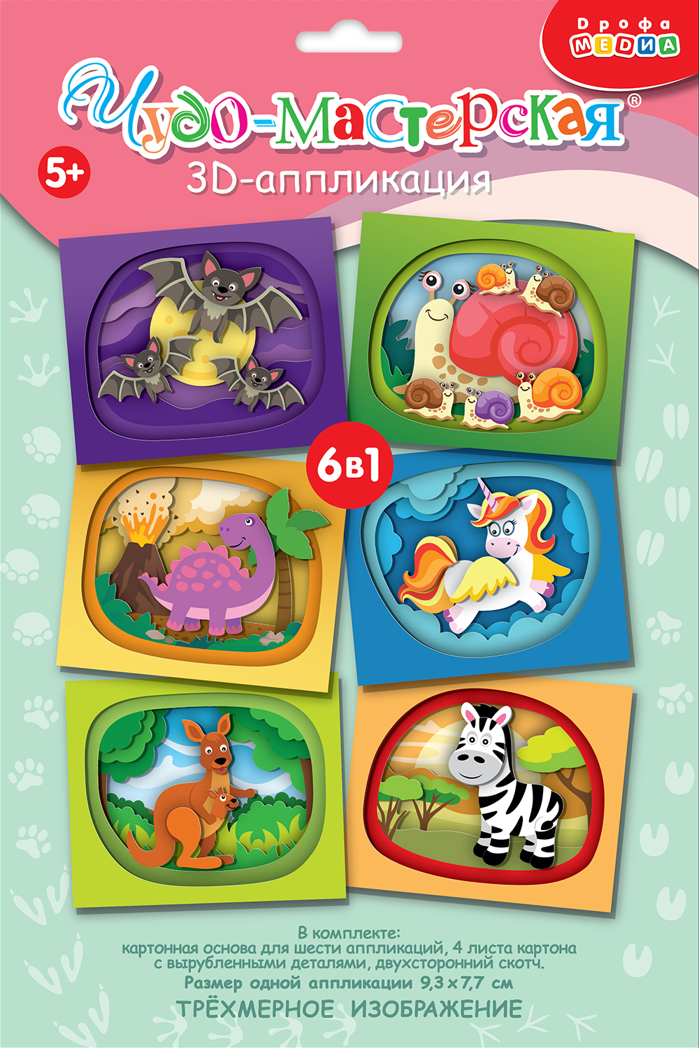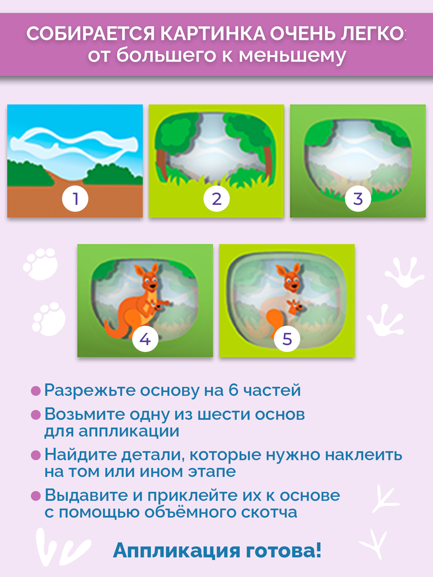 • 1 цветная картонная основа для 6 аппликаций;