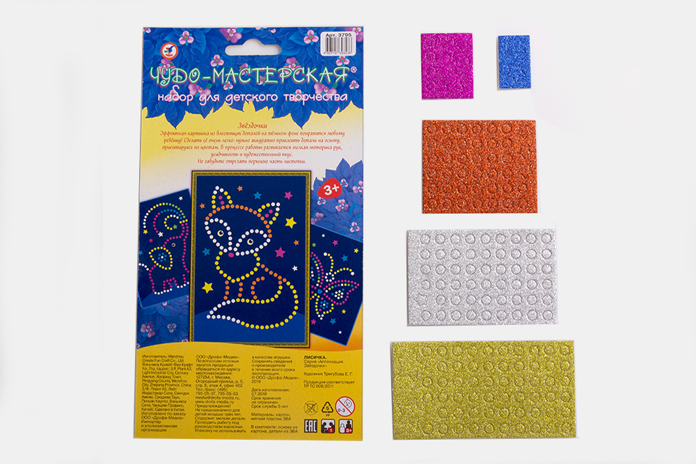 Работать лучше под присмотром взрослых — в наборе есть мелкие детали. В процессе работы развивается моторика, усидчивость, творческие способности и художественный вкус.
