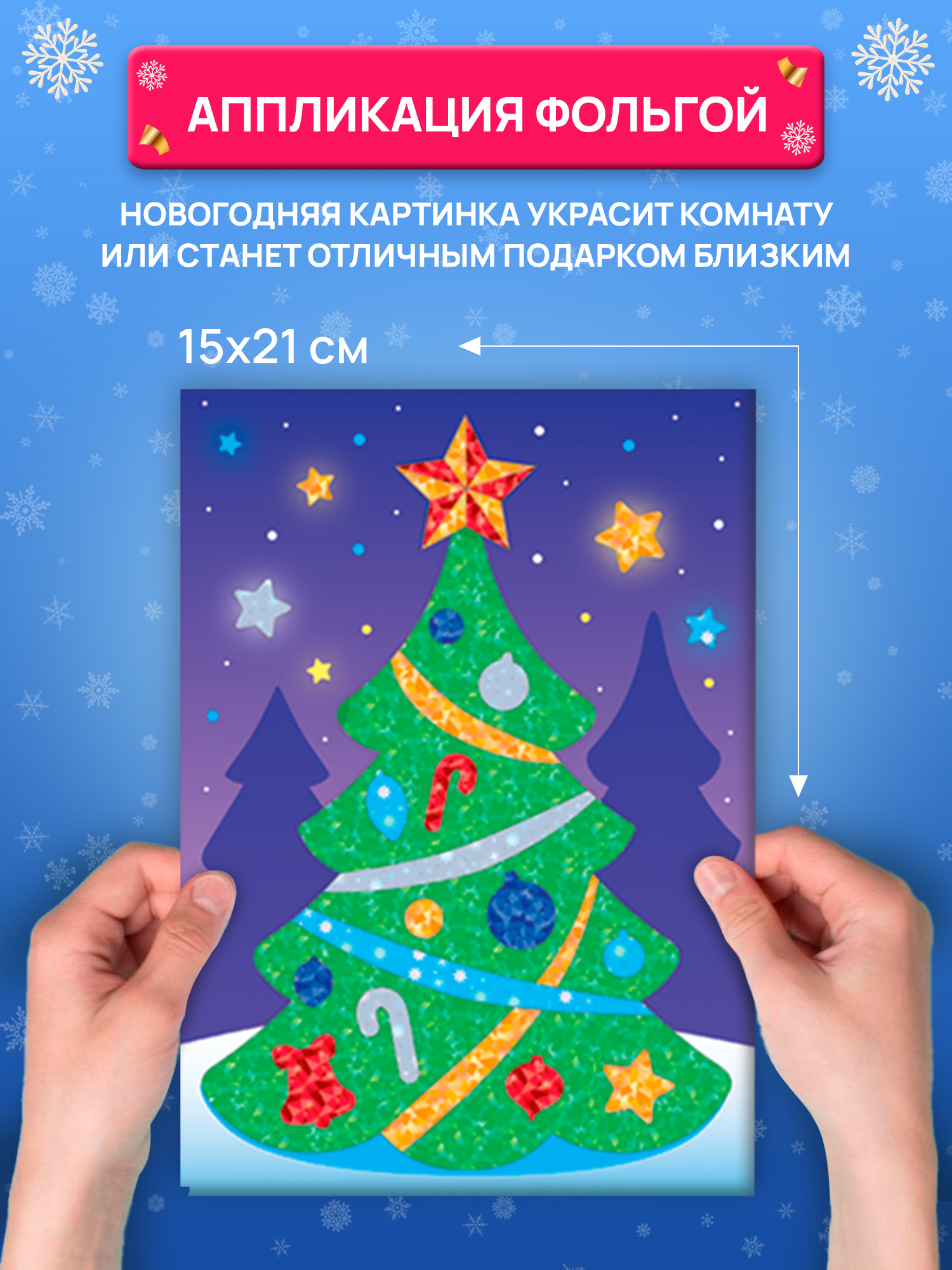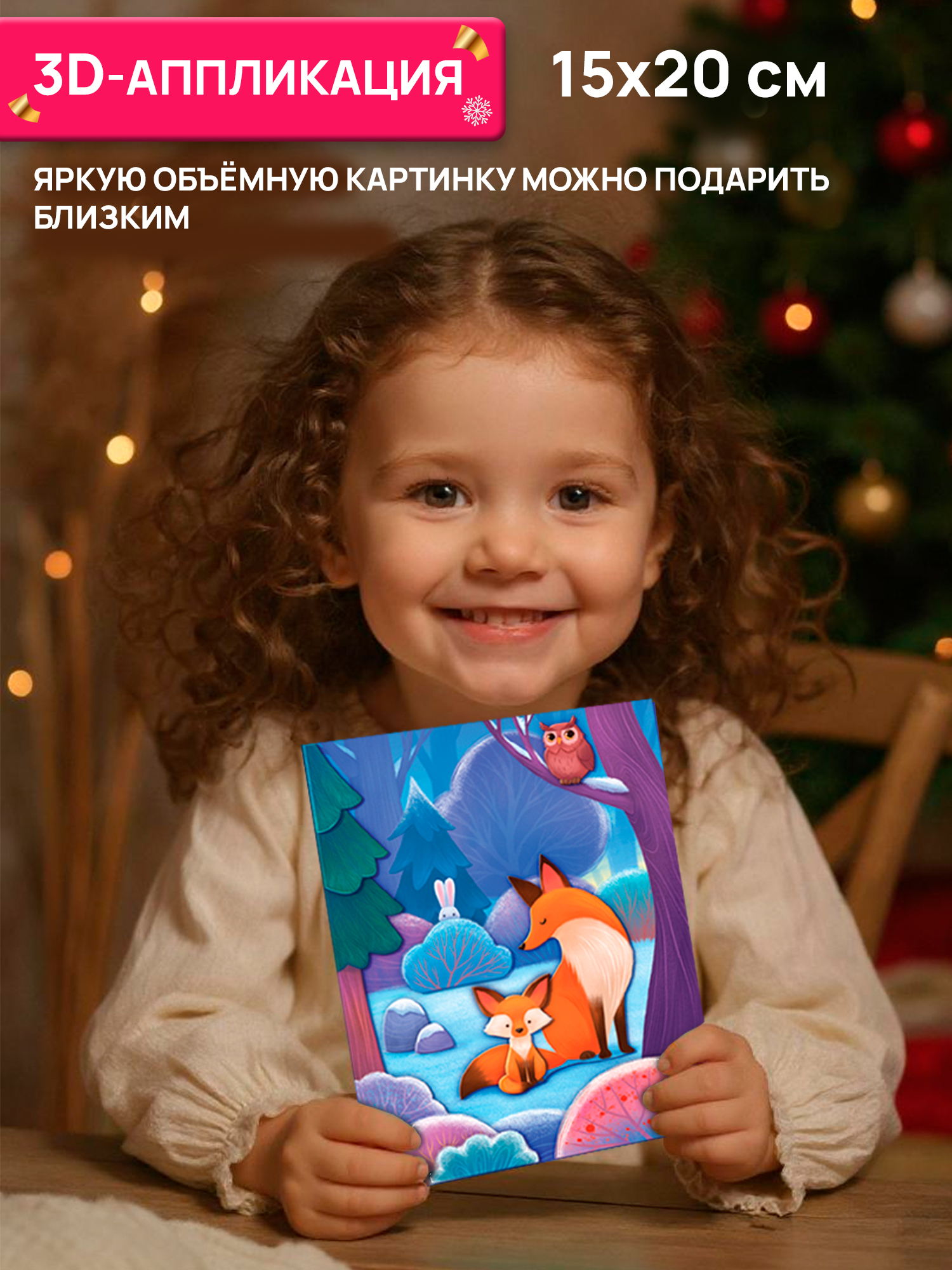 В наборе: основы для аппликаций из картона и мягкого пластика (12 шт.), листы с деталями из картона и мягкого пластика (4 шт.), фольга (9 шт.), листы с наклейками (2 шт.), листы для поделок оригами (2 шт.), декоративная нить, деревянная палочка, объемный двухсторонний скотч, магнитик.