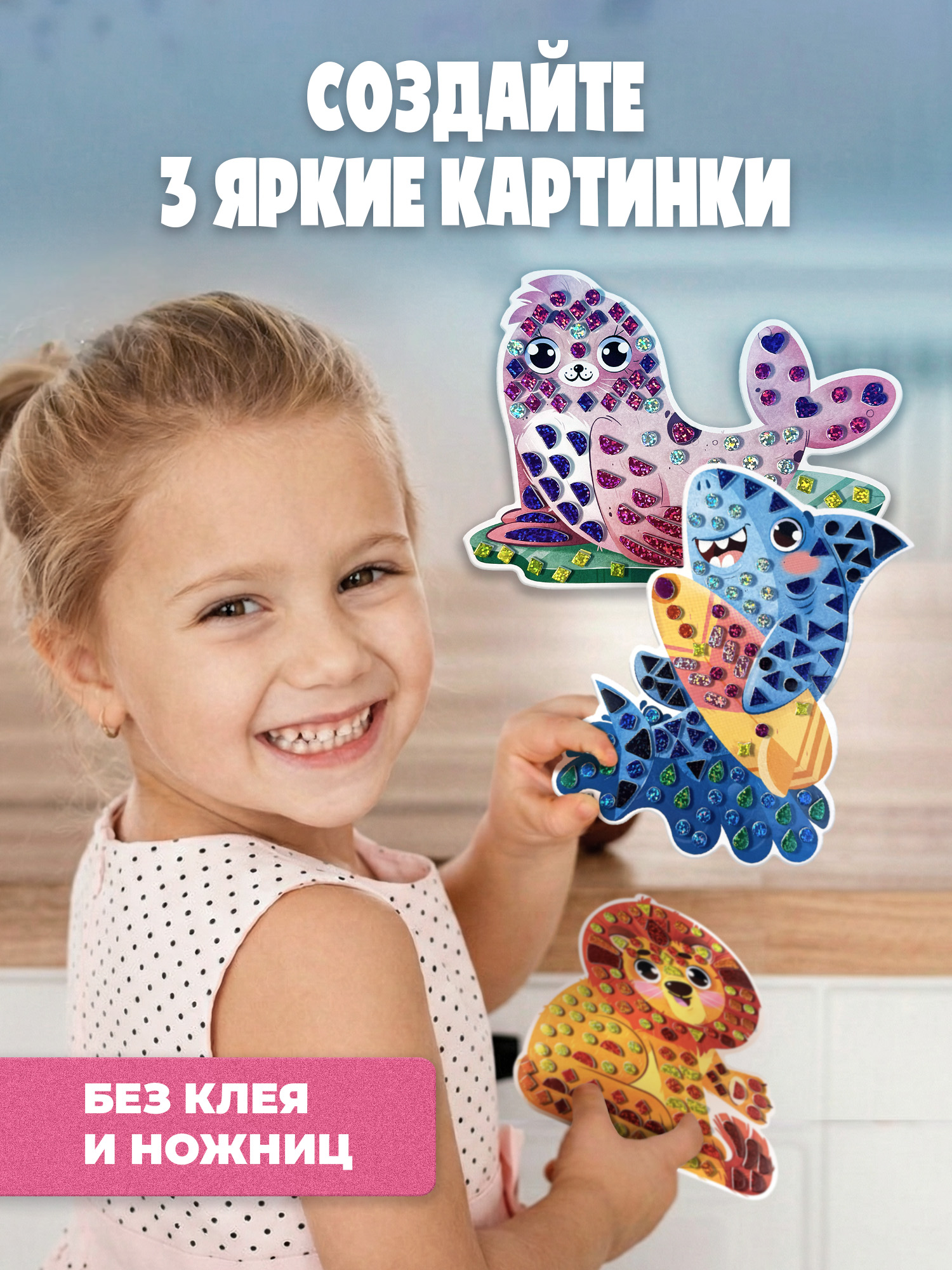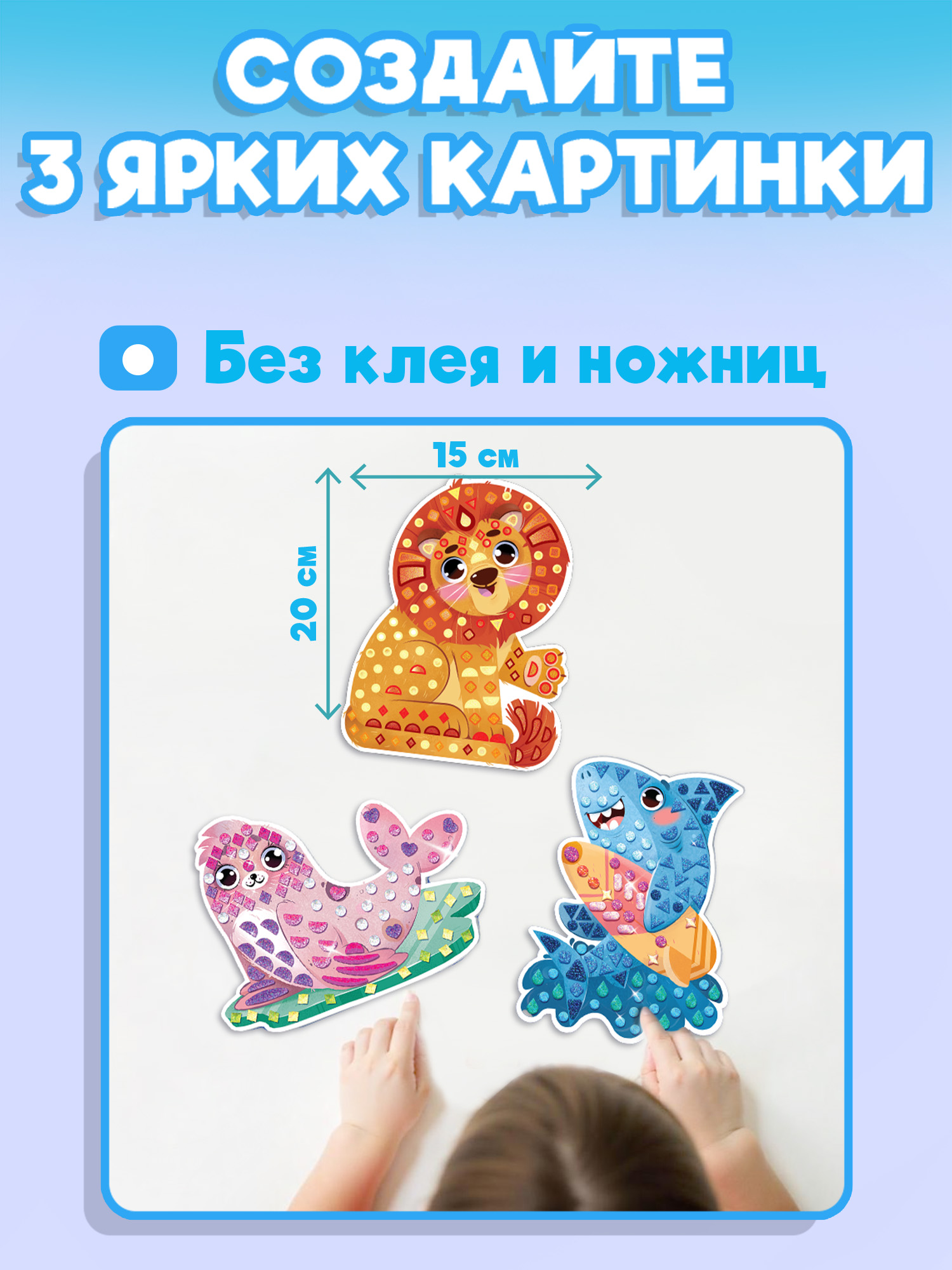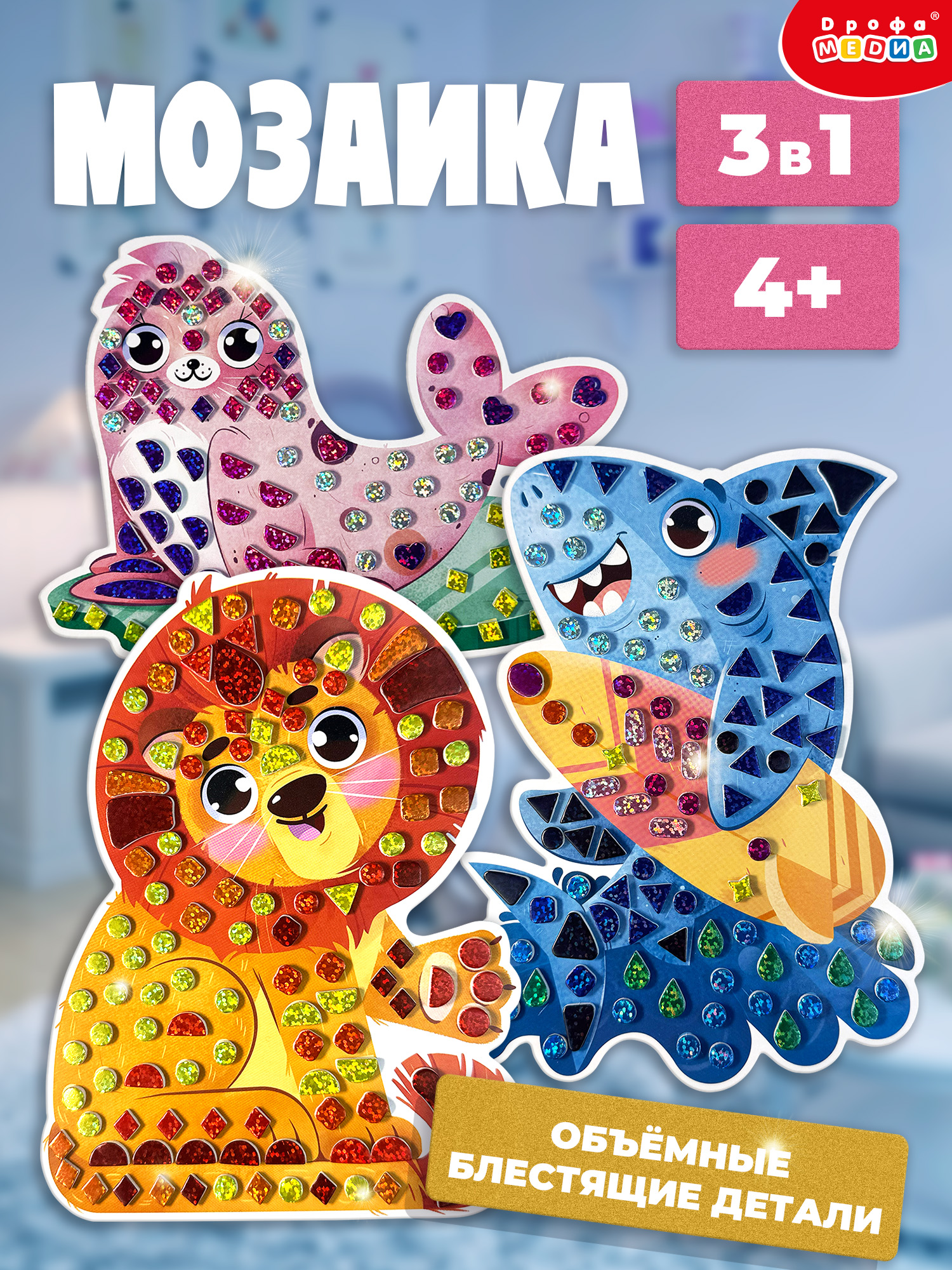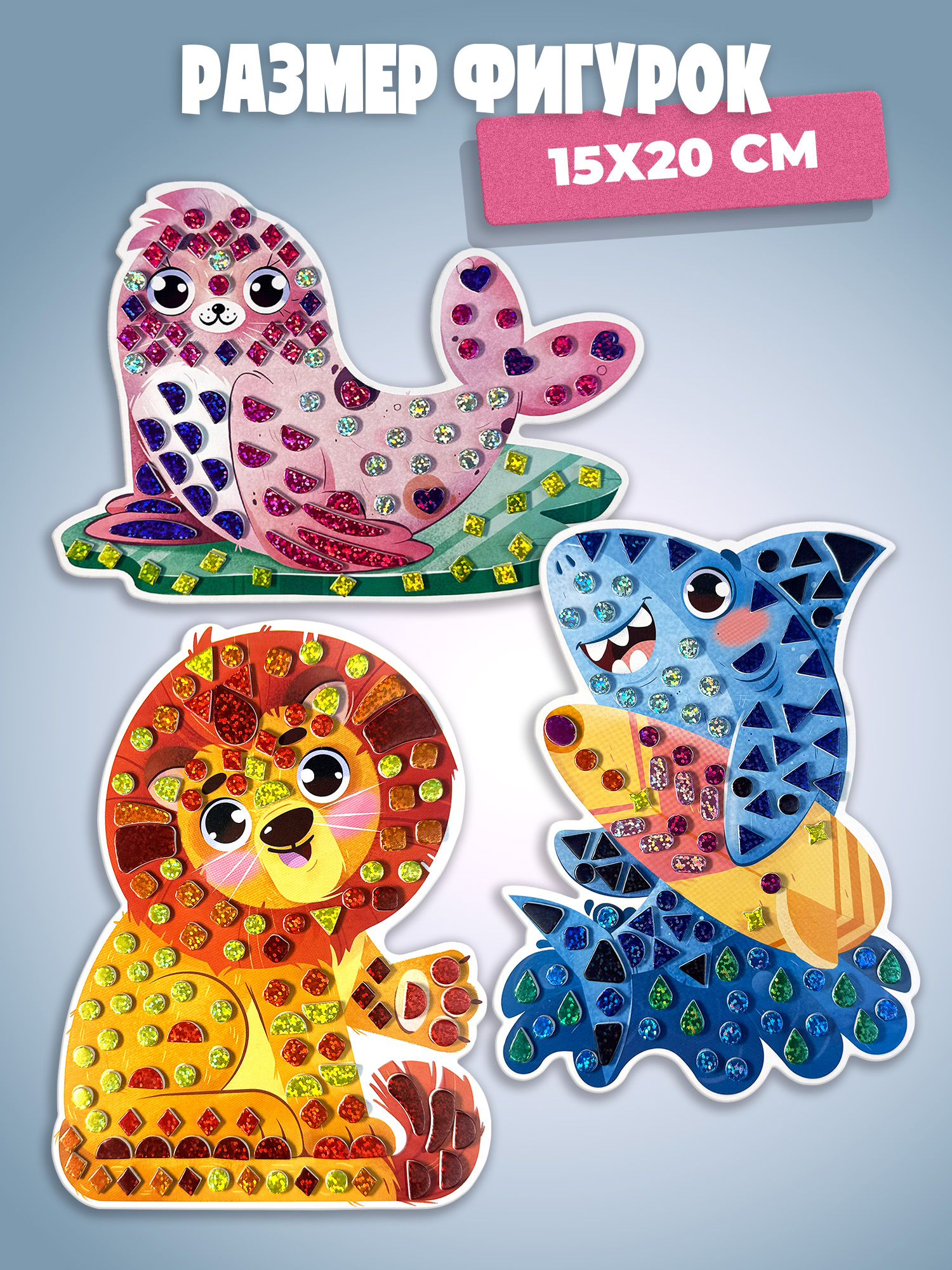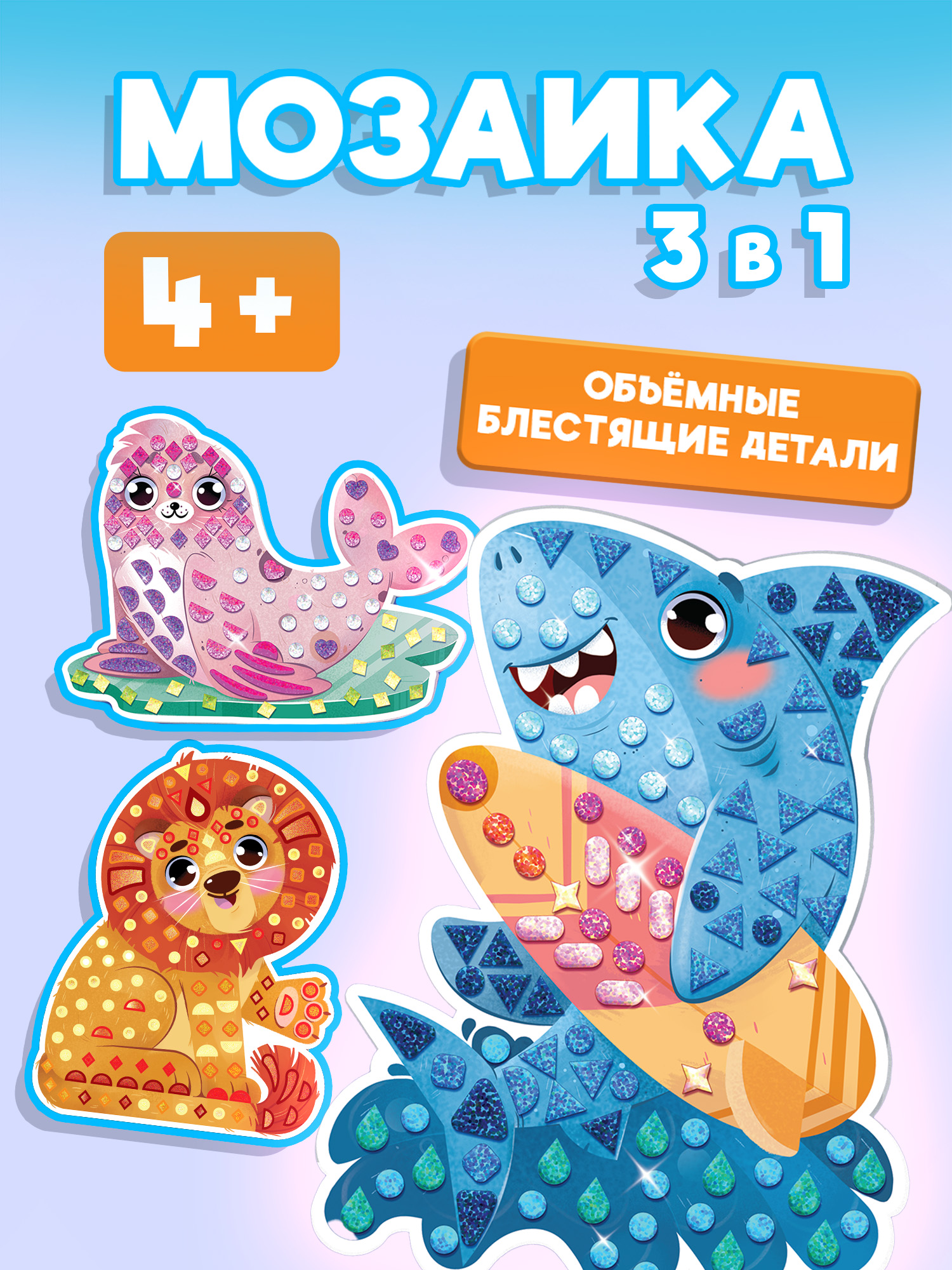 Фигурная мозаика 3 в 1 – это яркий и интересный набор для творчества, в котором украшать блестящими деталями мозаики нужно картонные фигурки, вырубленные по контуру.