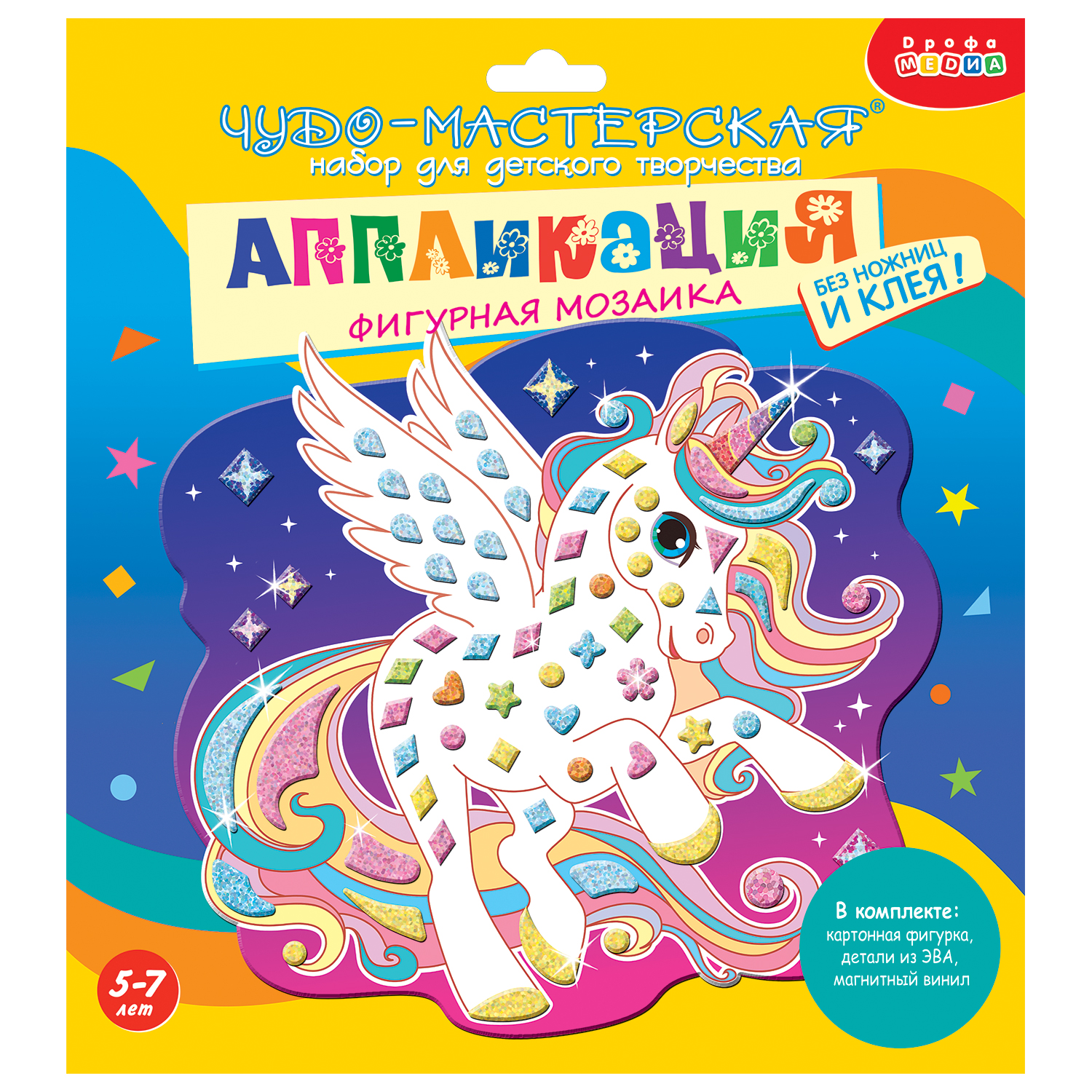 Творческий набор для создания необычной и интересной поделки — игрушки, выполненной в мозаичной технике. Материал мозаики — мягкий пластик ЭВА с голографическим покрытием — непременно привлечёт внимание юных мастеров. Каждая игрушка в серии имеет определённую форму, диктующую расположение деталей мозаики. В комплект входит магнитный винил, с помощью которого готовую работу можно повесить на холодильник. Поделка смотрится очень оригинально, благодаря использованию переливающихся и блестящих фрагментов мозаики всевозможных форм и размеров.