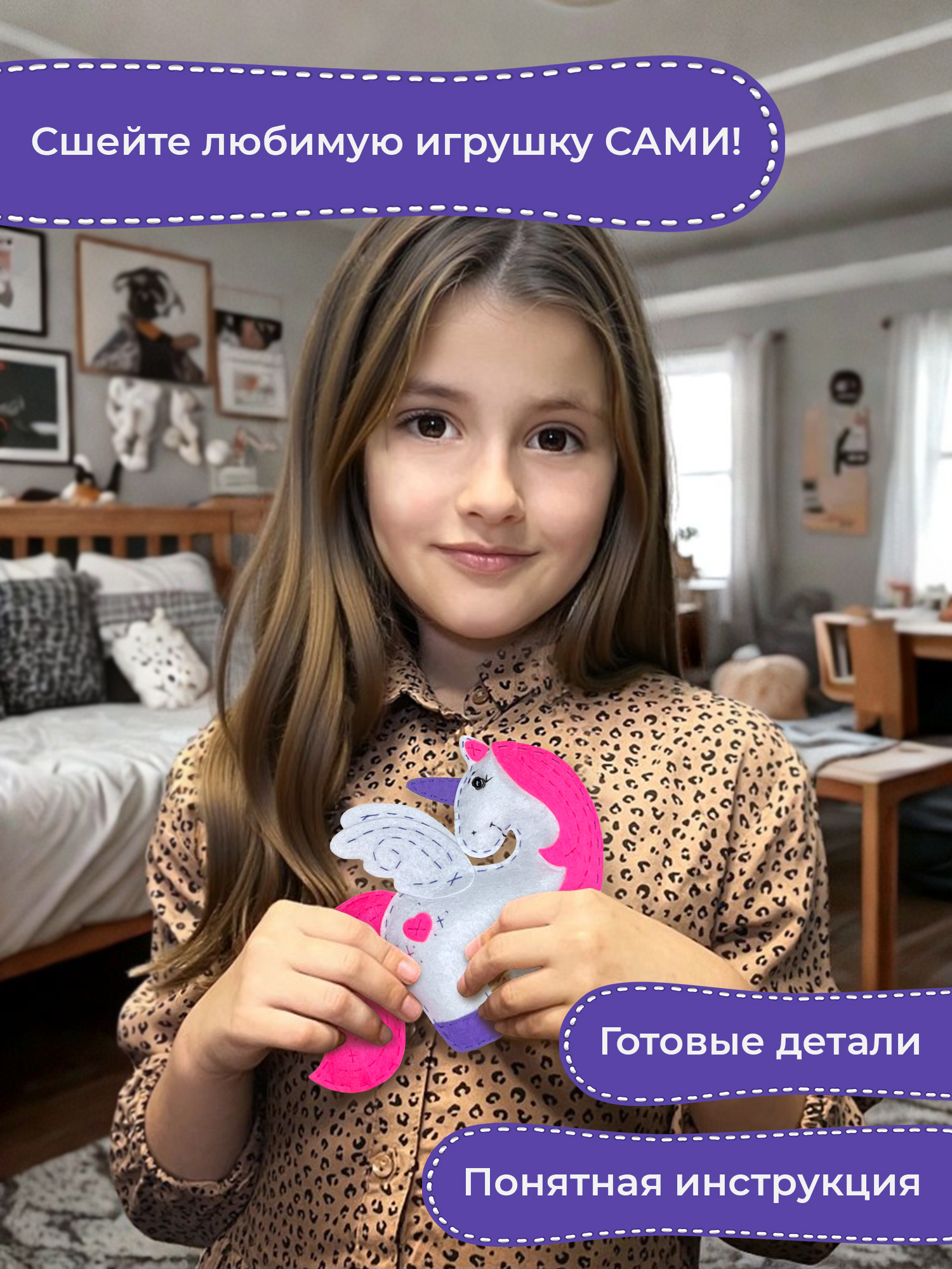Мы создали наборы для детей, которых увлекает рукоделие и творчество. В комплекте есть все для создания мягкой игрушки – сказочного крылатого единорога. Следуйте инструкции и у вас все получится!