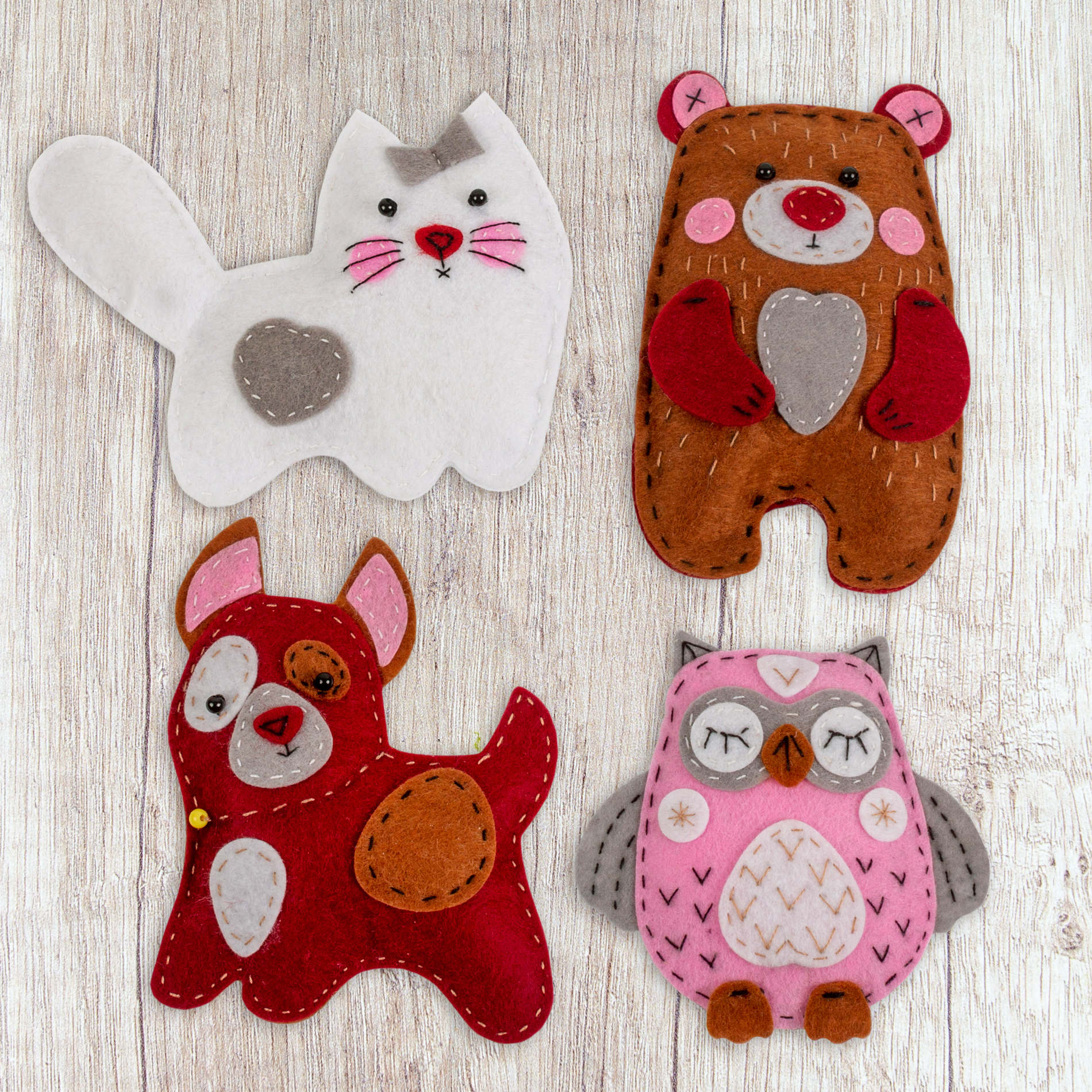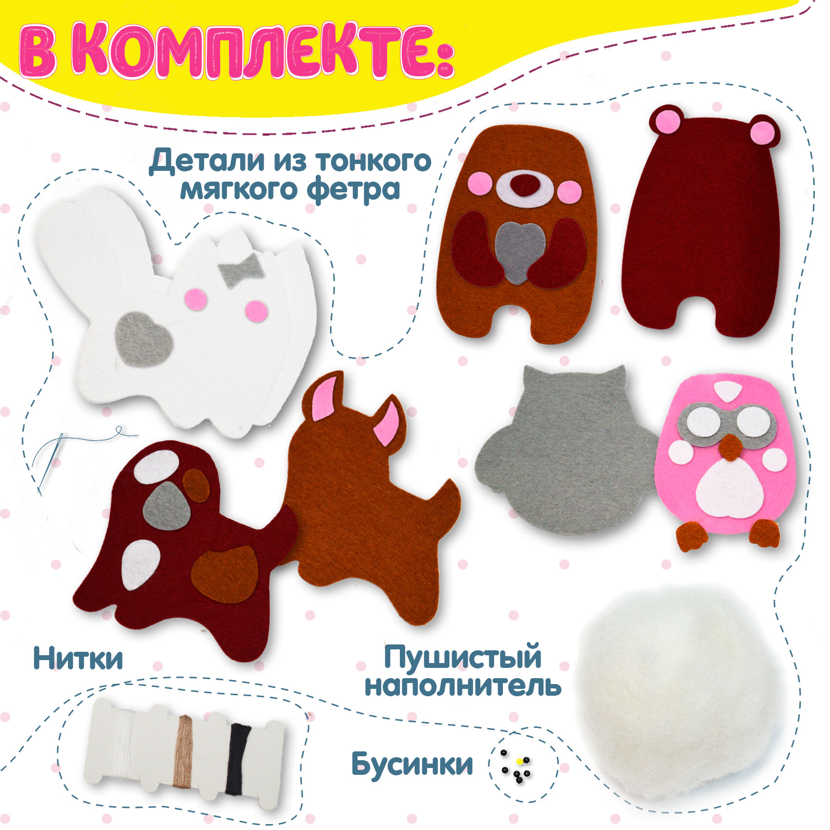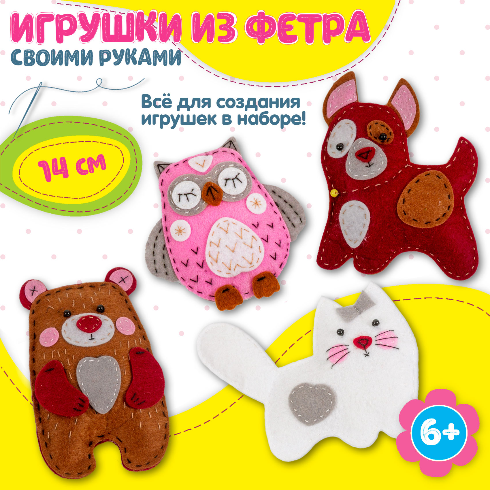 Мы создали наши наборы для детей, которых увлекает рукоделие и творчество. Внутри вы найдете все для создания четырех мягких игрушек – кошечки, собачки, медвежонка и совы. Следуйте инструкции и у вас все получится!