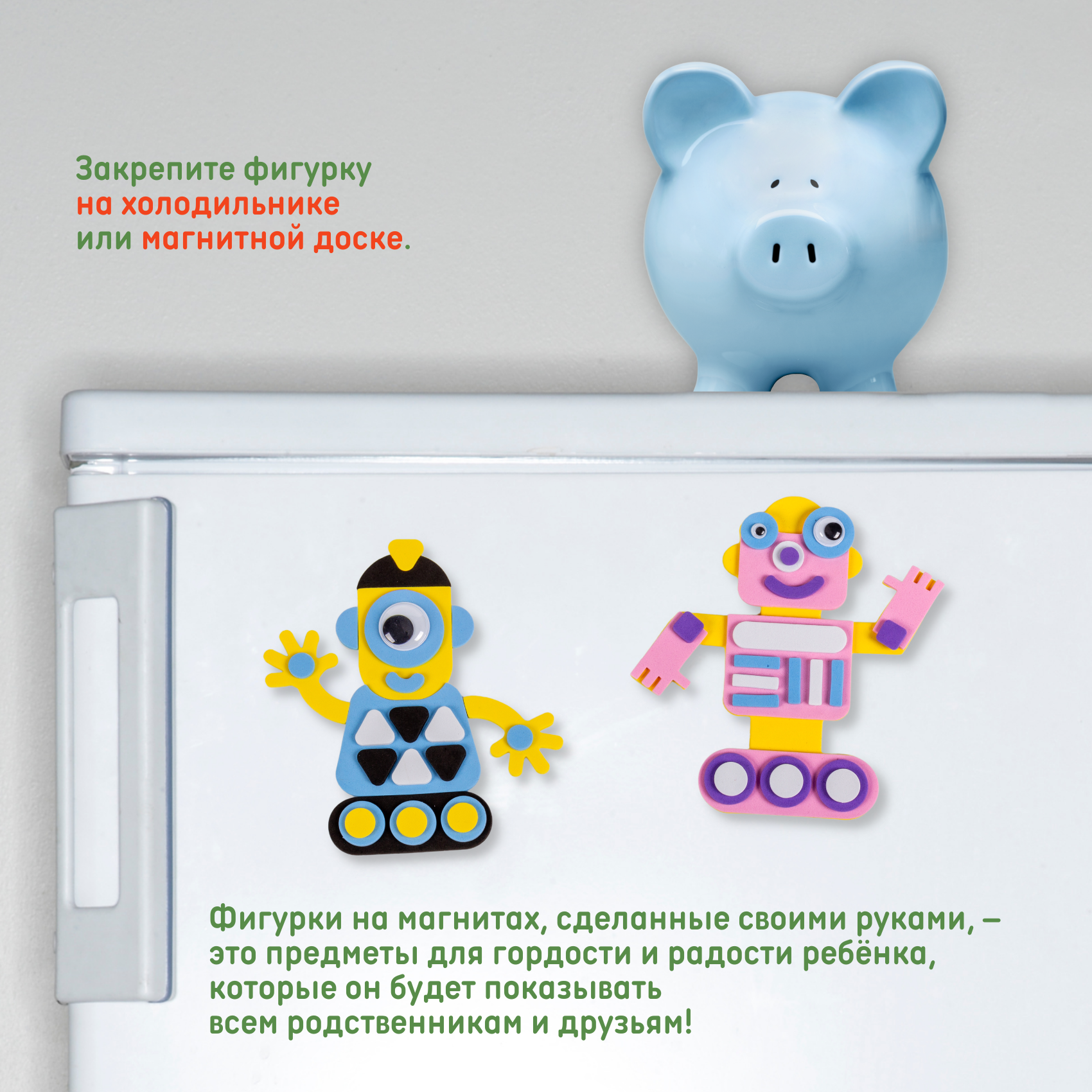 Предлагаем вам вместе с ребёнком сделать две игрушки-аппликации на магнитах из пластика ЭВА. ЭВА - современный экологически чистый материал. Он гигиеничен, не вызывает аллергии, безопасен и прост в использовании, приятен на ощупь.