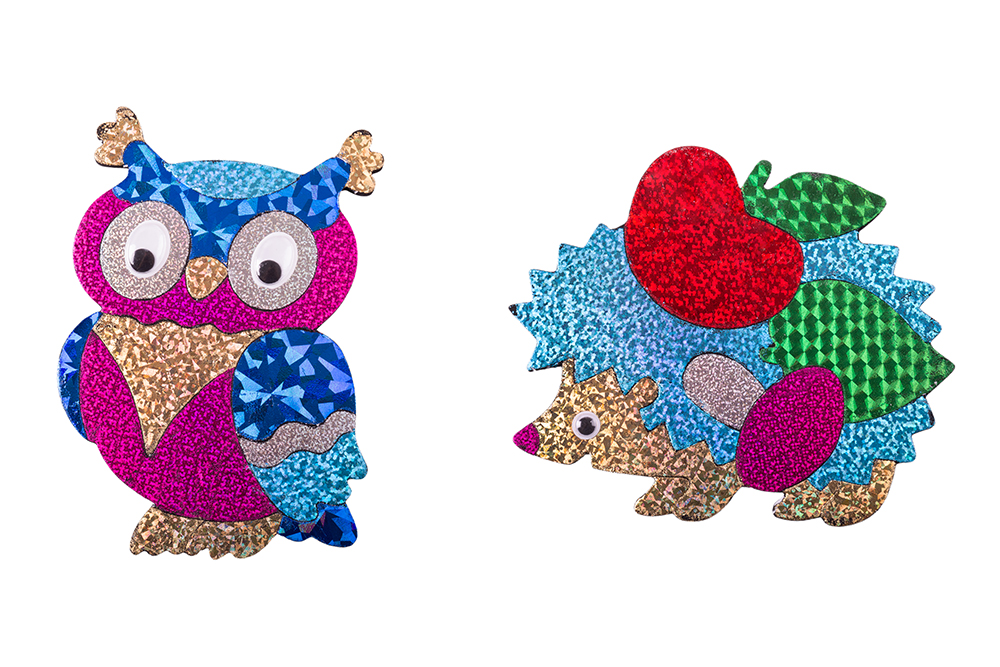 Оригинальная поделка — весёлая игрушка из ЭВА с магнитным винилом, раскрашенная с помощью фольги. Благодаря голографическому эффекту фольги, готовое изделие отличается необыкновенной яркостью и насыщенностью. В наборе 2 поделки.