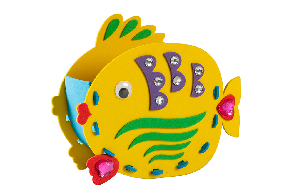 Карандашницу собирают из мягкого, приятного на ощупь пластика без ножниц и клея. Детали легко соединяются между собой и крепко держатся в пазах. Забавные зверушки на передней стенке карандашницы порадуют любого ребёнка.