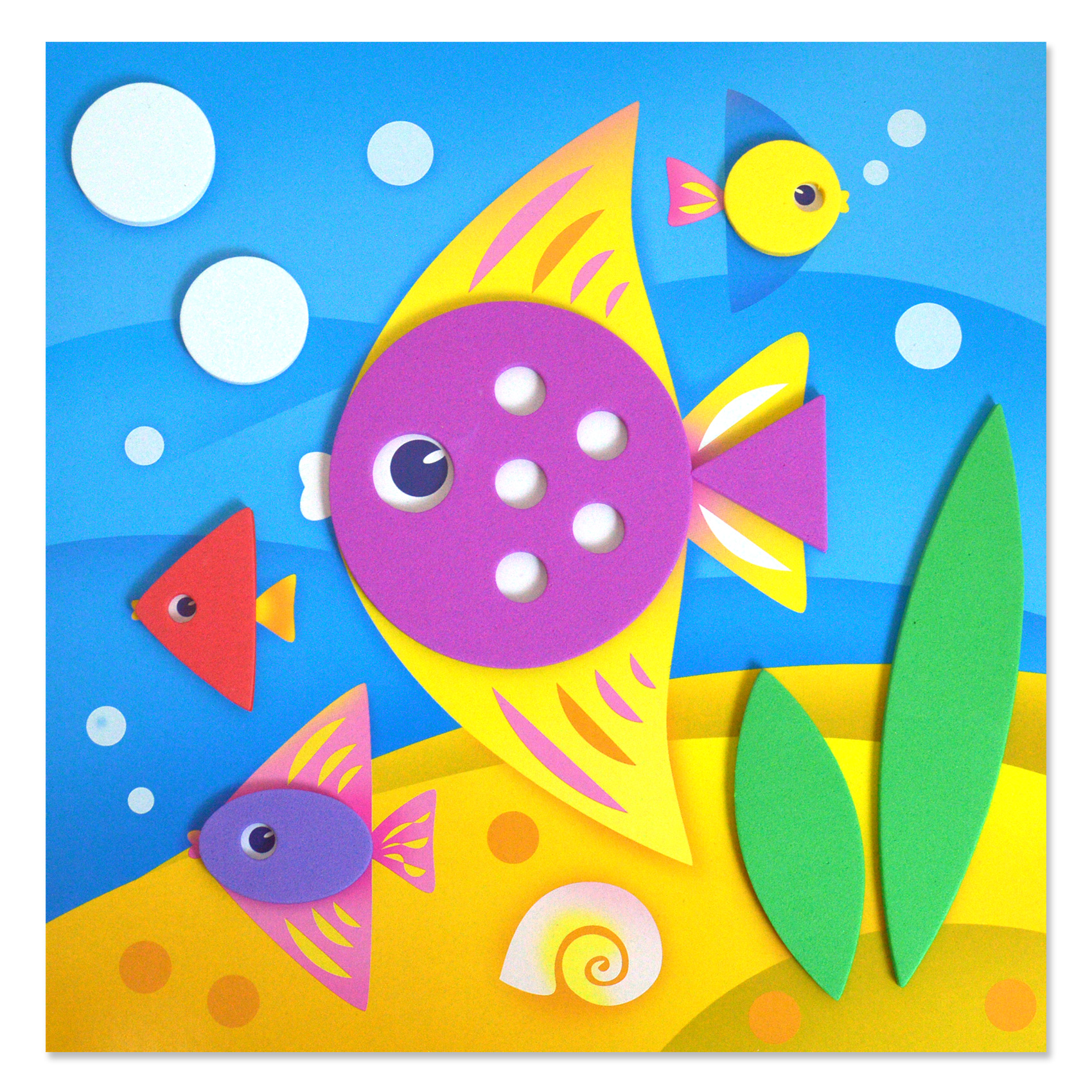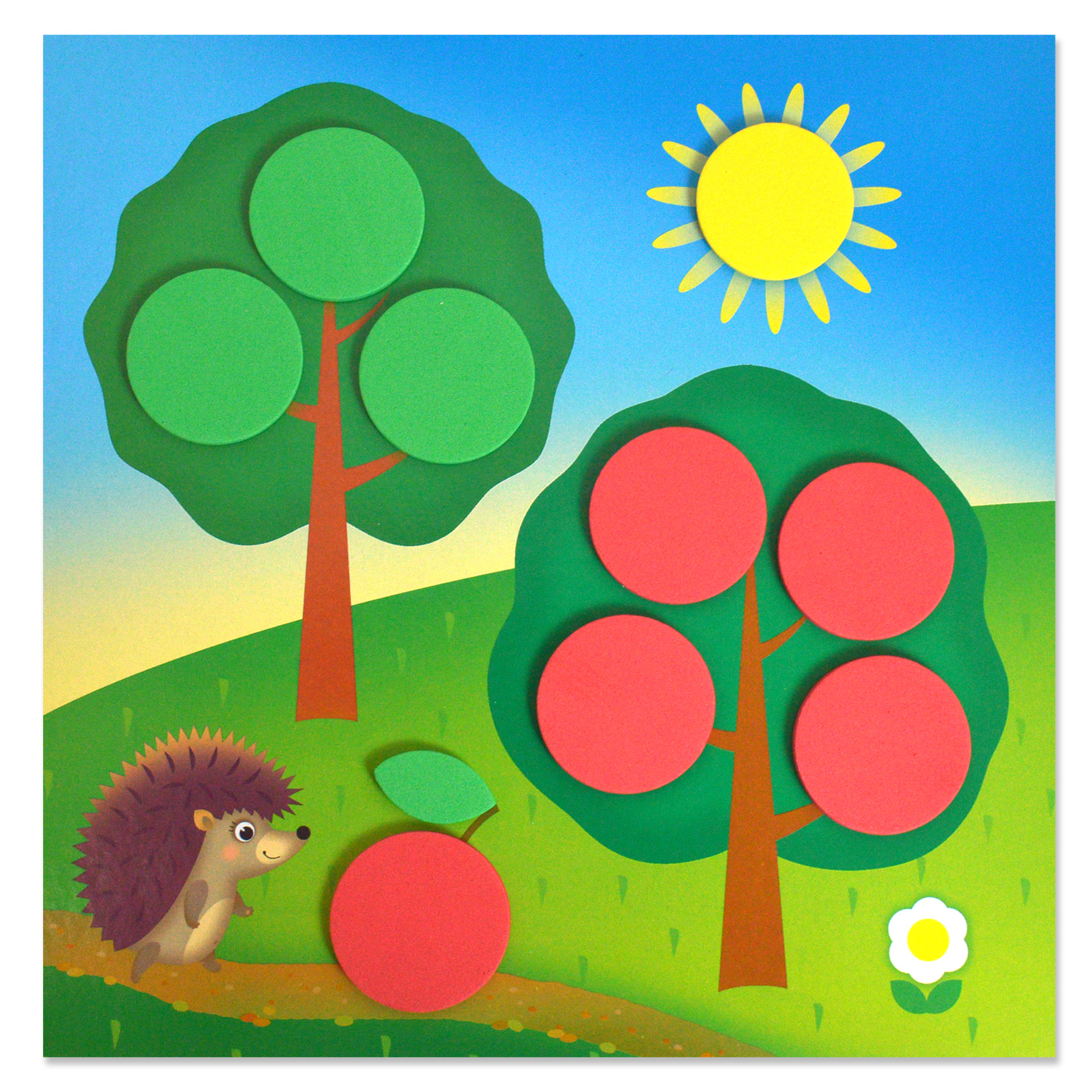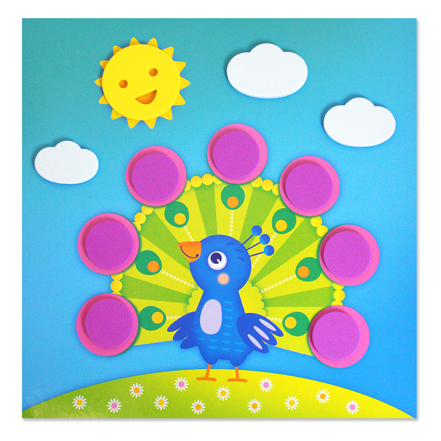 Яркая и выразительная аппликация с простыми и весёлыми картинками. Для работы не нужны ни клей, ни ножницы. В комплекте - мягкие детали, вырубленные из объёмного ЭВА на клеевой основе, которые легко приклеиваются на картинку-основу. Сама картинка небольшого размера, что поможет малышу легко справиться с работой. В результате получится прекрасная композиция - первая аппликация малыша! В наборе четыре яркие картинки, с изображениями павлина, цветочной клумбы, рыбки и ёжика с яблоками. Такой набор обязательно понравится любой девочке!