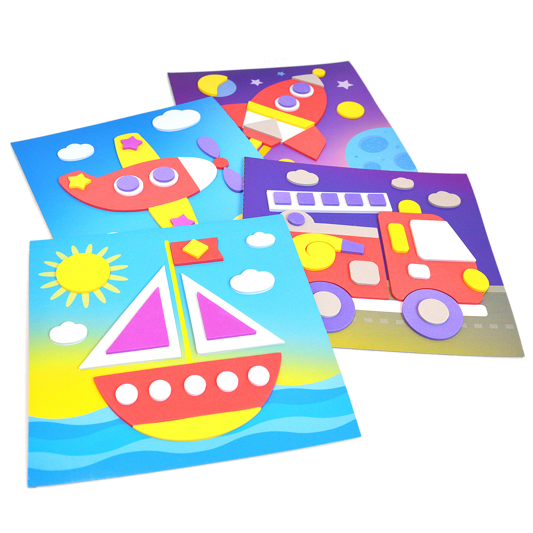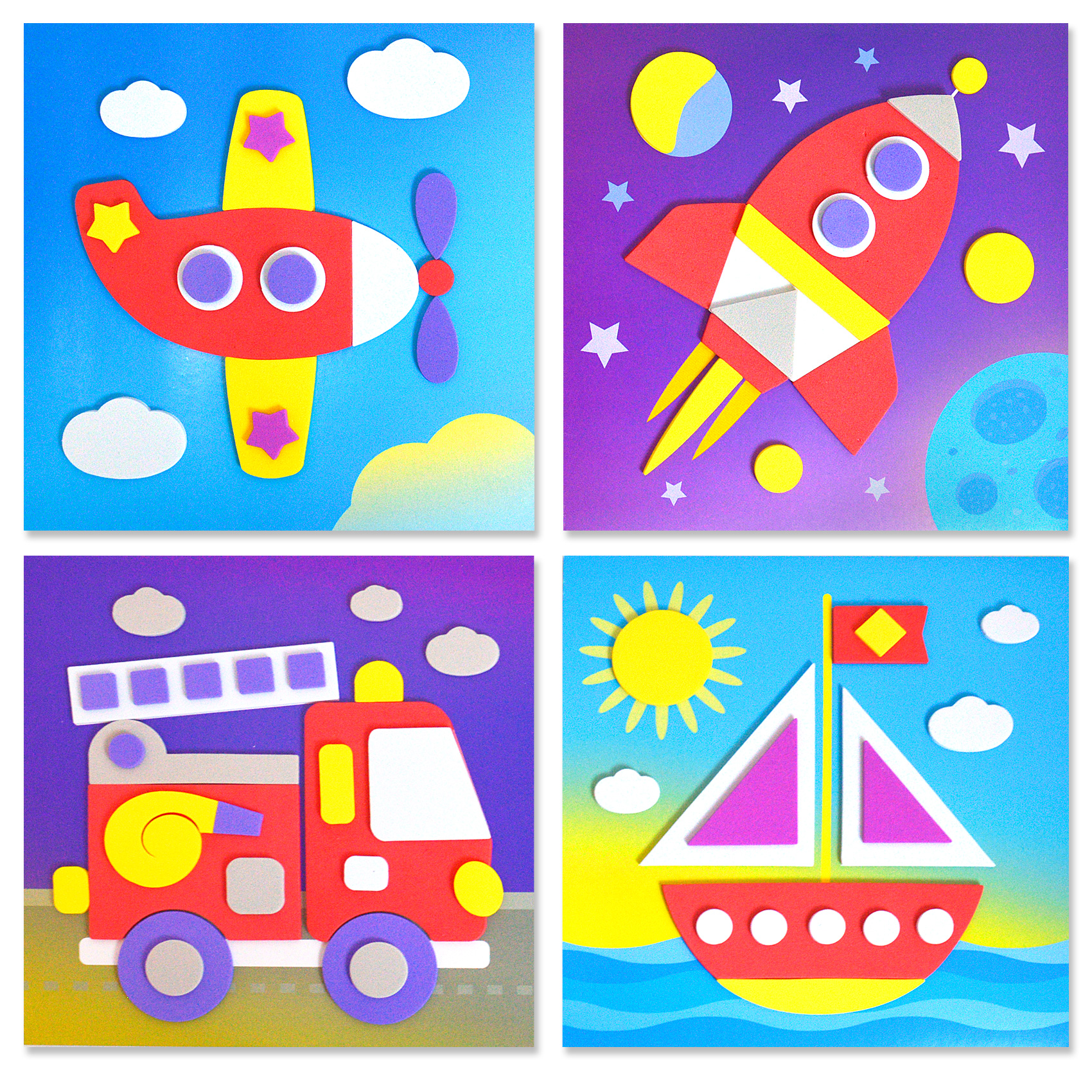 В наборе вы найдёте всё, что нужно для создания забавной мягкой картинки: вам не понадобятся дополнительные материалы, клей или ножницы. Чтобы наклеить деталь, нужно просто снять с липкого слоя защитную плёнку и приложить деталь в нужное место картинки. Яркие, простые иллюстрации прекрасно подходят для первого знакомства малыша с аппликацией. В наборе 4 картинки-основы для аппликации с изображениями транспорта: кораблика, самолёта, ракеты и пожарной машины. Набор для творчества будет особенно интересен мальчикам.