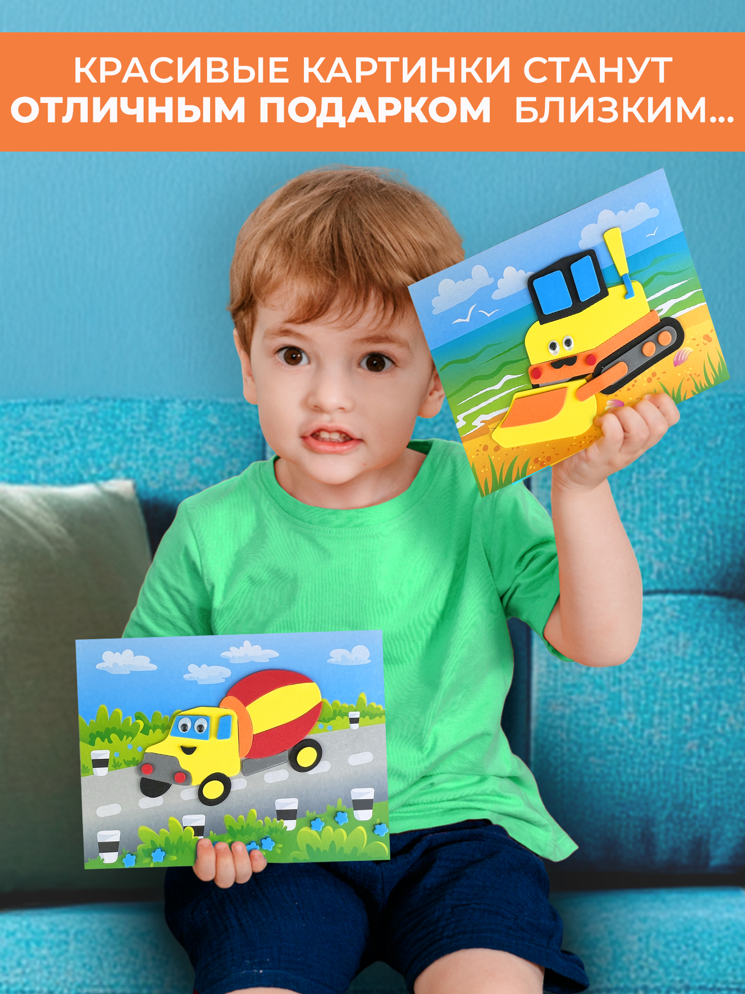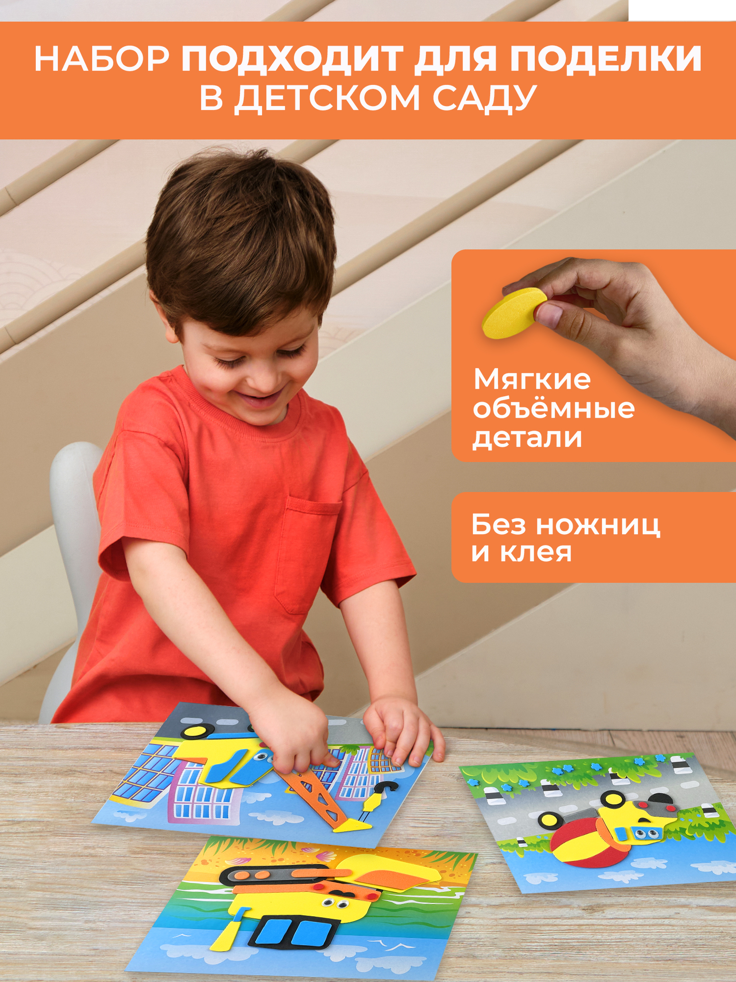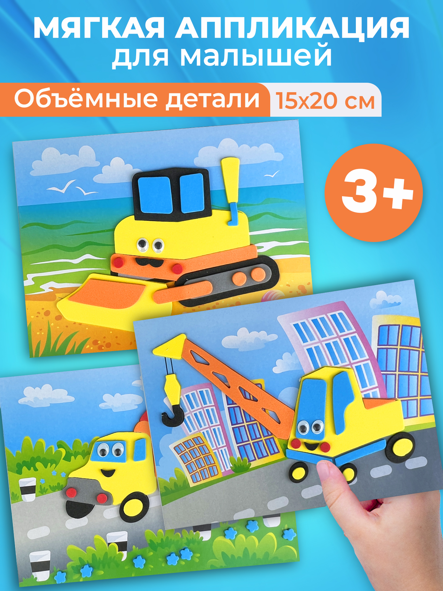 Новинка от Дрофы Медиа – набор аппликаций для мальчиков, в котором три картинки со спецтранспортом: экскаватором, бетономешалкой и подъёмным краном. Для создания аппликаций не нужны клей и ножницы – просто наклеивайте детали на картинку, ориентируясь по схеме на обороте листовки. Ребёнок легко справится самостоятельно, помощь взрослого будет сведена к минимуму.