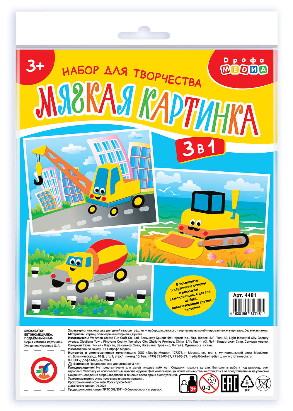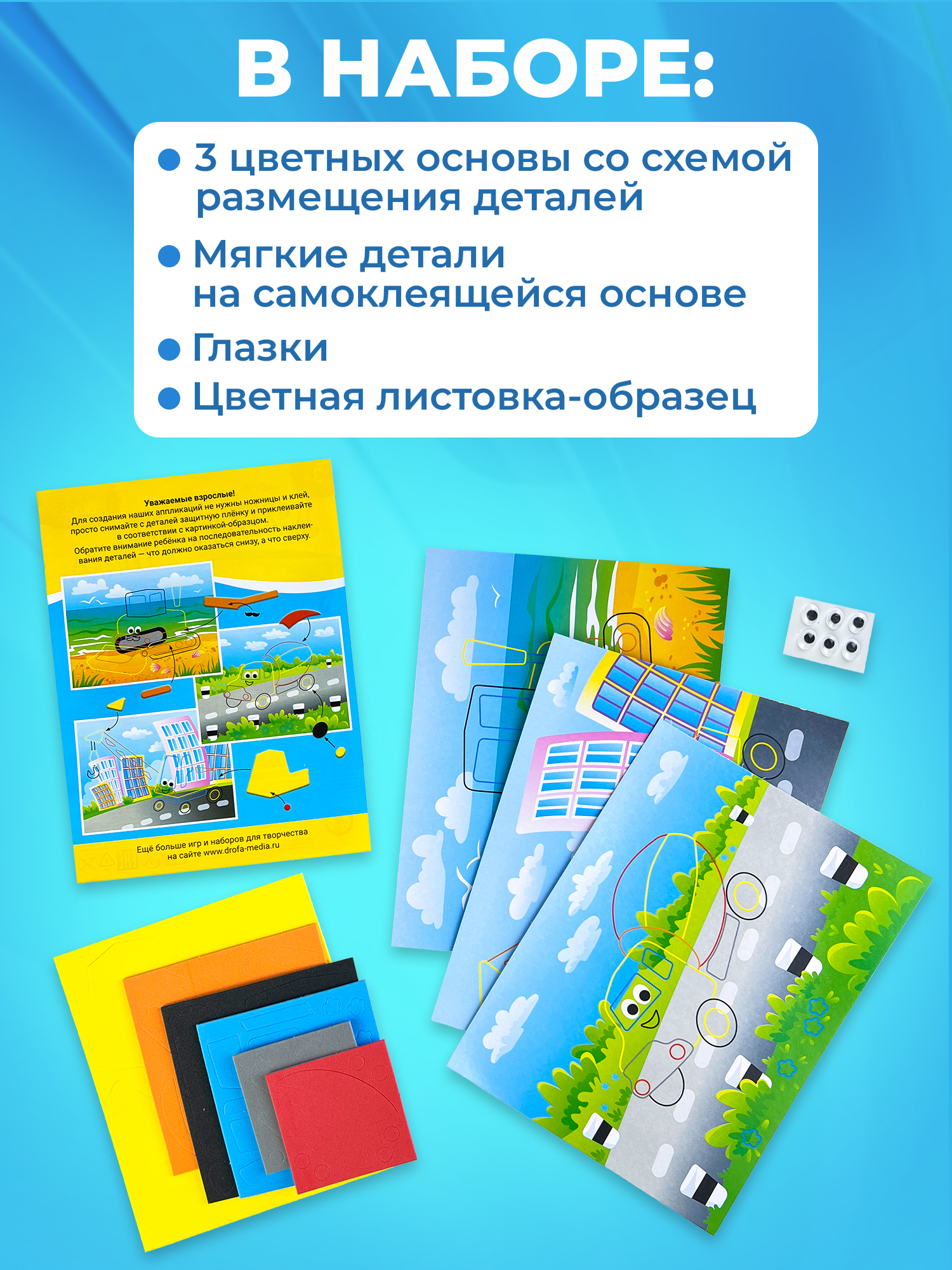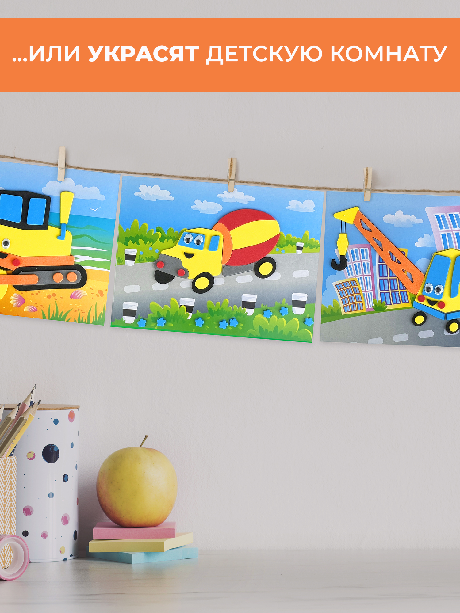 Новинка от Дрофы Медиа – набор аппликаций для мальчиков, в котором три картинки со спецтранспортом: экскаватором, бетономешалкой и подъёмным краном. Для создания аппликаций не нужны клей и ножницы – просто наклеивайте детали на картинку, ориентируясь по схеме на обороте листовки. Ребёнок легко справится самостоятельно, помощь взрослого будет сведена к минимуму.