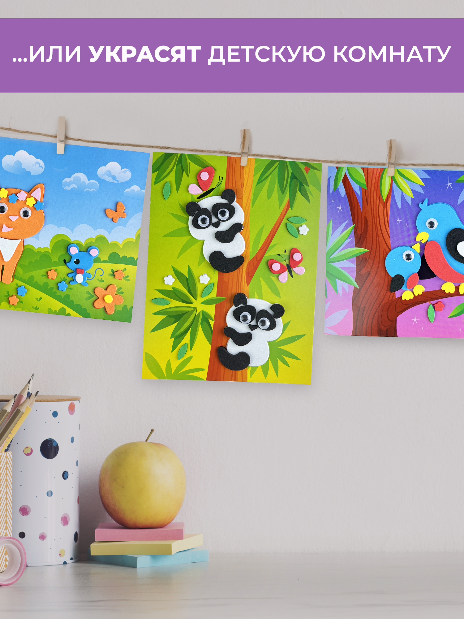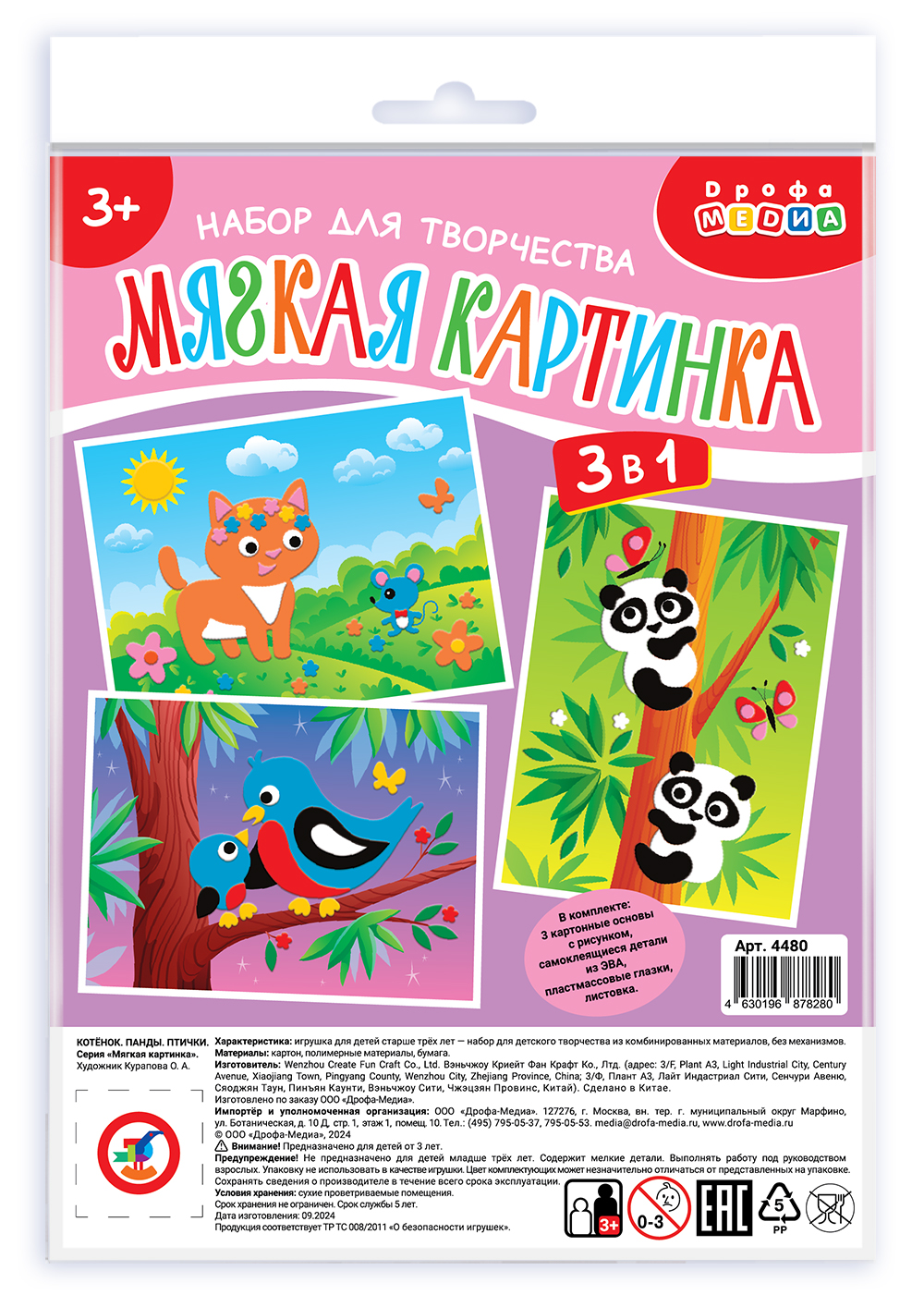 Новинка от Дрофы Медиа – набор аппликаций для девочек, в котором три картинки с очаровательным котёнком, милыми пандами и красивыми птичками. Для создания аппликаций не нужны клей и ножницы – просто наклеивайте детали на картинку, ориентируясь по схеме на обороте листовки. Ребёнок легко справится самостоятельно, помощь взрослого будет сведена к минимуму.