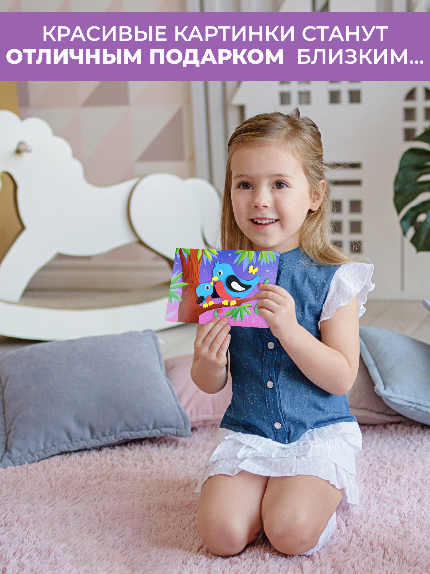 Получившуюся красивую картинку можно подарить маме, папе, бабушке, дедушке, другу или подруге, а можно украсить ею комнату. Набор для творчества прекрасно подойдёт для поделки в детском саду или школе.