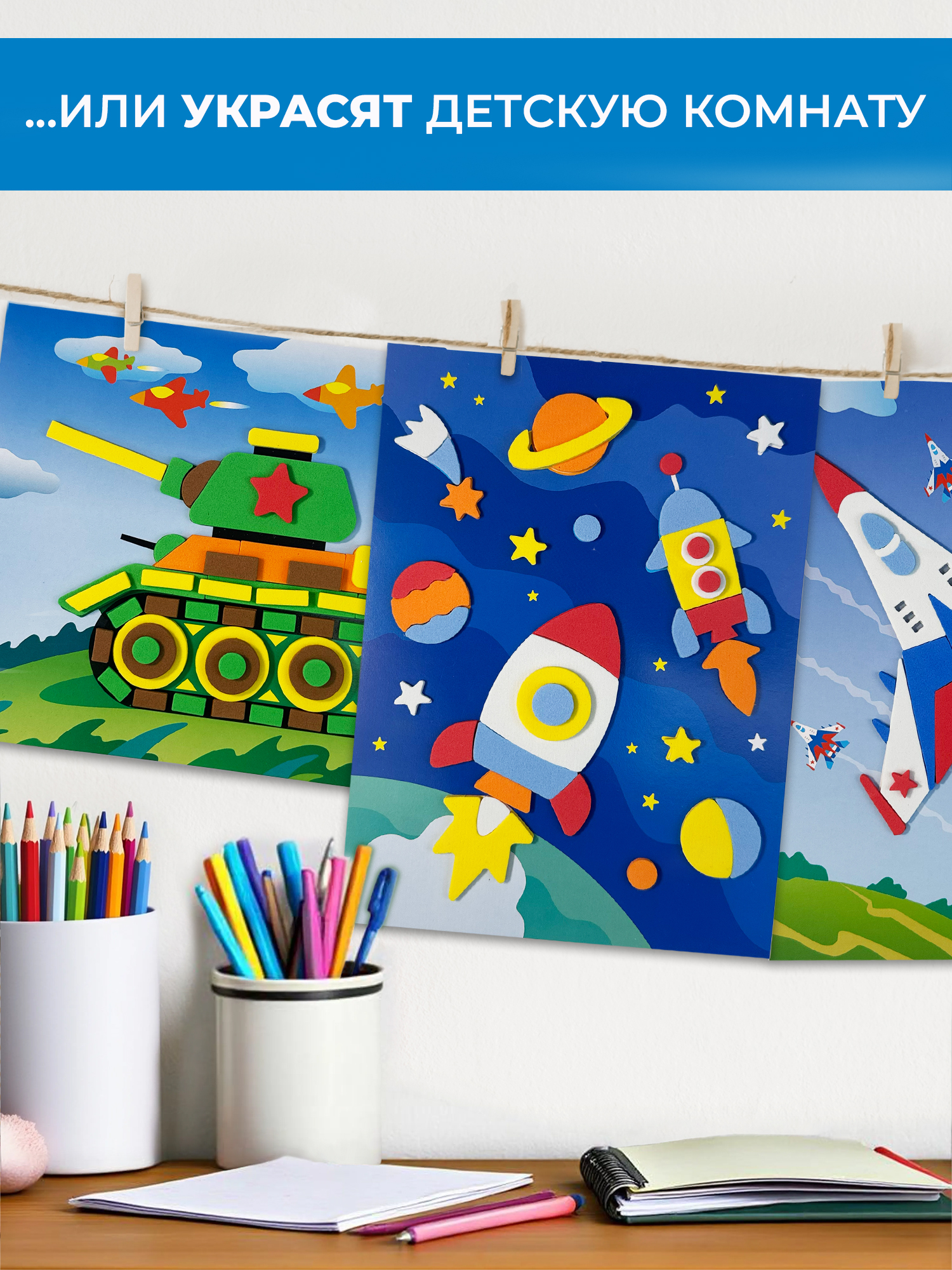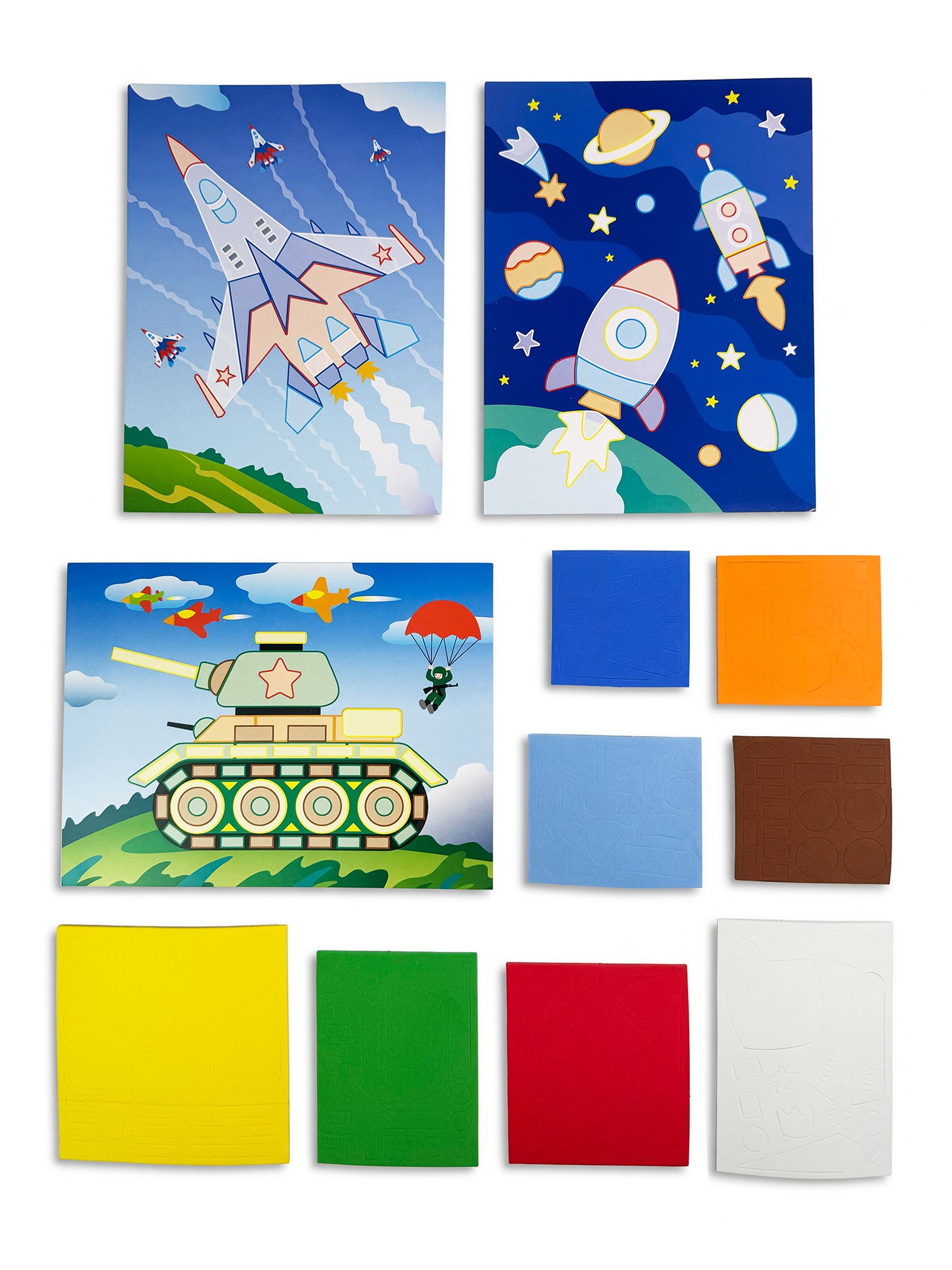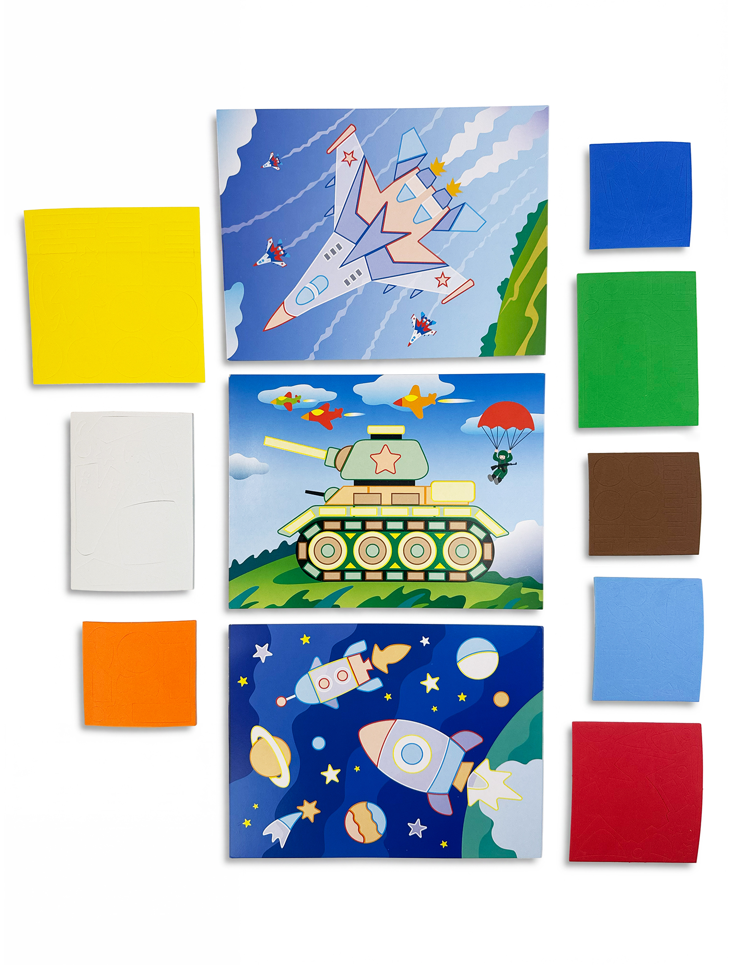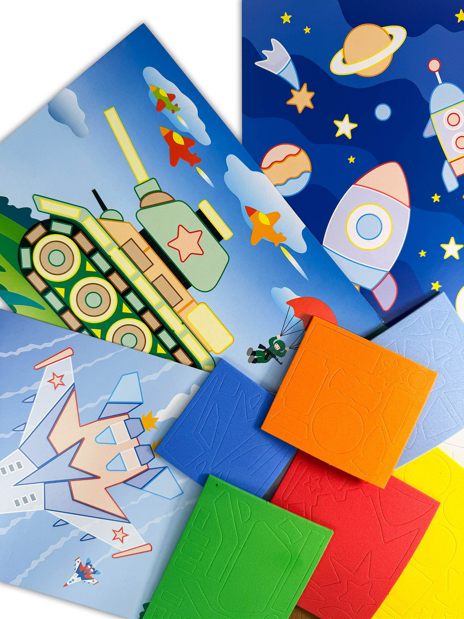 - 8 разноцветных пластин с мягкими самоклеящимися деталями;