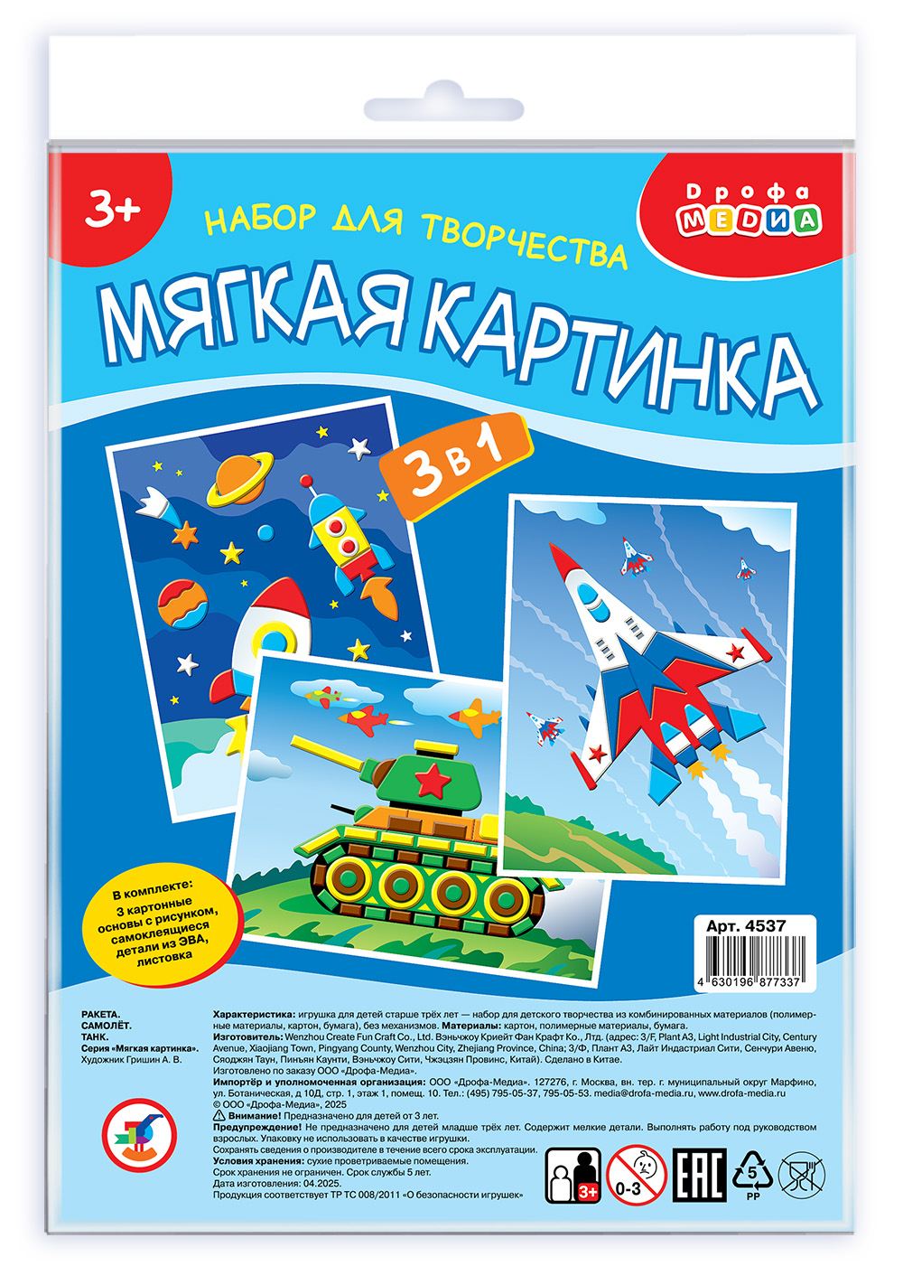 Увлекательная аппликация с яркими картинками и мягкими деталями из безопасного пластика ЭВА разнообразит досуг вашего ребёнка.