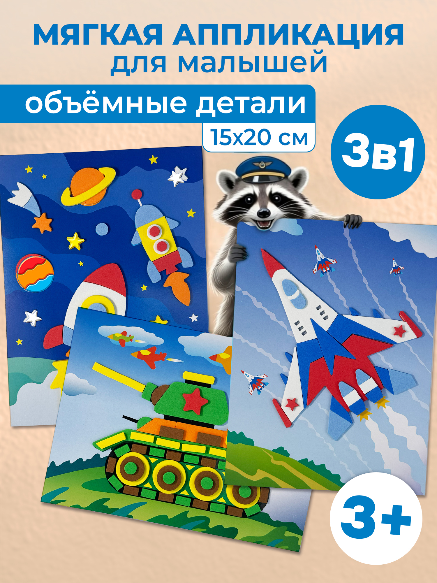 3 яркие объёмные аппликации в 1 наборе!