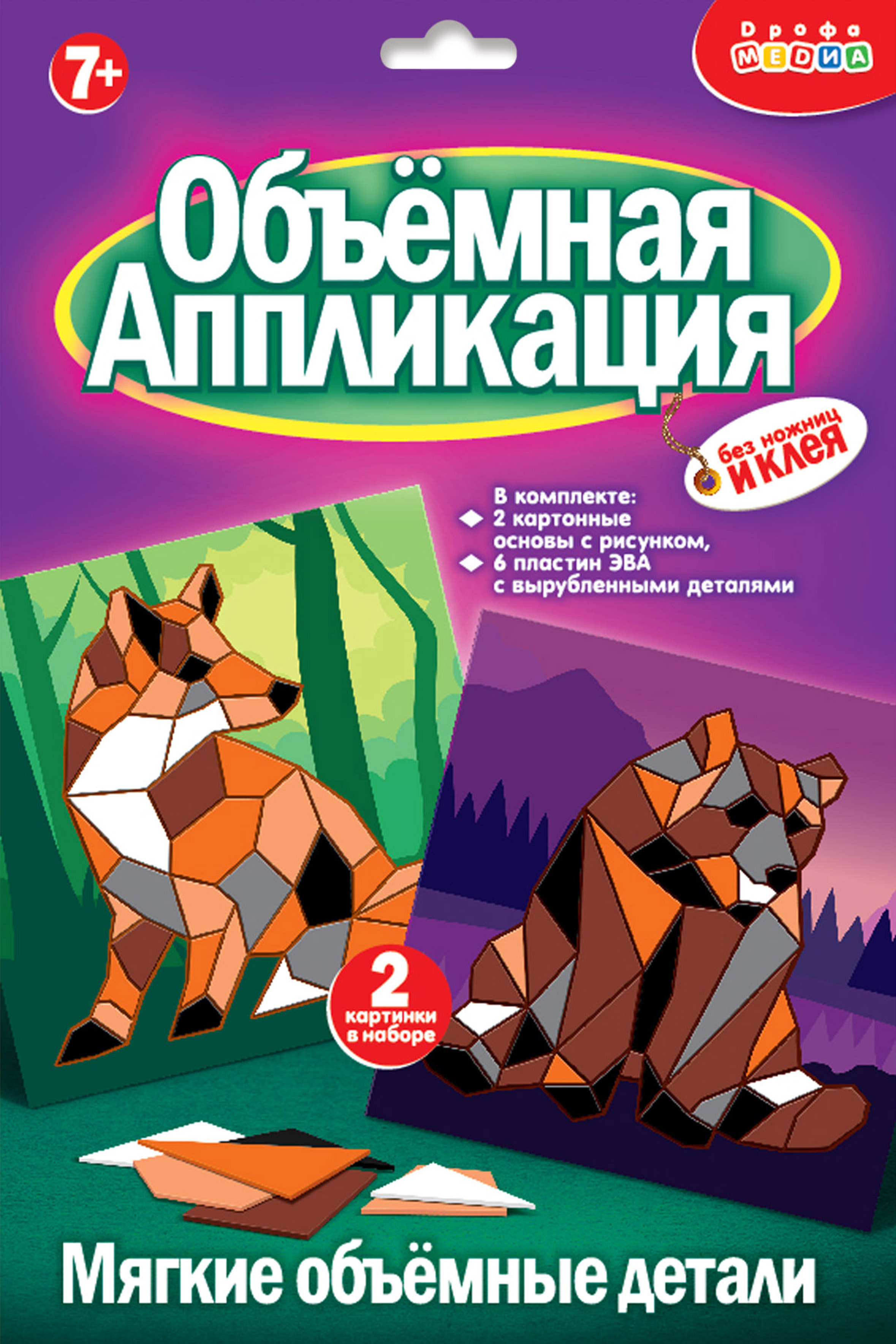 В наборе: 2 цветные основы со схемой размещения деталей, детали из ЭВА на самоклеящейся основе, цветная листовка-образец.