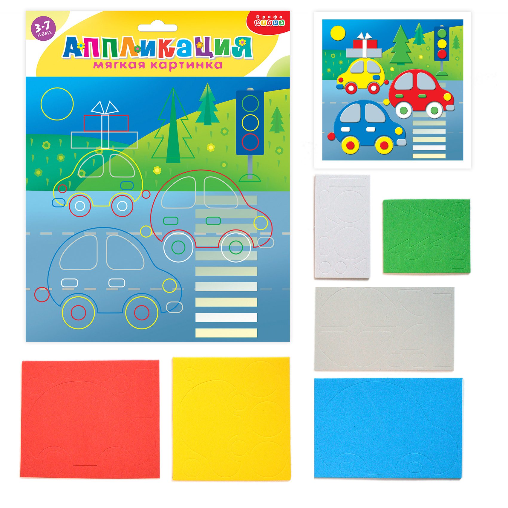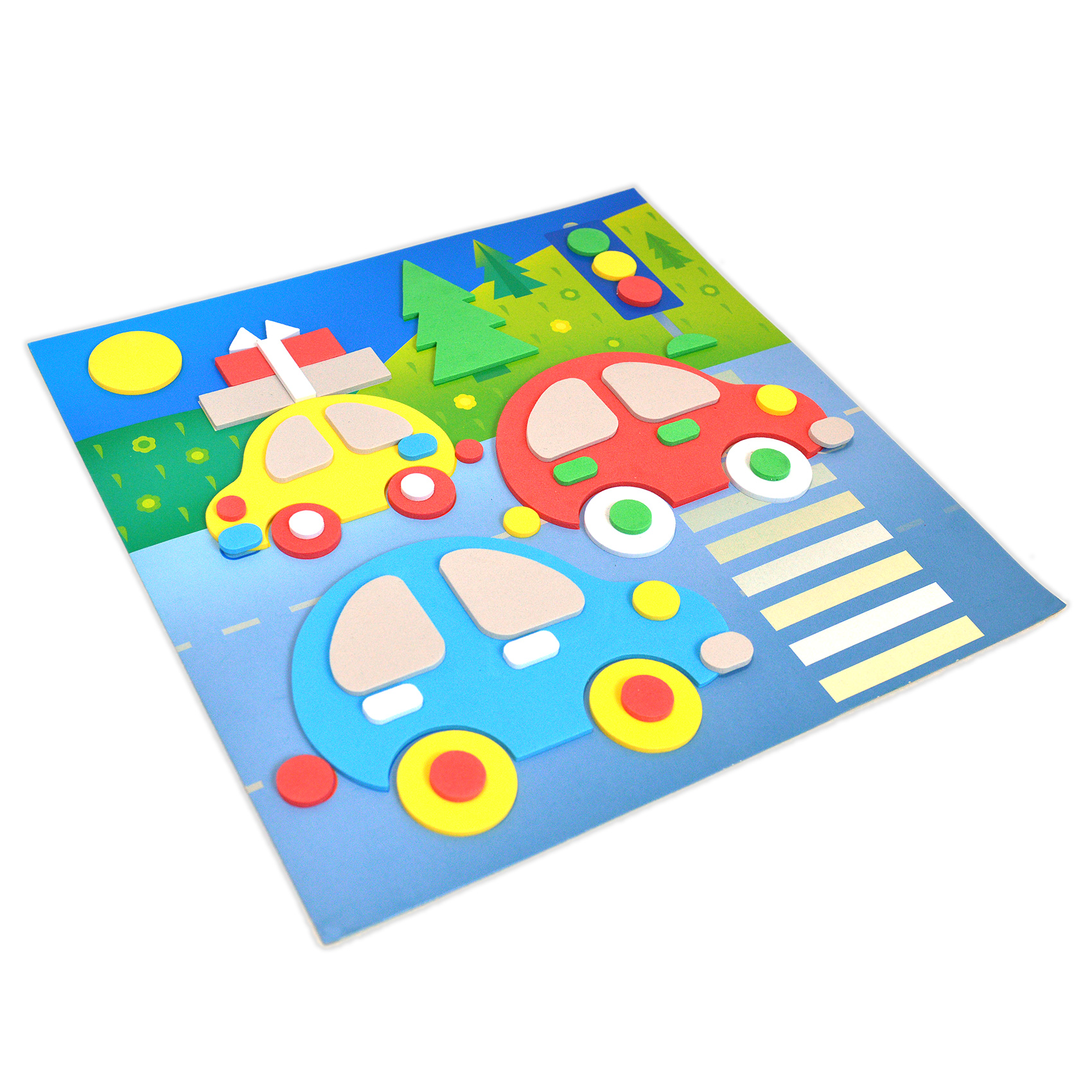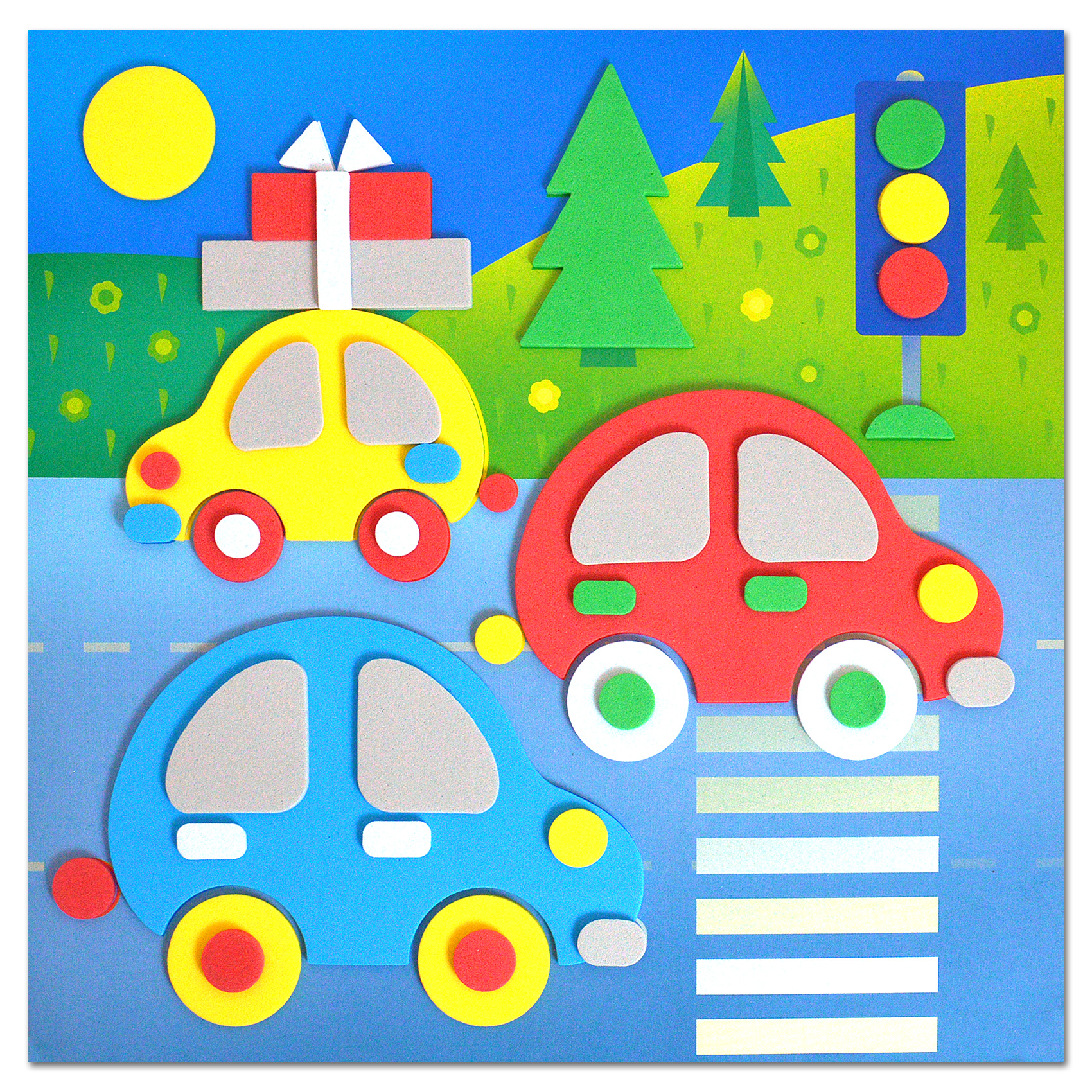 Для создания забавной мягкой картинки вам не понадобятся дополнительные материалы, клей или ножницы. Всё необходимое вы найдёте в нашем наборе. Чтобы наклеить деталь, нужно аккуратно снять её с защитной плёнки и приложить в нужное место на картинке.
