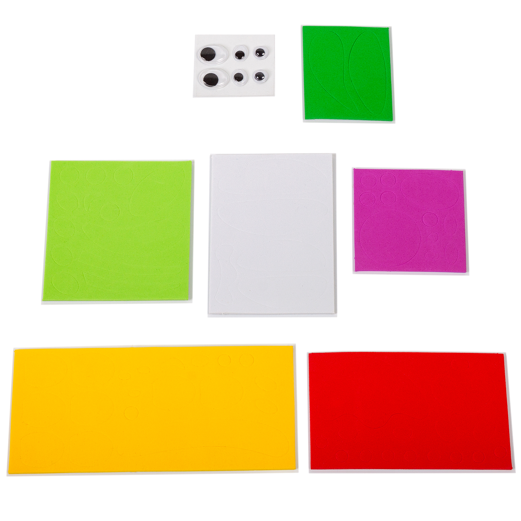 Для создания забавной мягкой картинки вам не понадобятся дополнительные материалы, клей или ножницы. Всё необходимое вы найдёте в нашем наборе. Чтобы наклеить деталь, нужно аккуратно снять её с защитной плёнки и приложить в нужное место на картинке.