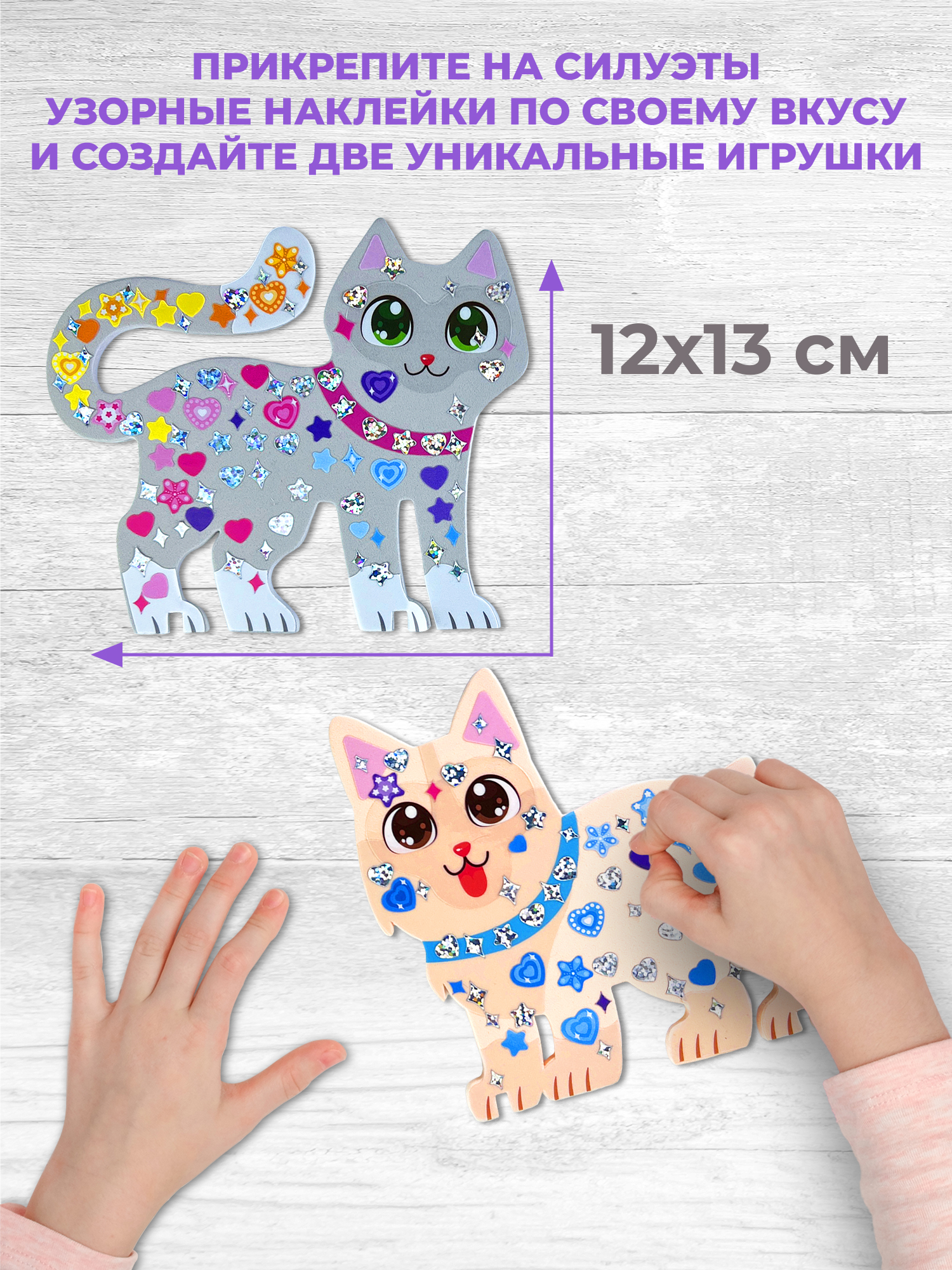 В комплекте 2 объёмные фигурки с подставками, которые нужно украсить узорными наклейками и голографическими стикерами. Малыш легко сделает это самостоятельно, ведь клей и ножницы ему не понадобятся. Фигурки можно украшать с двух сторон, а наклейки прикреплять друг на друга и переклеивать – качество материала позволяет это сделать.