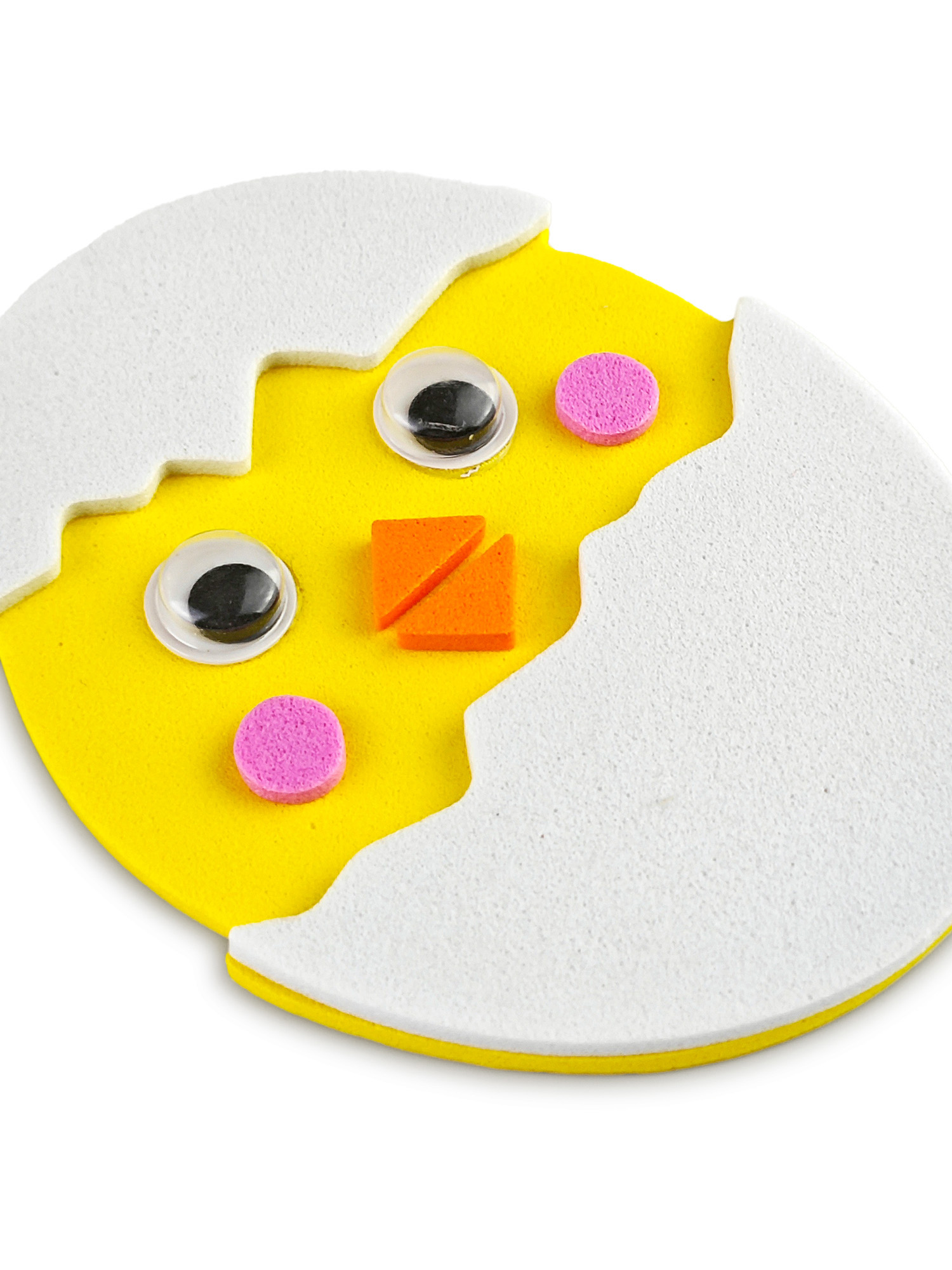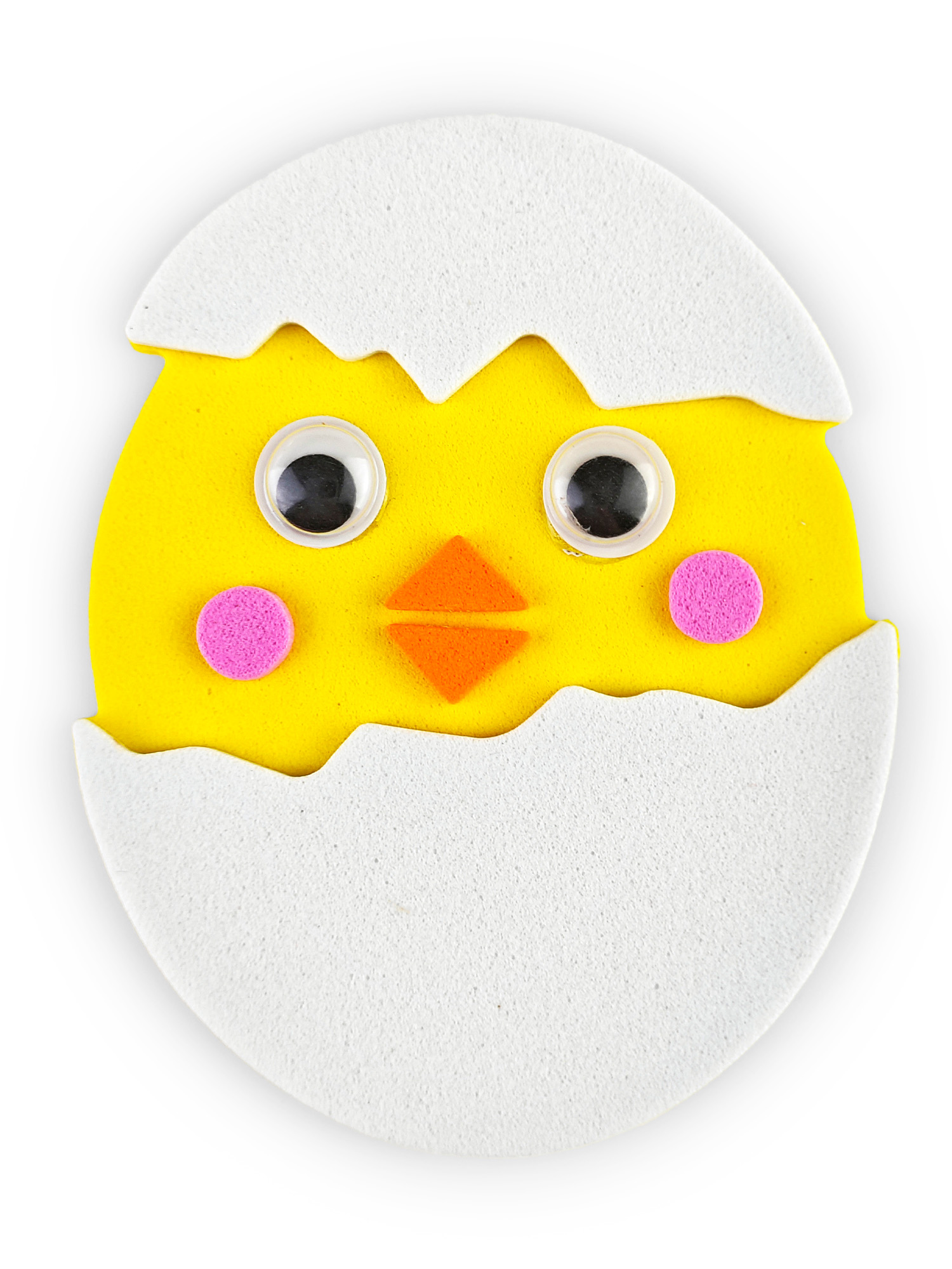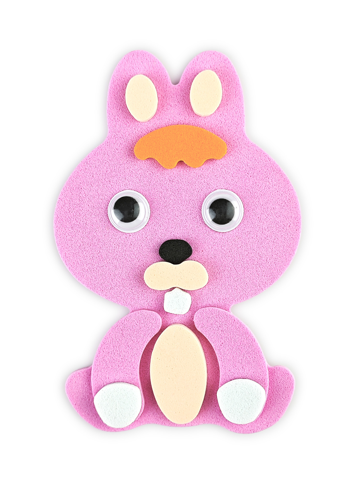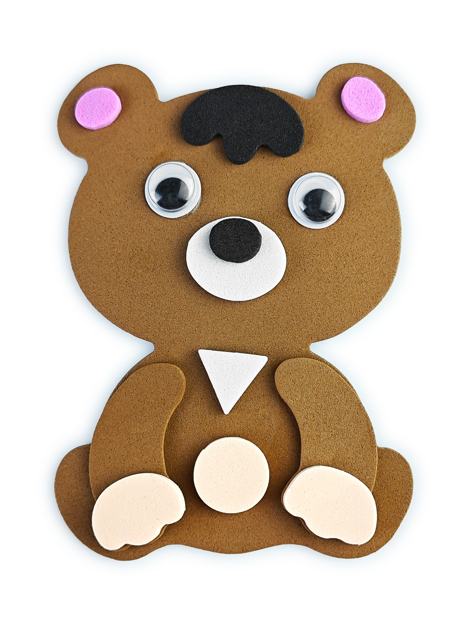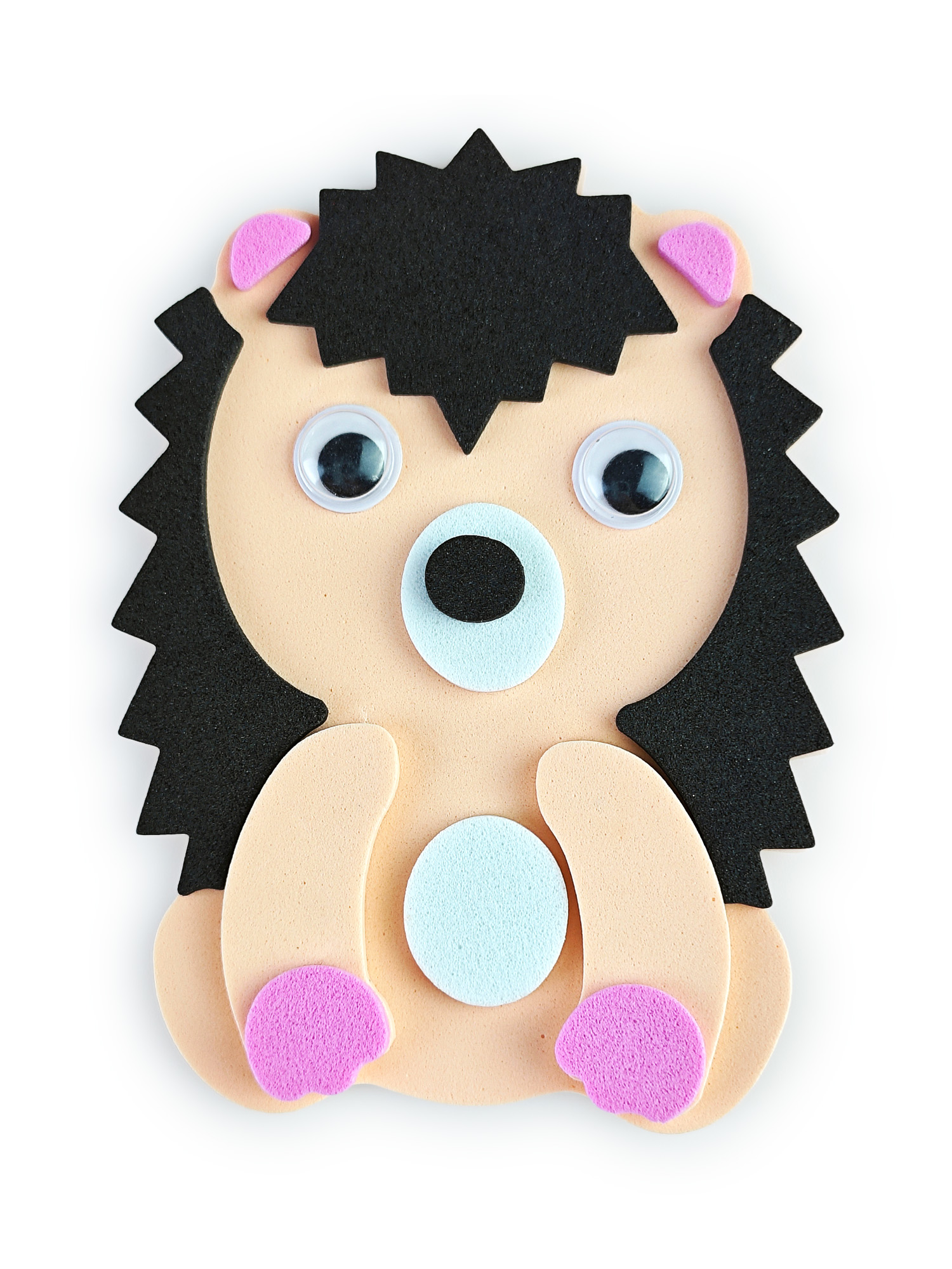 Элементы аппликации выполнены из приятного на ощупь безопасного материала ЭВА. Сделать объёмные наклейки очень просто: снимайте с деталей защитную плёнку и приклеивайте на фигурку в соответствии с картинкой-образцом. Обратите внимание ребёнка на последовательность наклеивания деталей – что должно оказаться снизу, а что сверху.