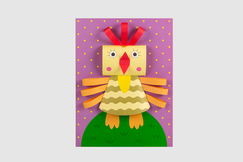 Хороший петушок, правда больше на цыплёнка похож. Только бумага тонковата - деть 4 лет порвал пару деталей при выдавливании, пришлось скотчиком маме заклеивать