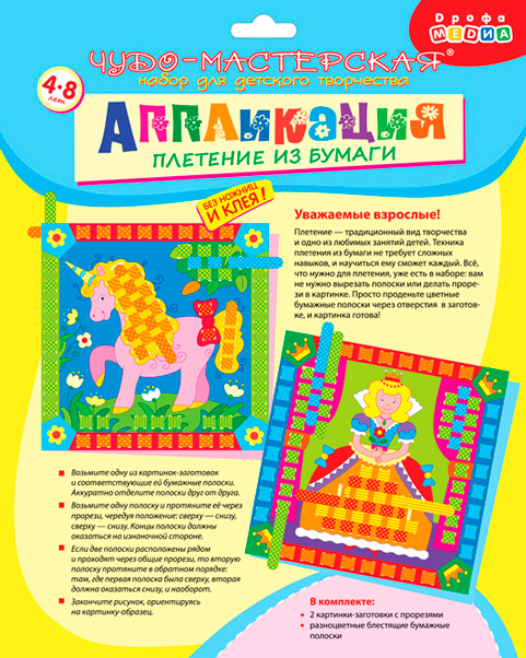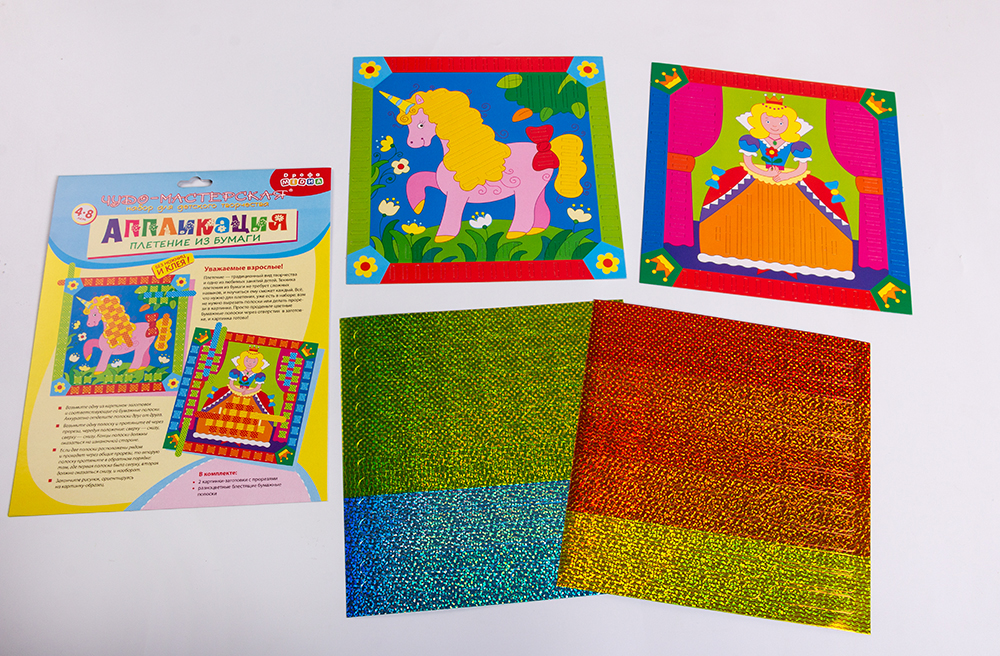 Техника плетения из бумаги не требует сложных навыков, и научиться ему сможет каждый. Всё, что нужно для плетения, уже есть в наборе: вам не придётся вырезать полоски или делать прорези в картинке. Просто проденьте цветные бумажные полоски через отверстия, и картинка готова!