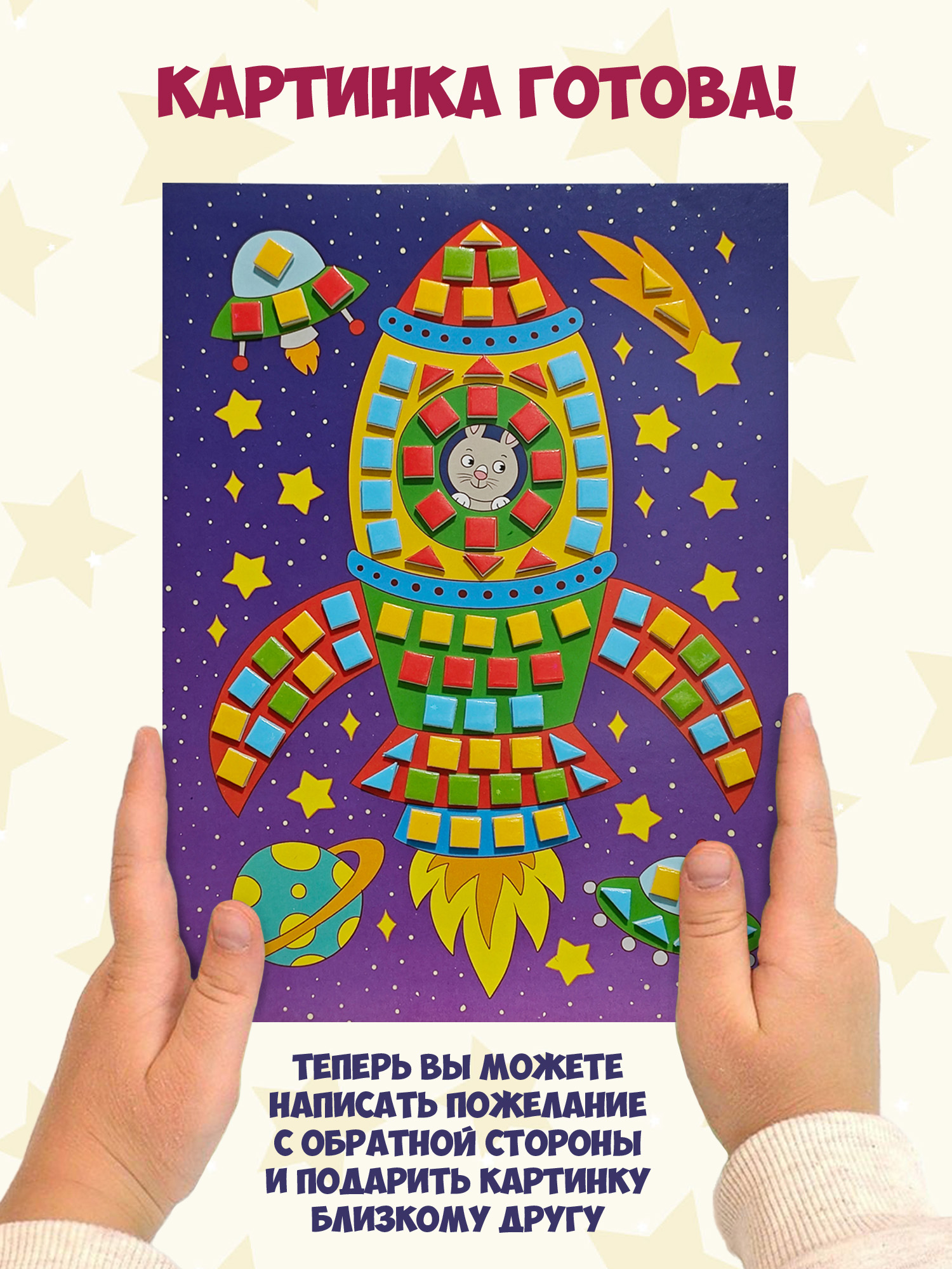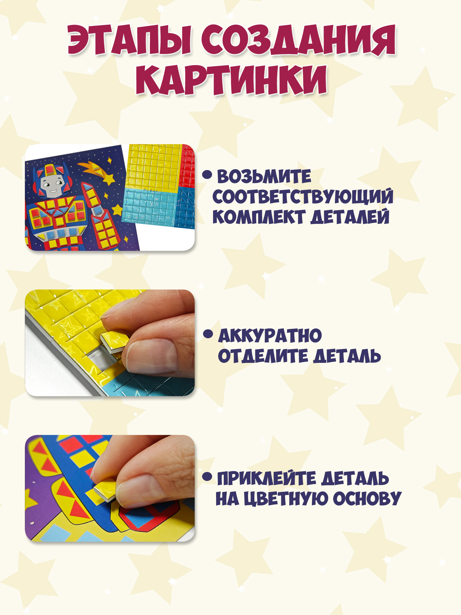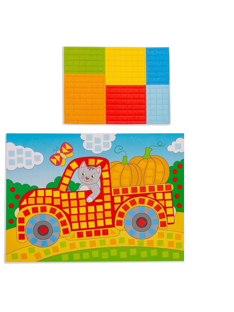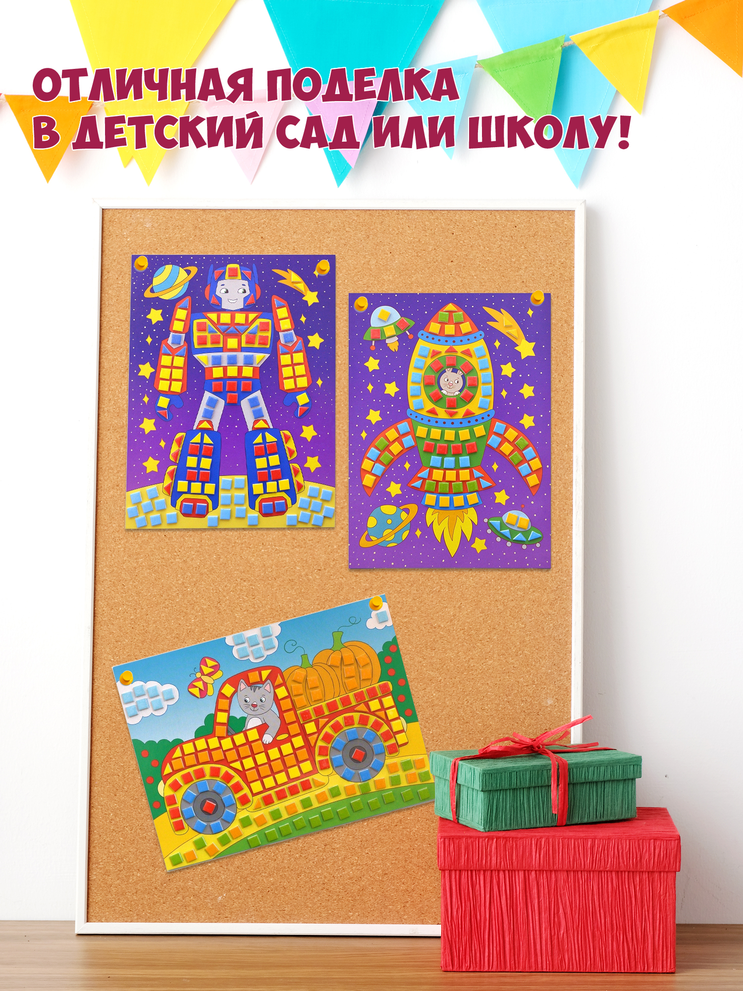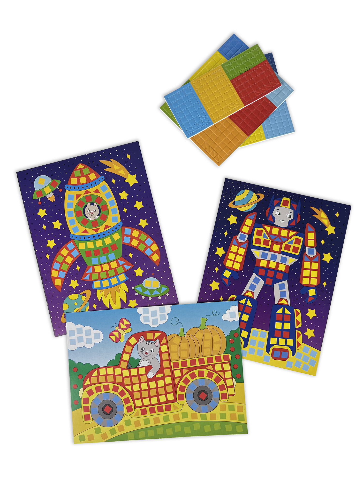 Разноцветная мозаика – это оригинальная и яркая объёмная аппликация для детей. В наборе для творчества есть все необходимое - 3 аппликации и 3 набора деталей на самоклеящейся основе.