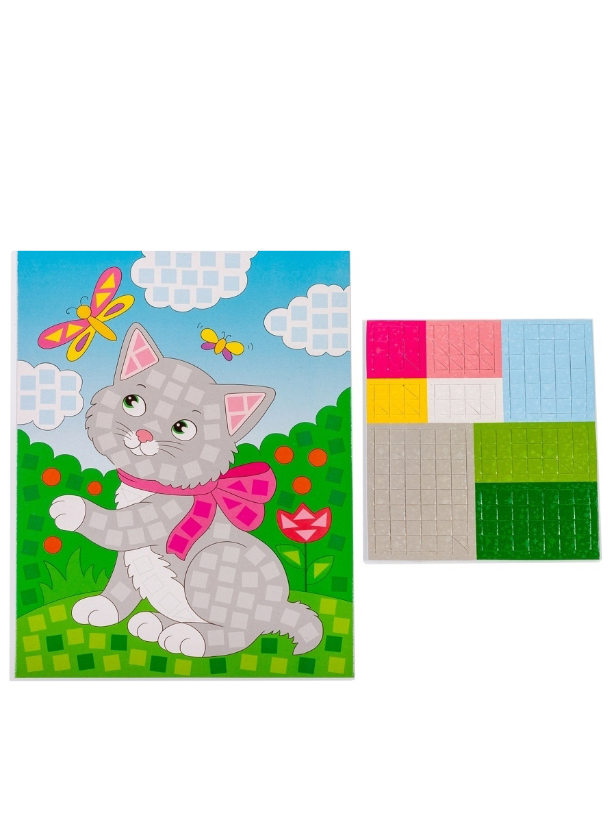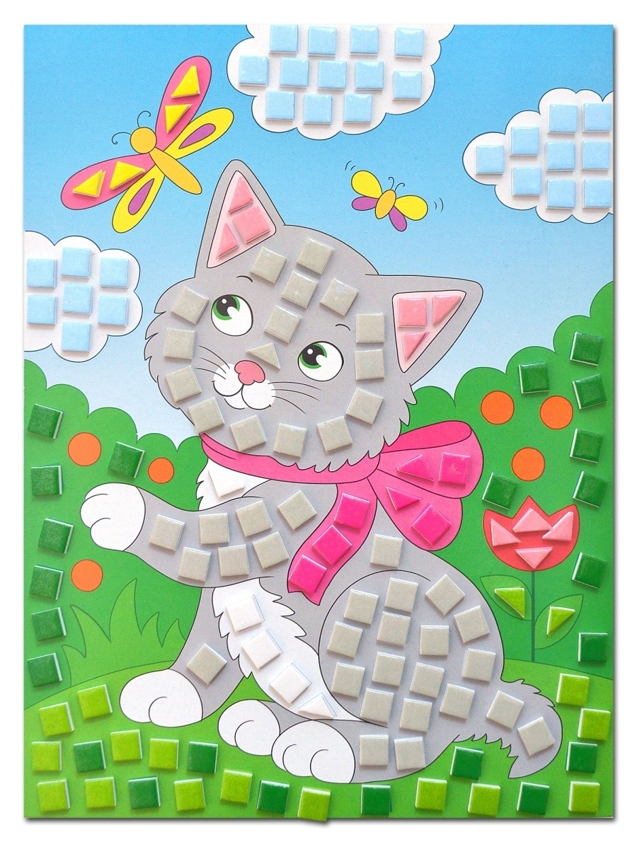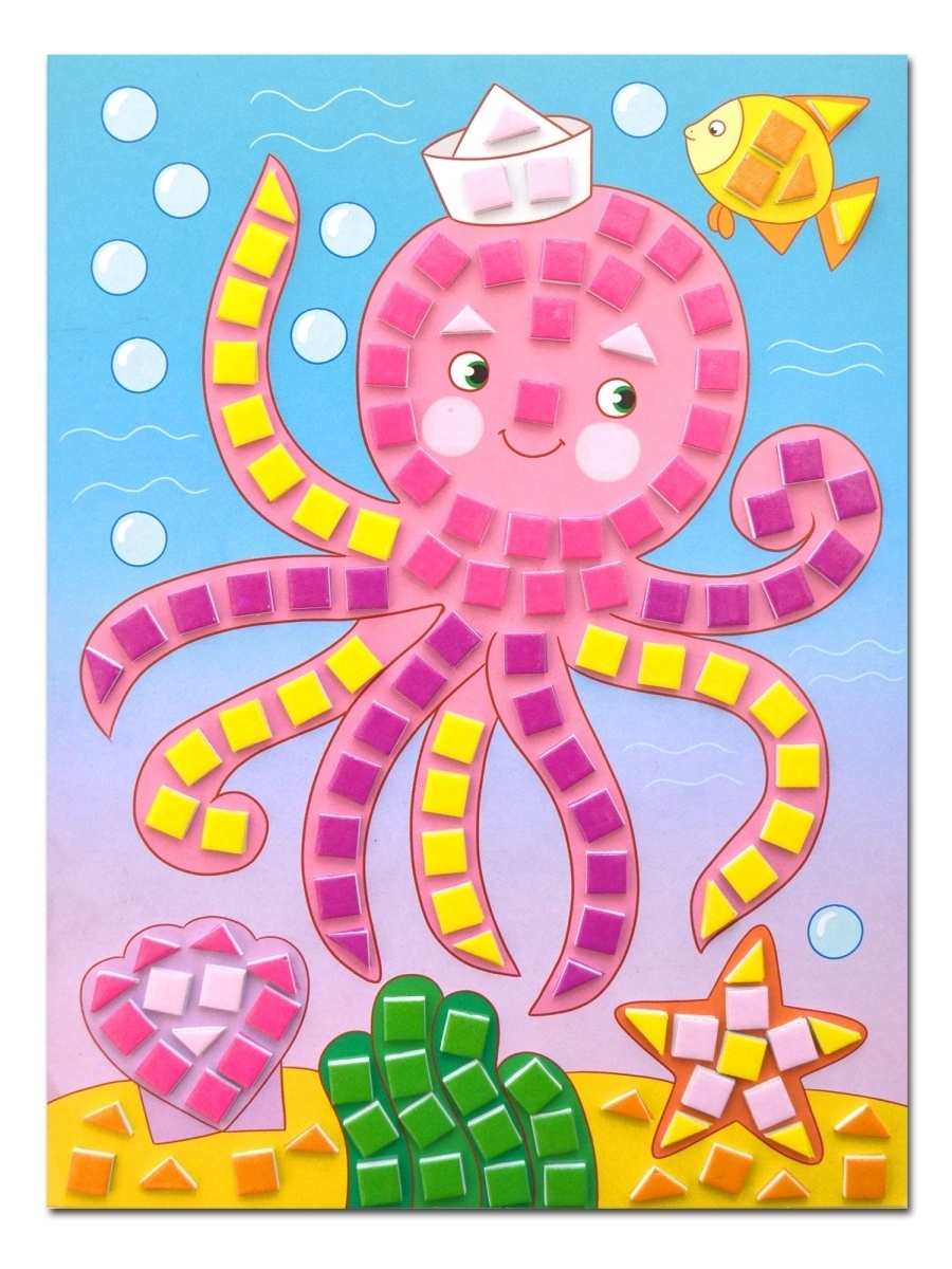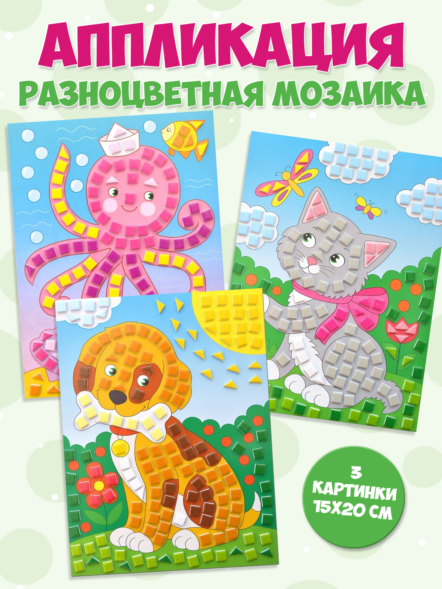 Разноцветная мозаика – это оригинальная и яркая объёмная аппликация для детей. В наборе для творчества есть все необходимое - 3 аппликации и 3 набора деталей на самоклеящейся основе. Детали мозаики выполнены в виде квадратиков и треугольников из мягкого пластика ЭВА с переливающимся декоративным покрытием. Размер одного элемента – 7х7 мм .