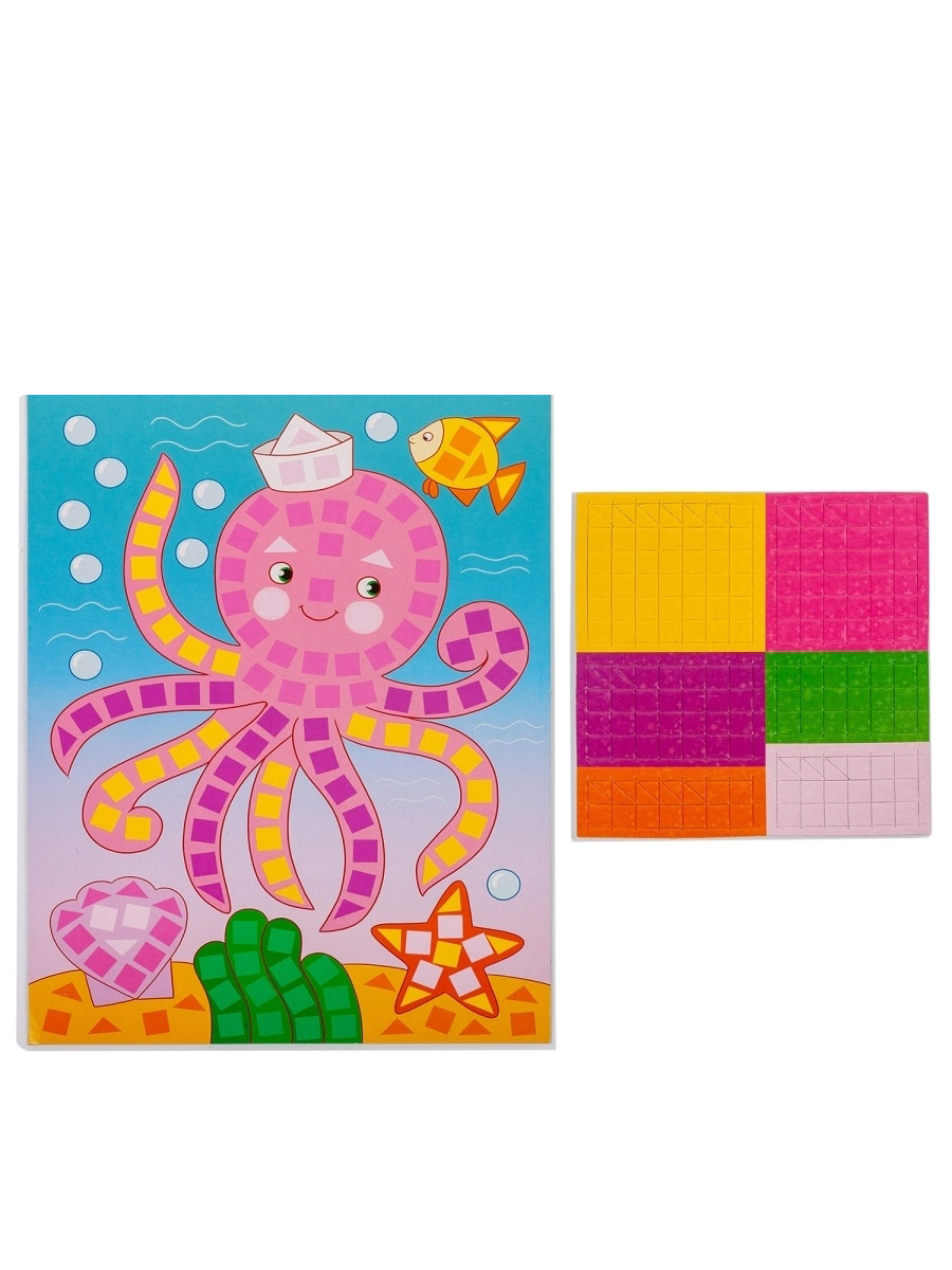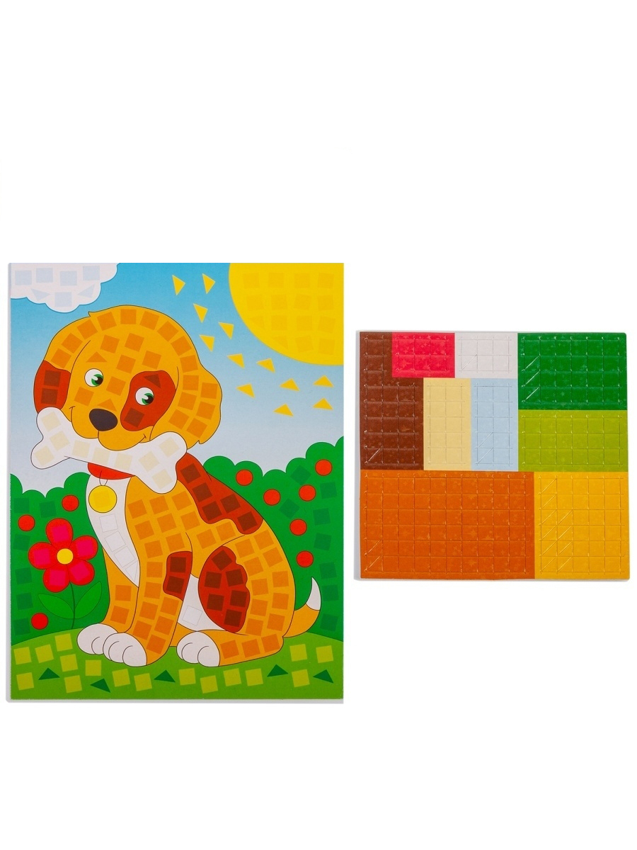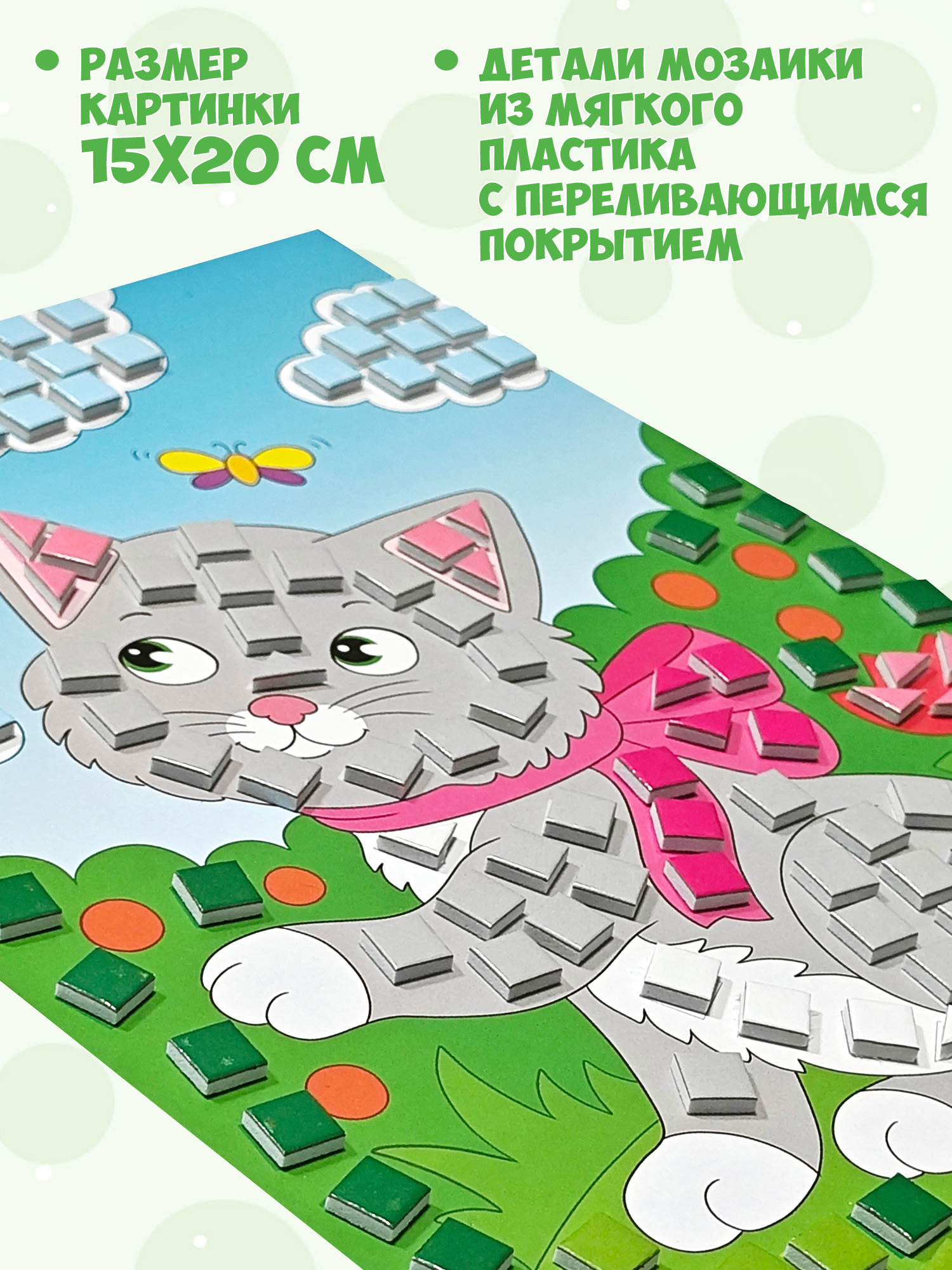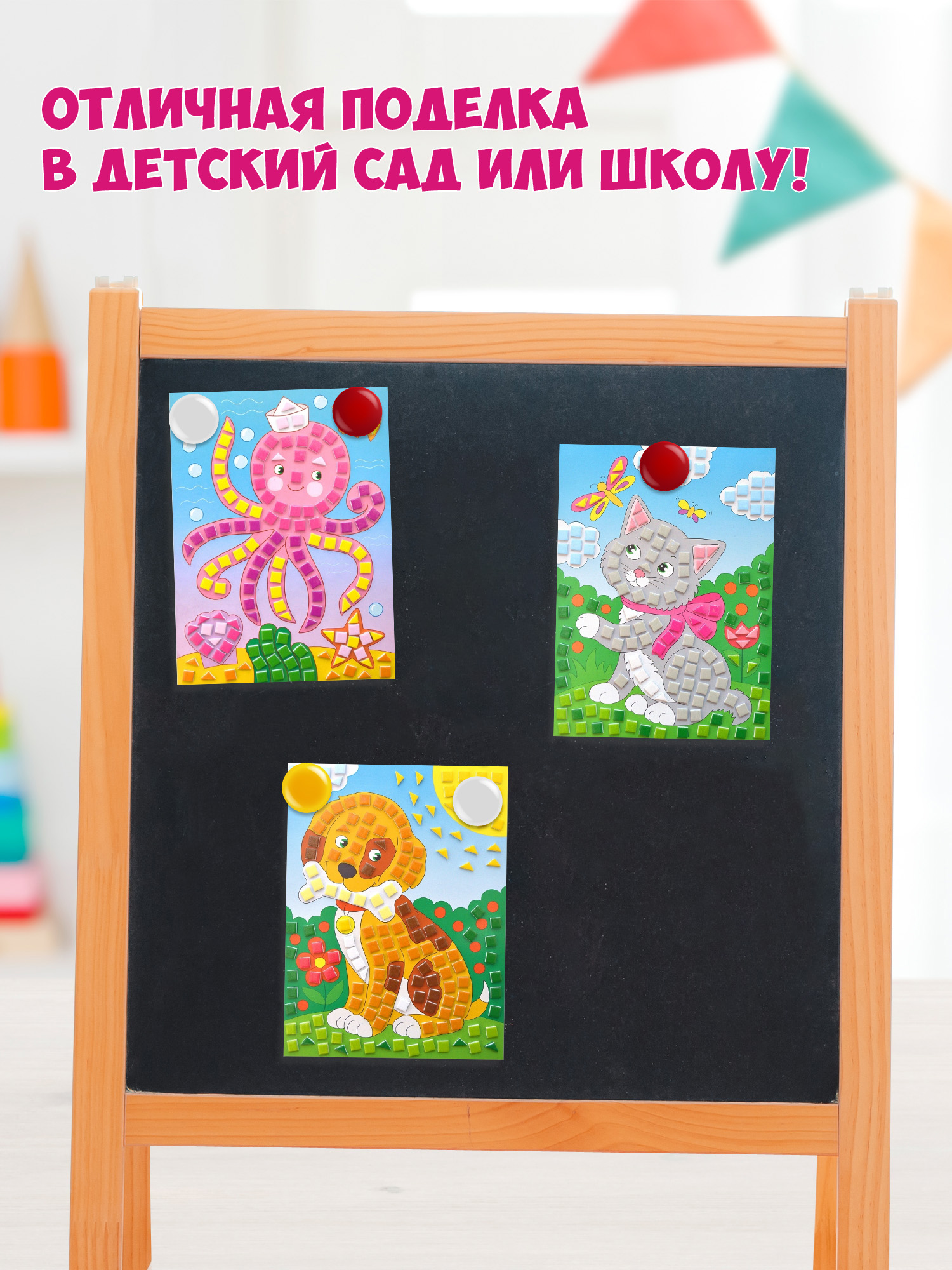 Разноцветная мозаика – это оригинальная и яркая объёмная аппликация для детей. В наборе для творчества есть все необходимое - 3 аппликации и 3 набора деталей на самоклеящейся основе. Детали мозаики выполнены в виде квадратиков и треугольников из мягкого пластика ЭВА с переливающимся декоративным покрытием. Размер одного элемента – 7х7 мм .