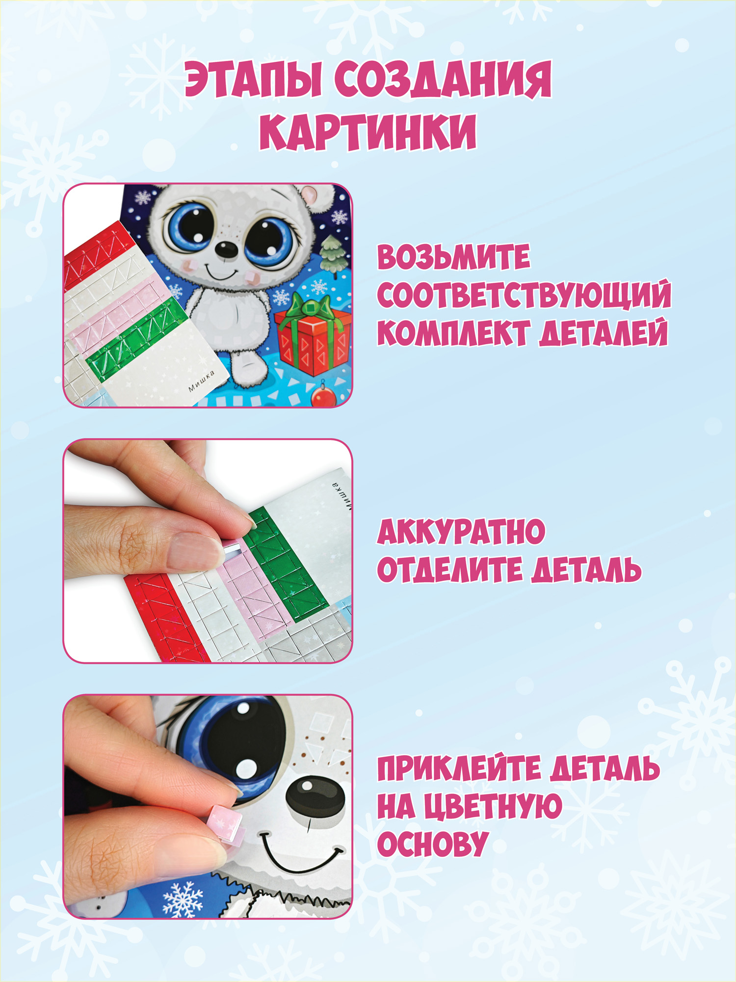 - 3 набора разноцветных пластин с мягкими самоклеящимися деталями;