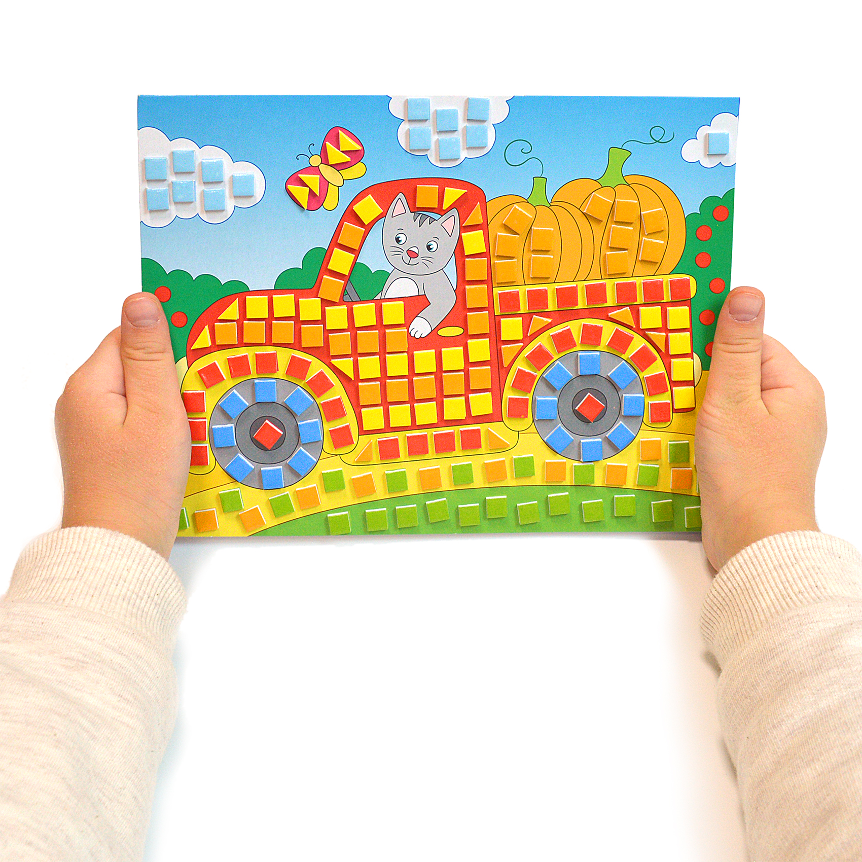Разноцветная мозаика — это оригинальная и яркая объёмная аппликация. Детали мозаики выполнены из мягкого пластика ЭВА с переливающимся декоративным покрытием.