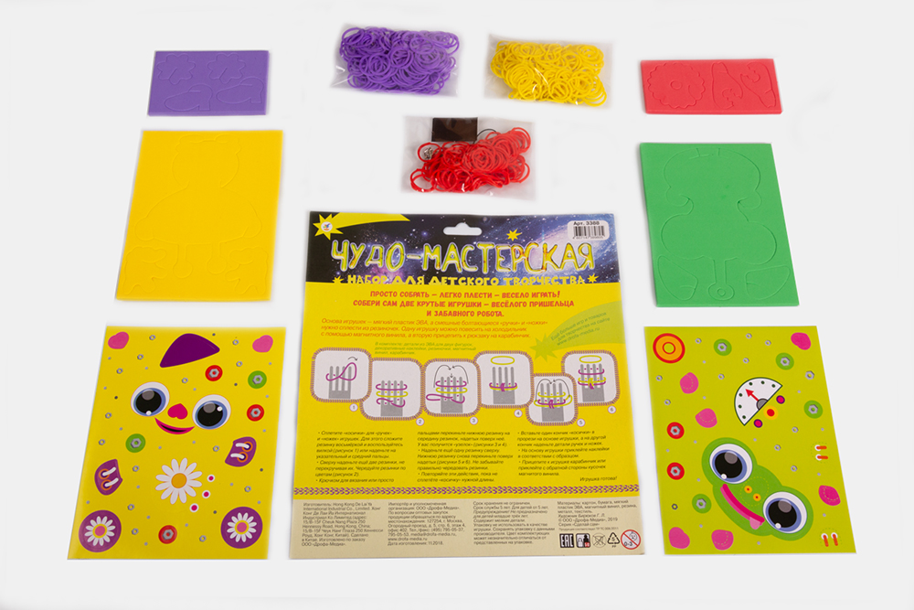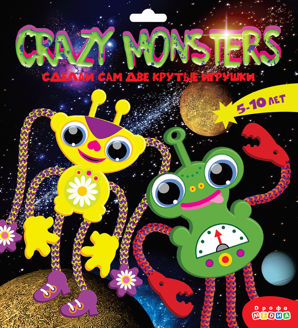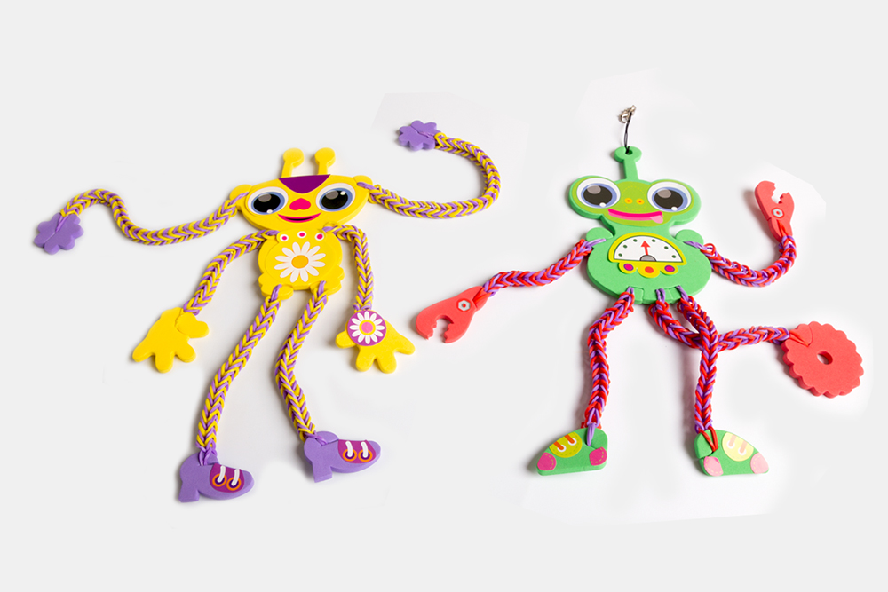 Все дети любят яркие и необычные игрушки. А если игрушка сделана самостоятельно, то становится одной из самых любимых. С набором для творчества Crazy monsters легко сделать целых две крутые игрушки: весёлого пришельца и забавного робота. Основа игрушек — лёгкий и прочный ЭВА, а смешные болтающиеся «ручки» и «ножки» нужно сплести из резиночек (подробная инструкция в комплекте). Одну игрушку можно повесить на холодильник с помощью кусочка магнитного винила, а вторую — прицепить к рюкзаку с помощью карабинчика.