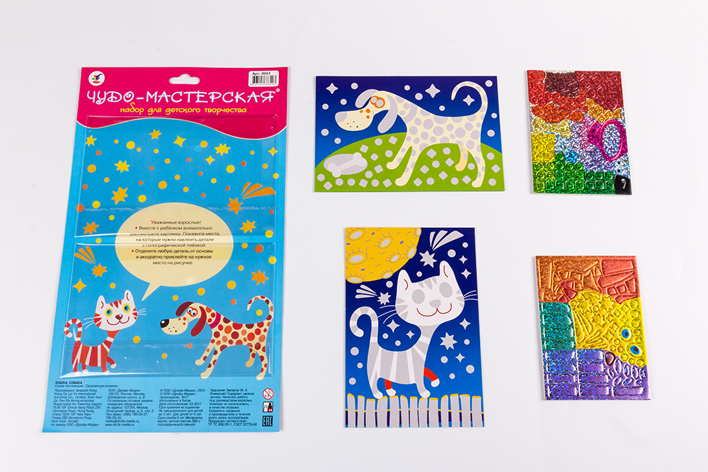 Малыш легко справится с работой, ведь ему не нужны ни клей, ни ножницы: объёмные детали легко приклеятся на картонную основу. Готовая картинка станет прекрасным подарком для родных и друзей, или просто украшением детской комнаты.