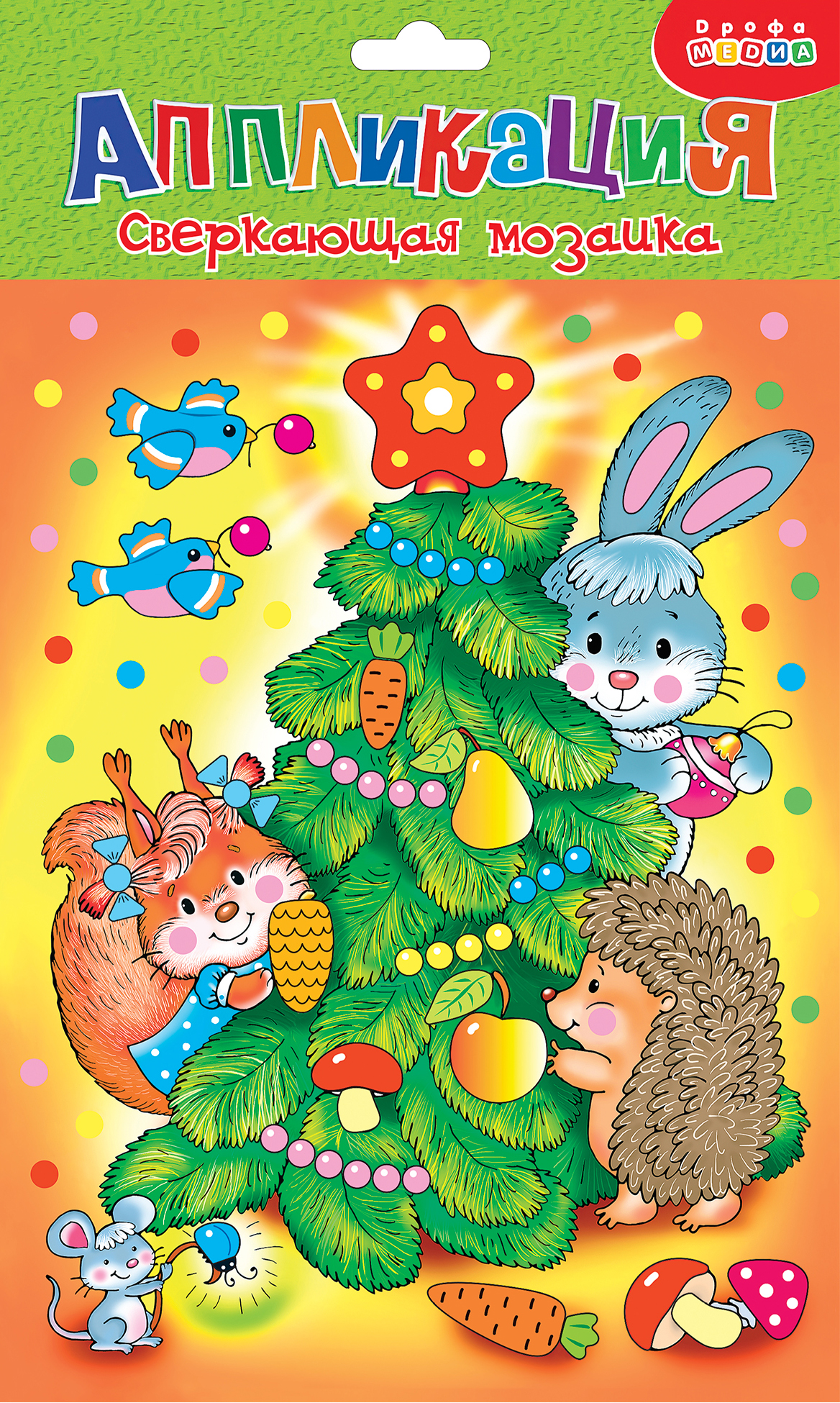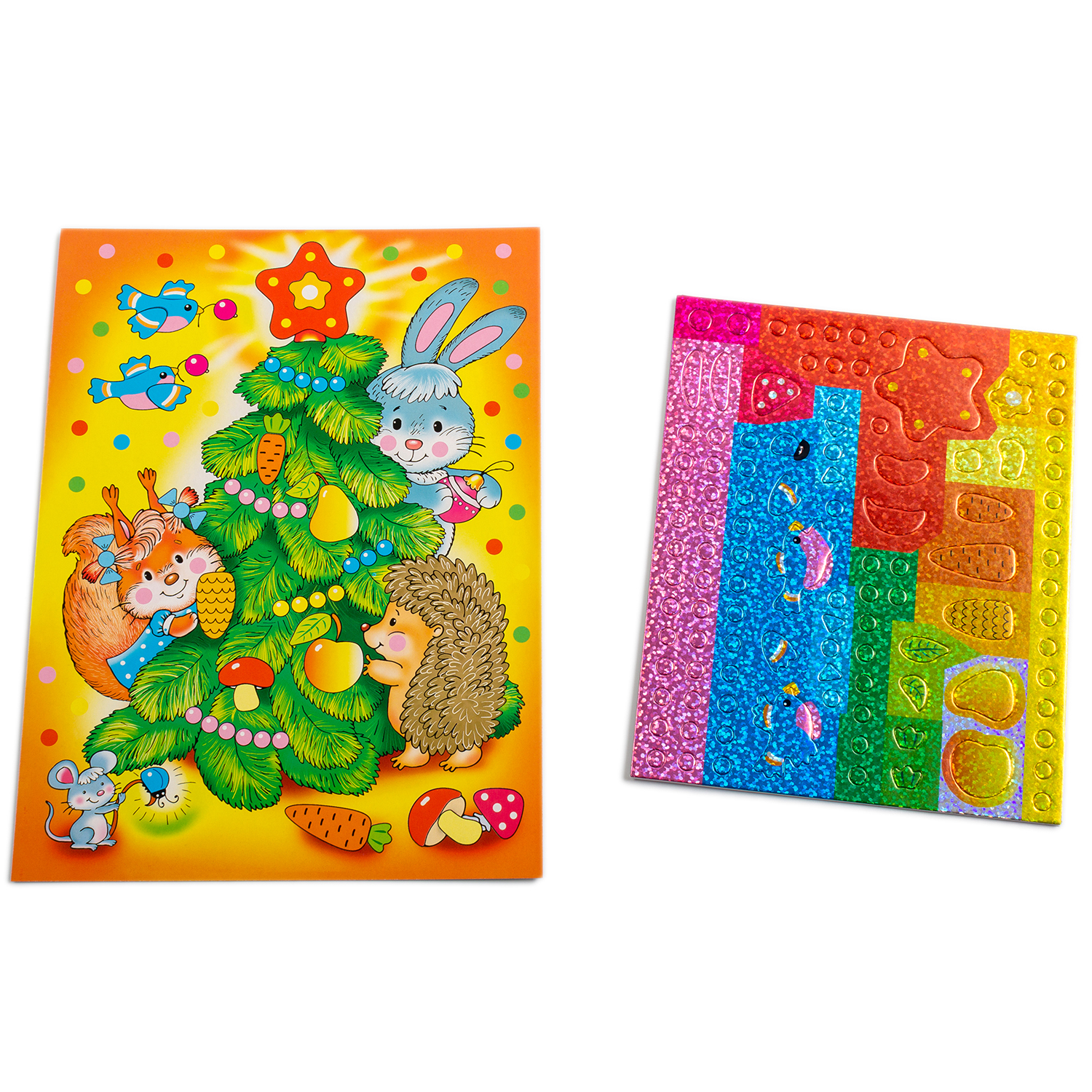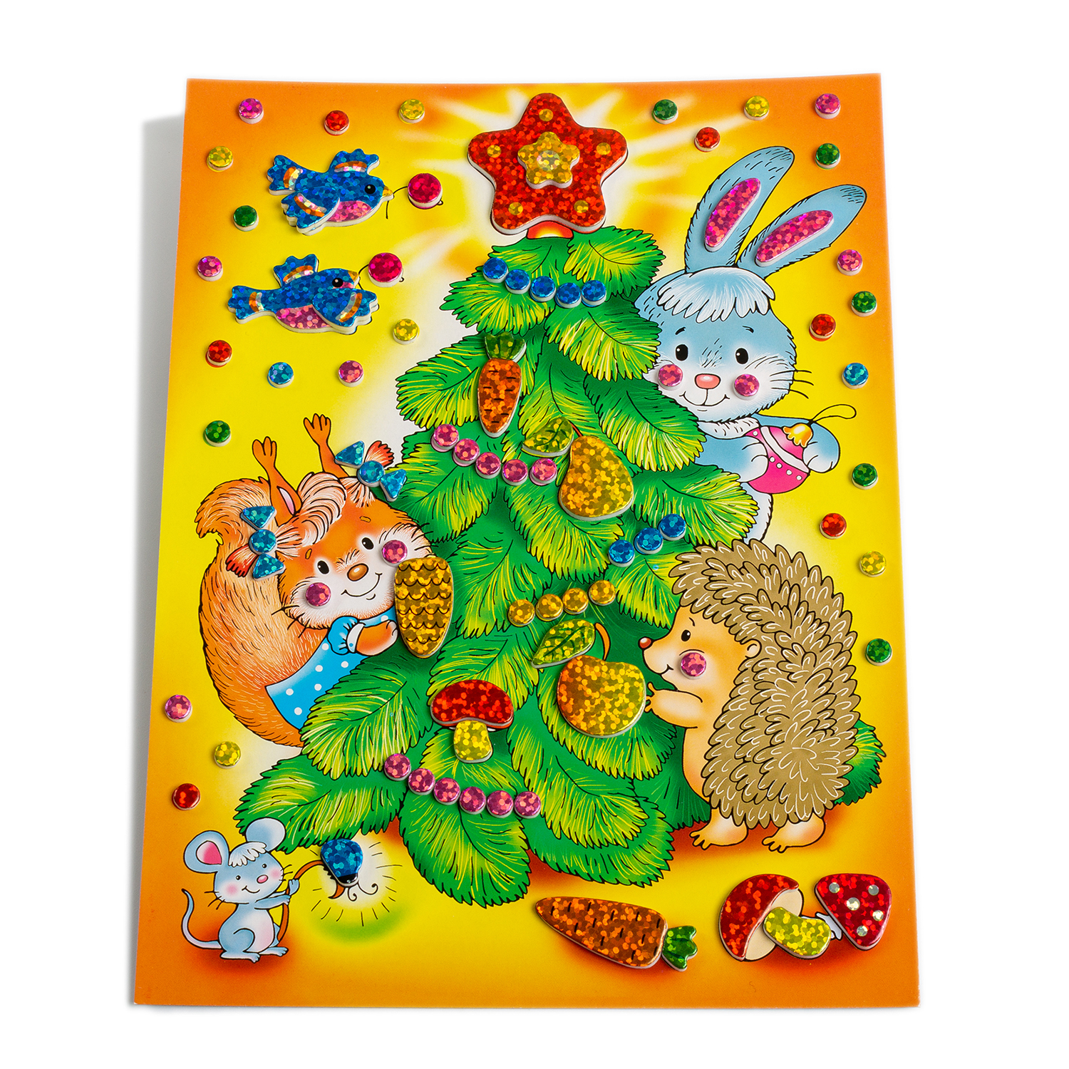 Праздничная и яркая аппликация, состоящая из красочных деталей, отличающихся по форме и размерам. Готовое изделие эффектно переливается всеми цветами радуги, благодаря покрытию деталей мозаики голографической плёнкой, придающей им необыкновенный блеск.