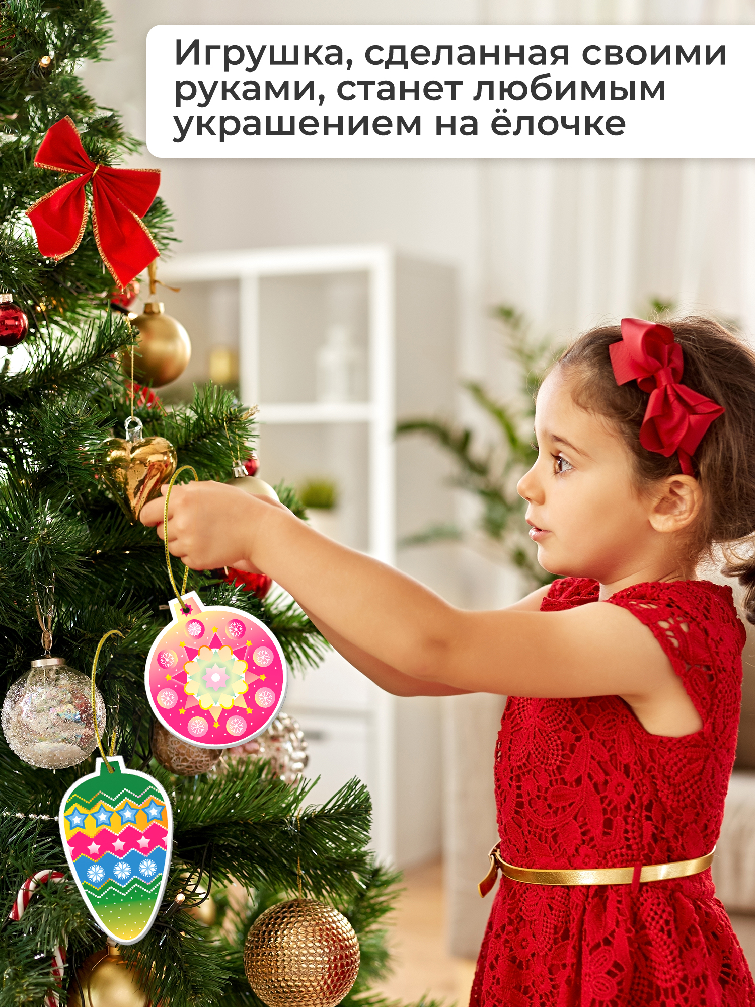 Каждый ребёнок любит наряжать ёлочку, а если игрушки сделаны своими руками, это принесёт ещё больше удовольствия и станет поводом для гордости перед гостями.