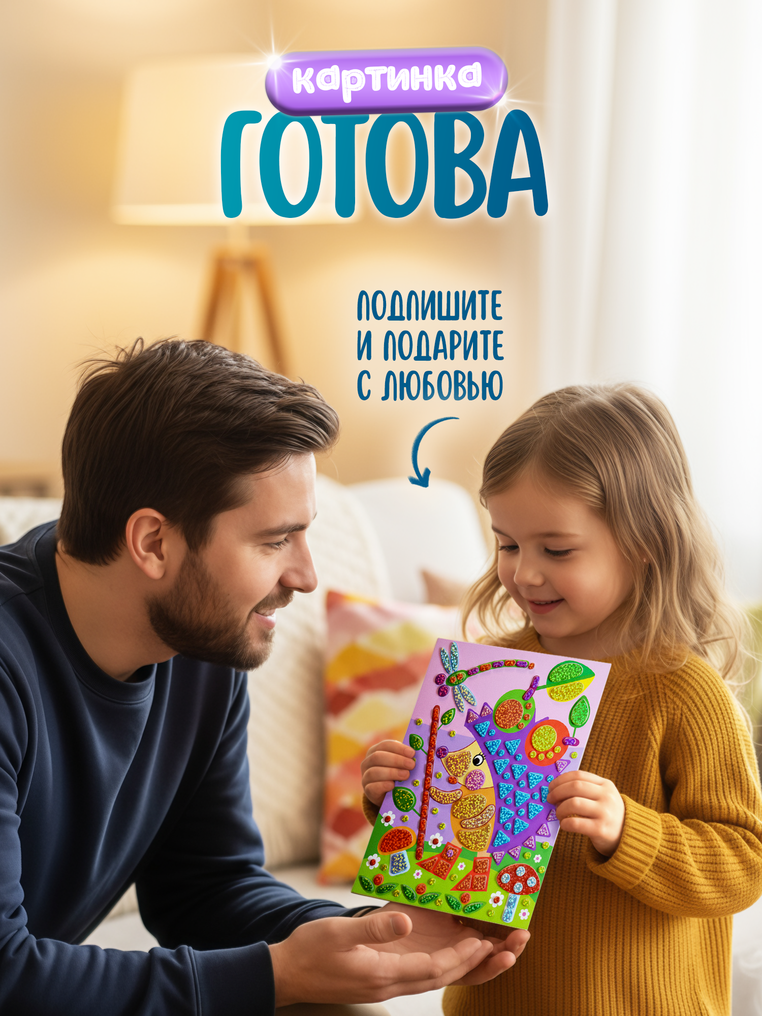 Готовая картинка станет прекрасным подарком для родных и друзей, или просто украшением детской комнаты.