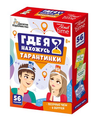 Настольная игра «Тарантинки. Где я нахожусь?». Серия Актив time - это командная игра для хорошей компании. Ты должен угадать, что у тебя «написано на лбу», задавая вопросы другим игрокам. А они должны быстро ответить «да» или «нет». При этом карточка с ответом крепится в специальном обруче, который надет на твою голову.