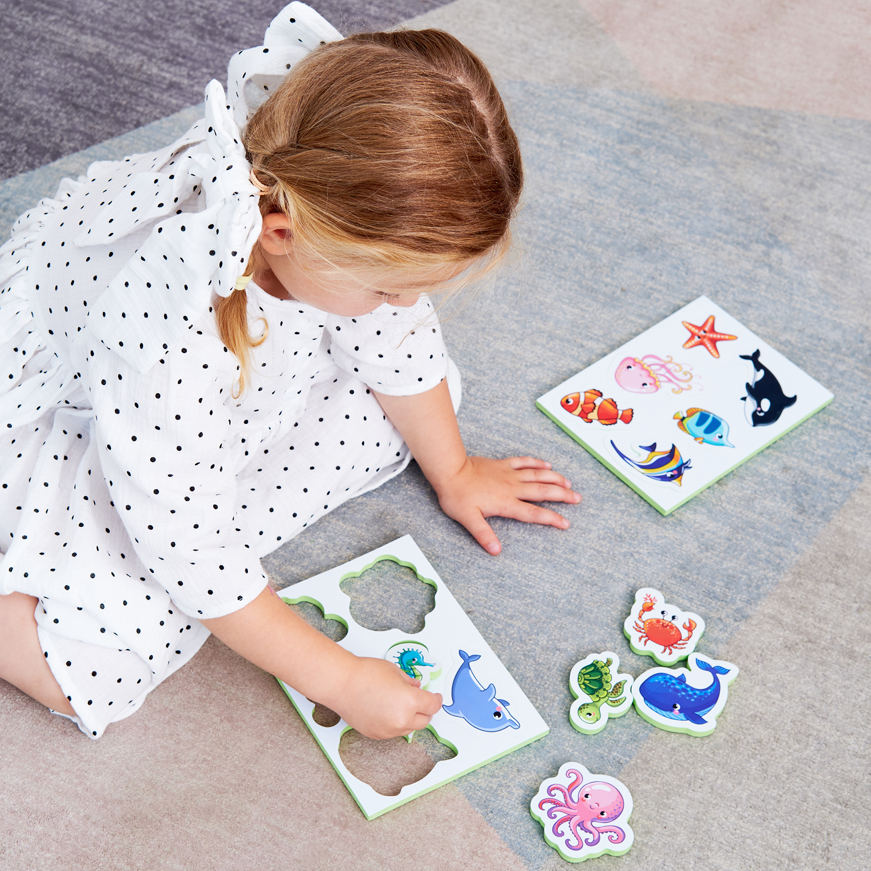В серии представлены разные наборы: звери, транспорт, морские обитатели, любимые игрушки.