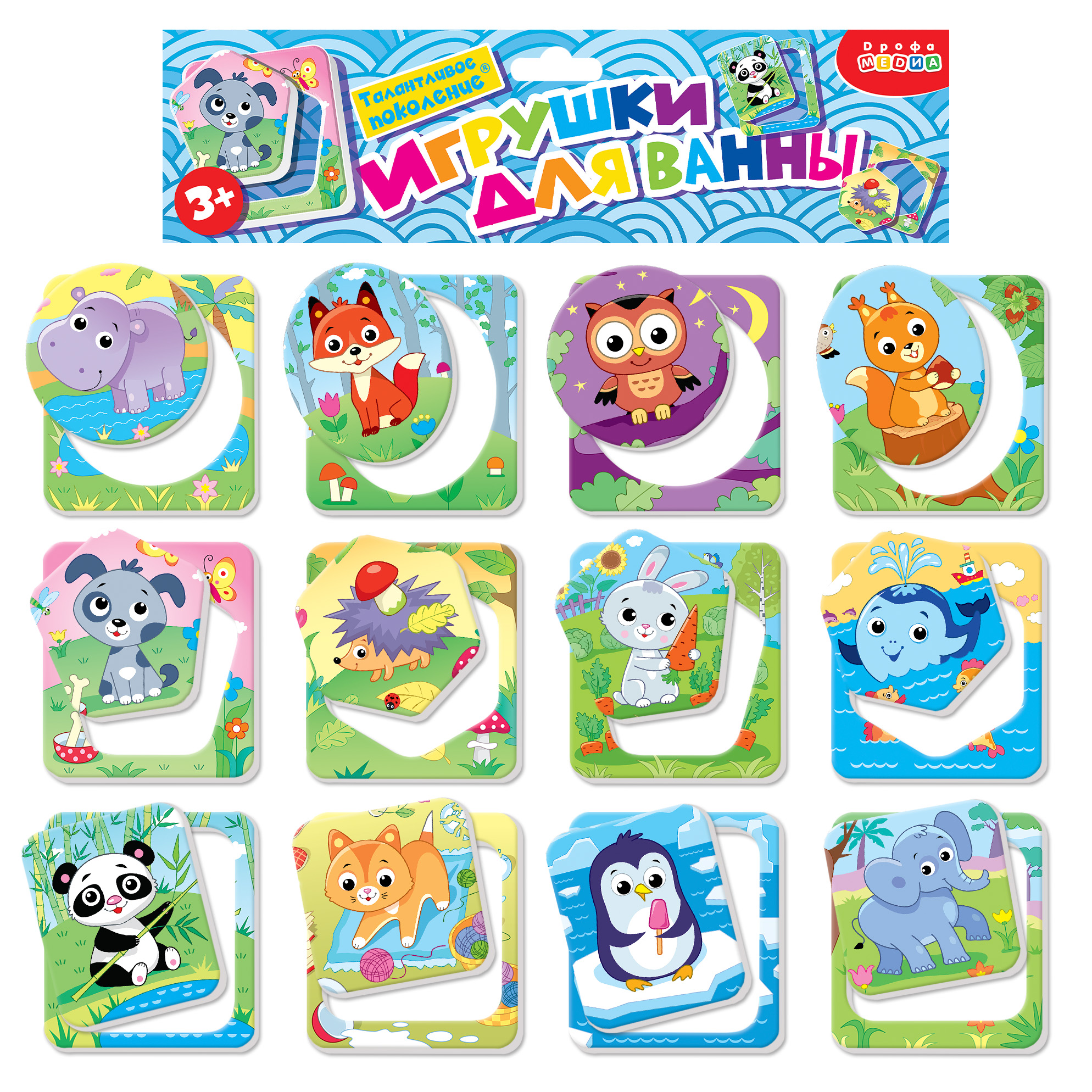 Набор игрушек для ванны, с ним можно купаться и использовать как рамку с вкладышами.