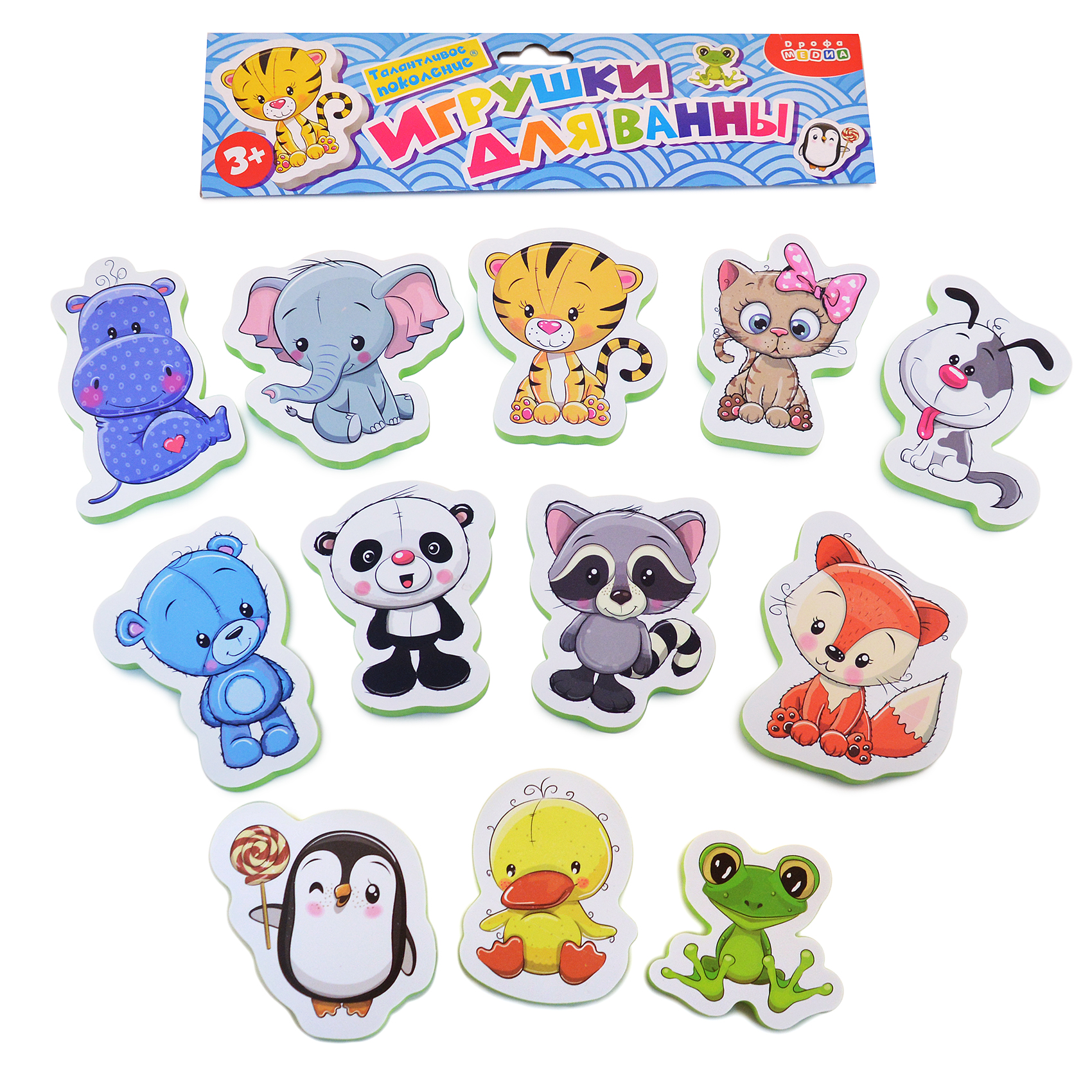 Перед вами набор игрушек для ванны, с которым можно купаться, а ещё использовать как рамку с вкладышами. Он изготовлен из мягкого пластика ЭВА. Благодаря материалу, игрушки могут плавать и прилипать к стенкам ванны, керамической плитке и другим гладким поверхностям, которые не боятся воды. Лёгкие, приятные на ощупь игрушки безопасны для детей.