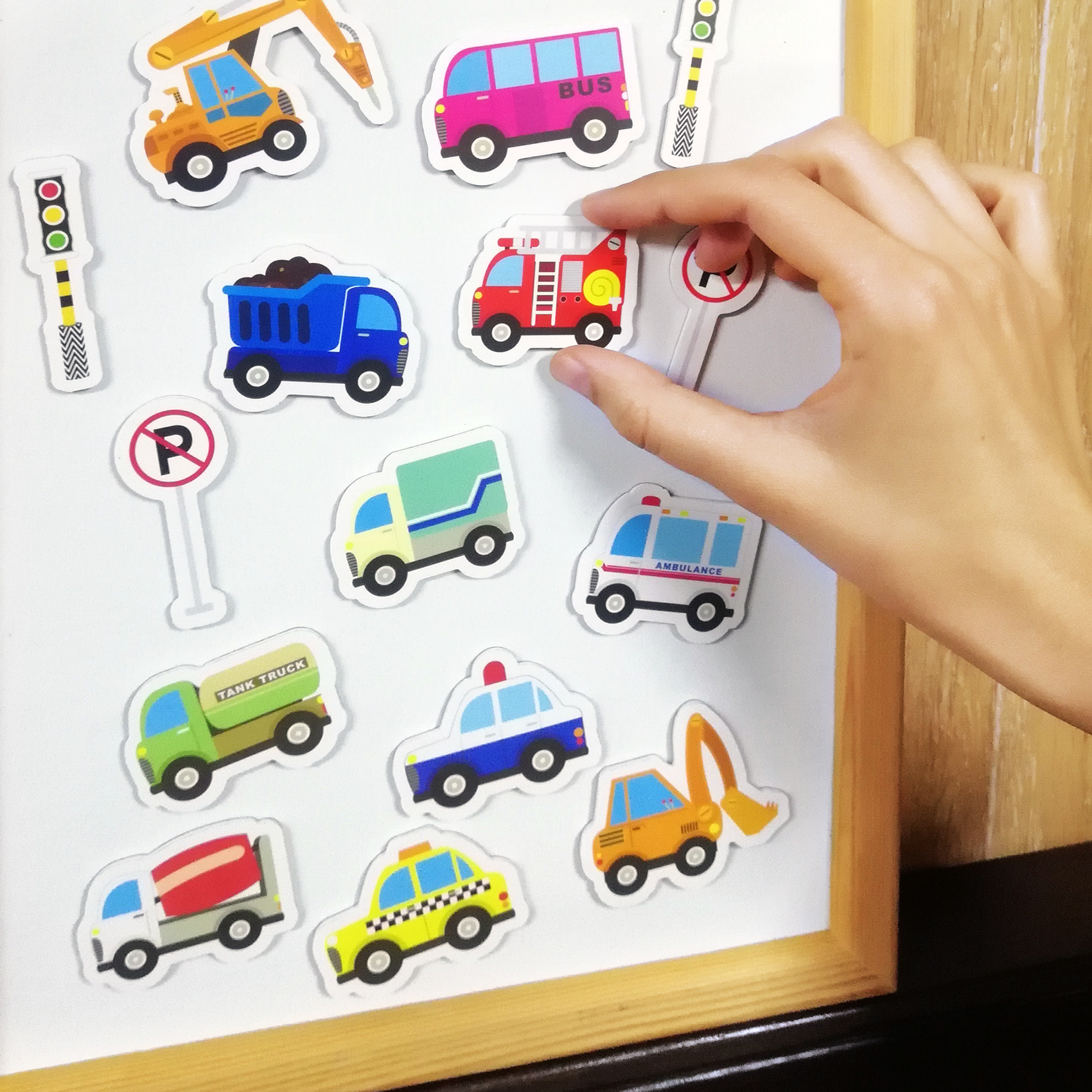 Перед вами набор магнитных фигурок для сюжетно-ролевой игры. Разместите магнитики на холодильнике или магнитной доске. Благодаря толщине материала ребёнку будет удобно перемещать фигурки по поверхности.