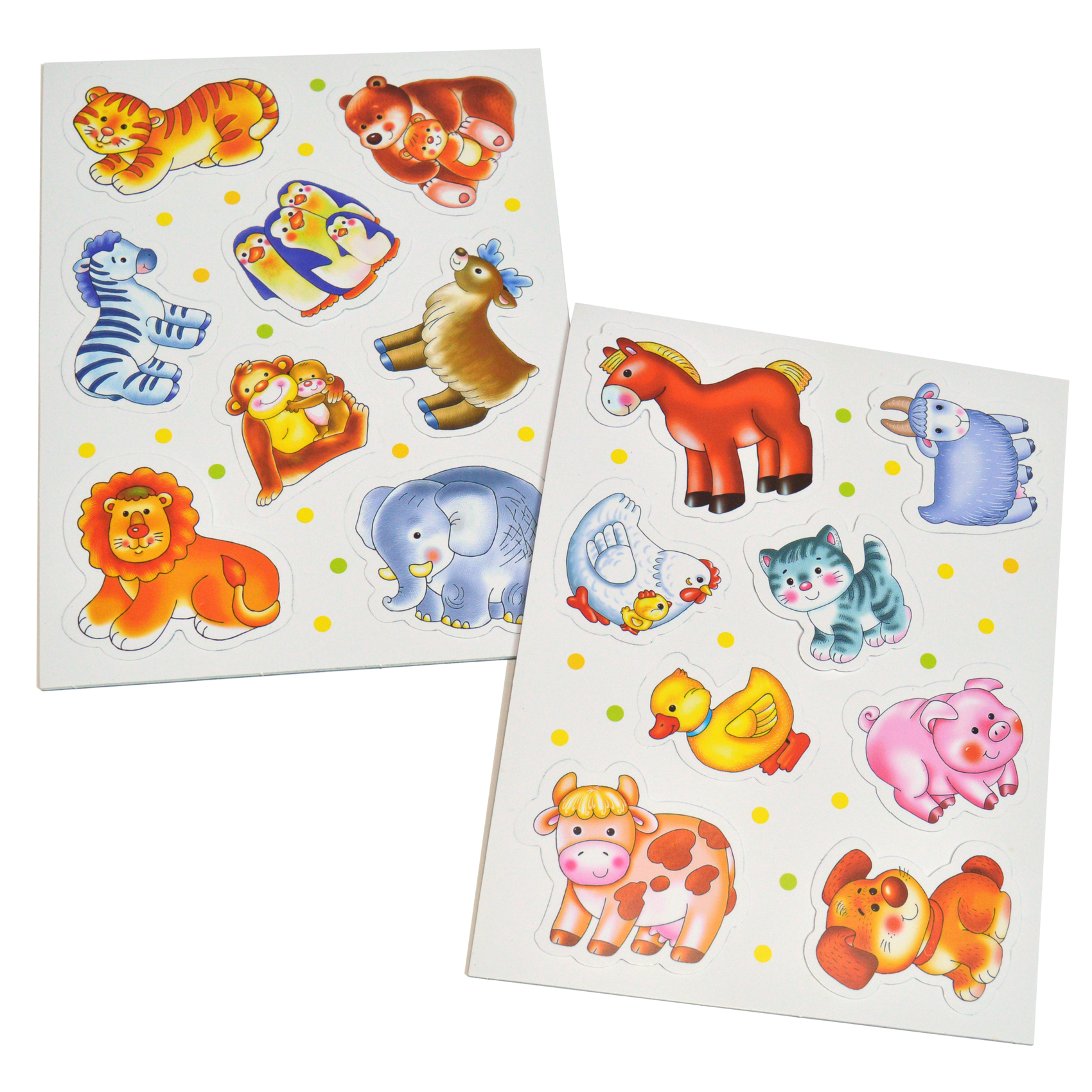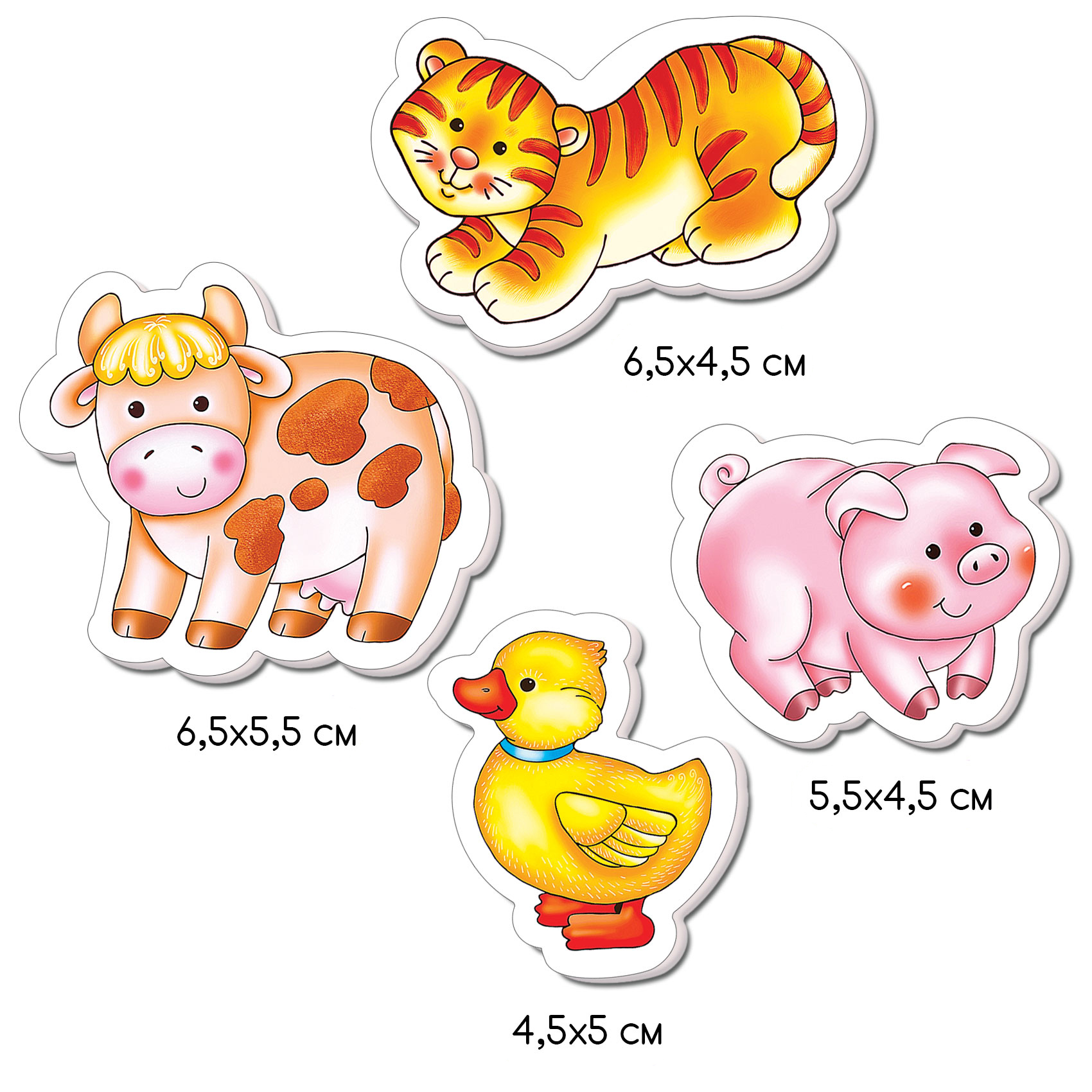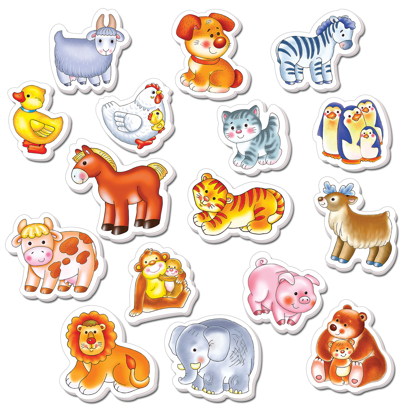 В наборе 8 фигурок домашних животных и 8 фигурок диких животных. Спросите малыша, чем животные похожи между собой и чем различаются. Поощряйте желание ребёнка придумывать сюжеты для взаимодействия героев.