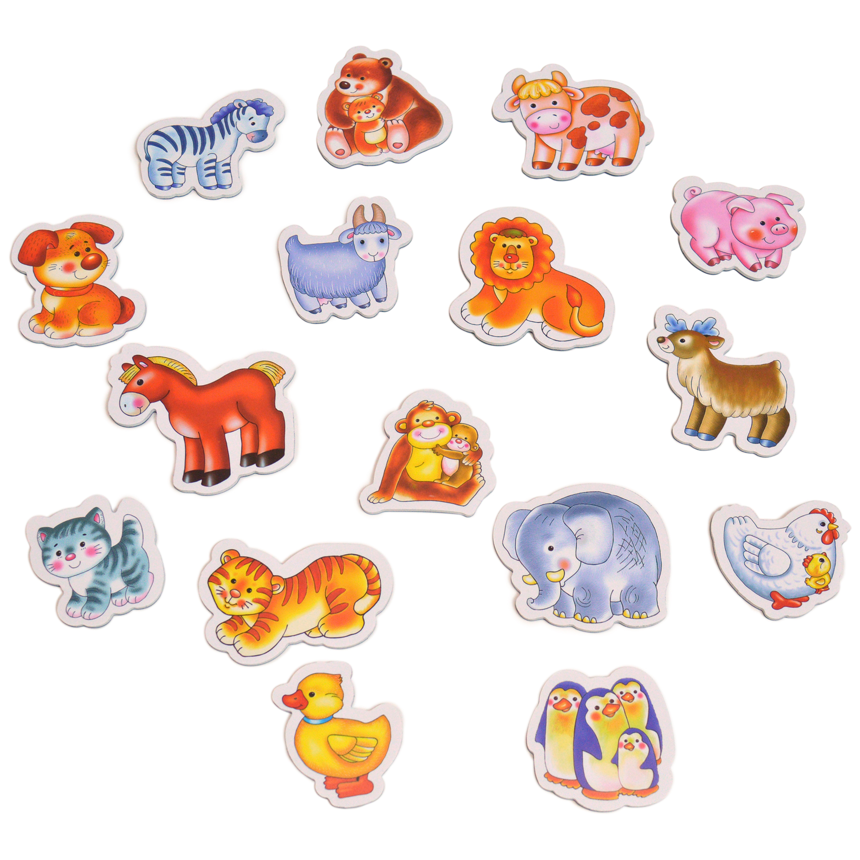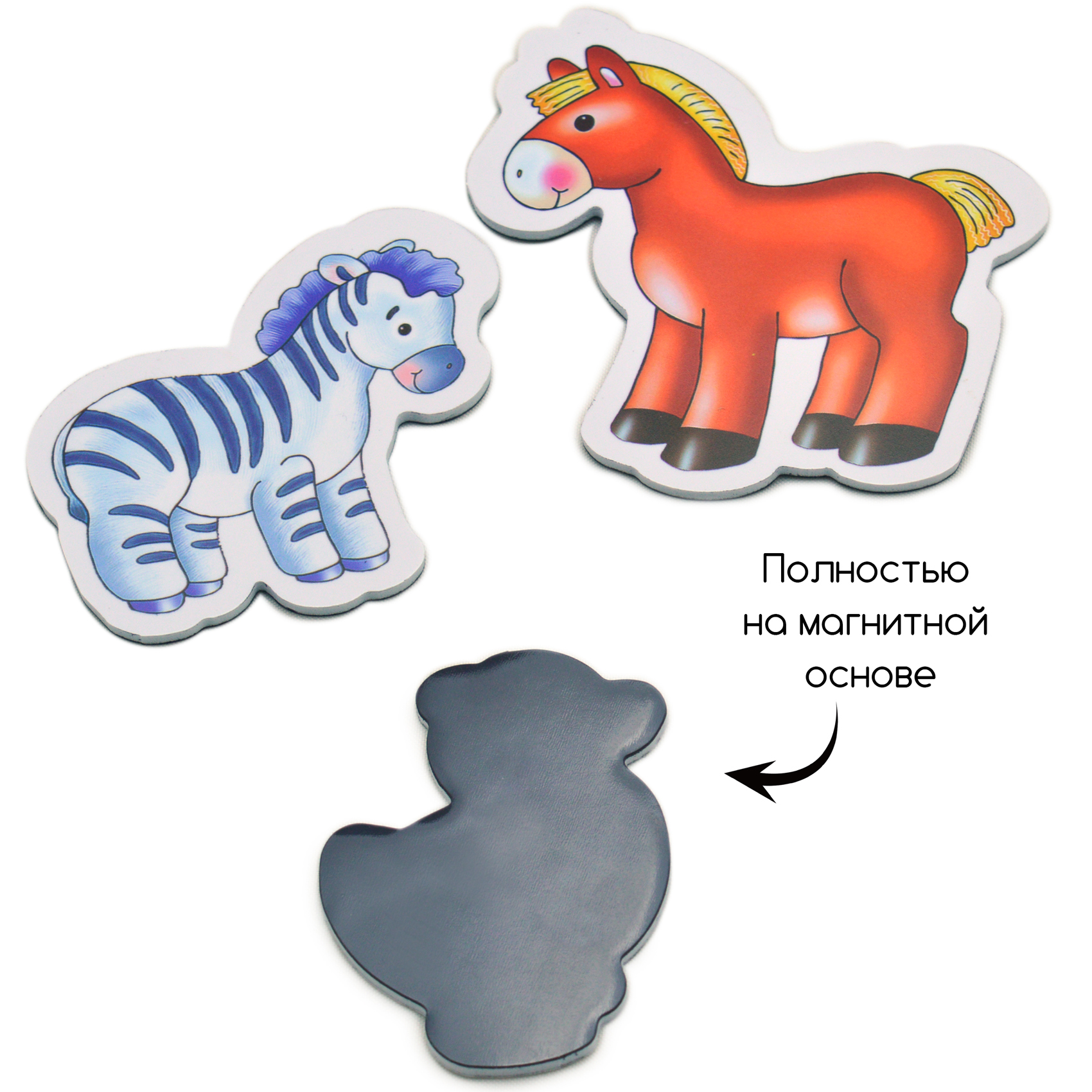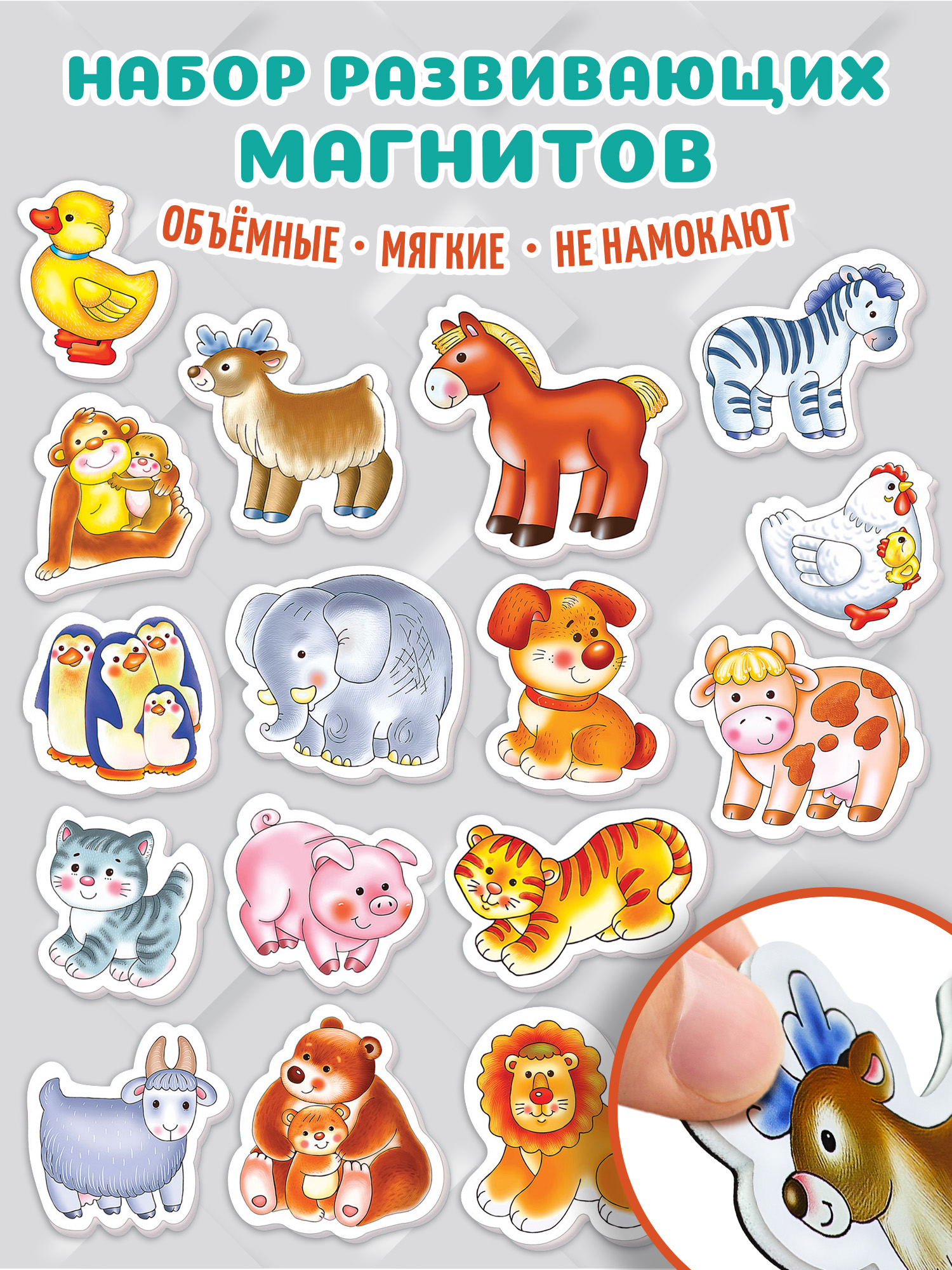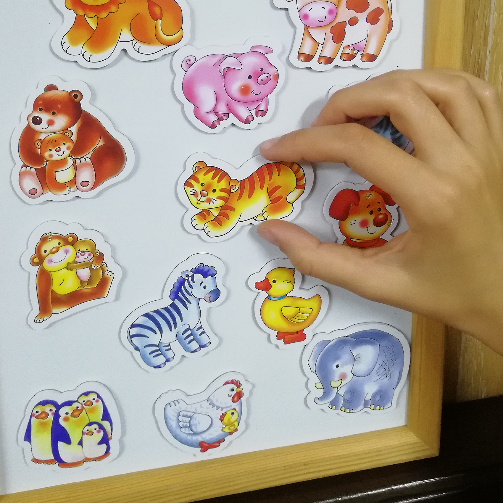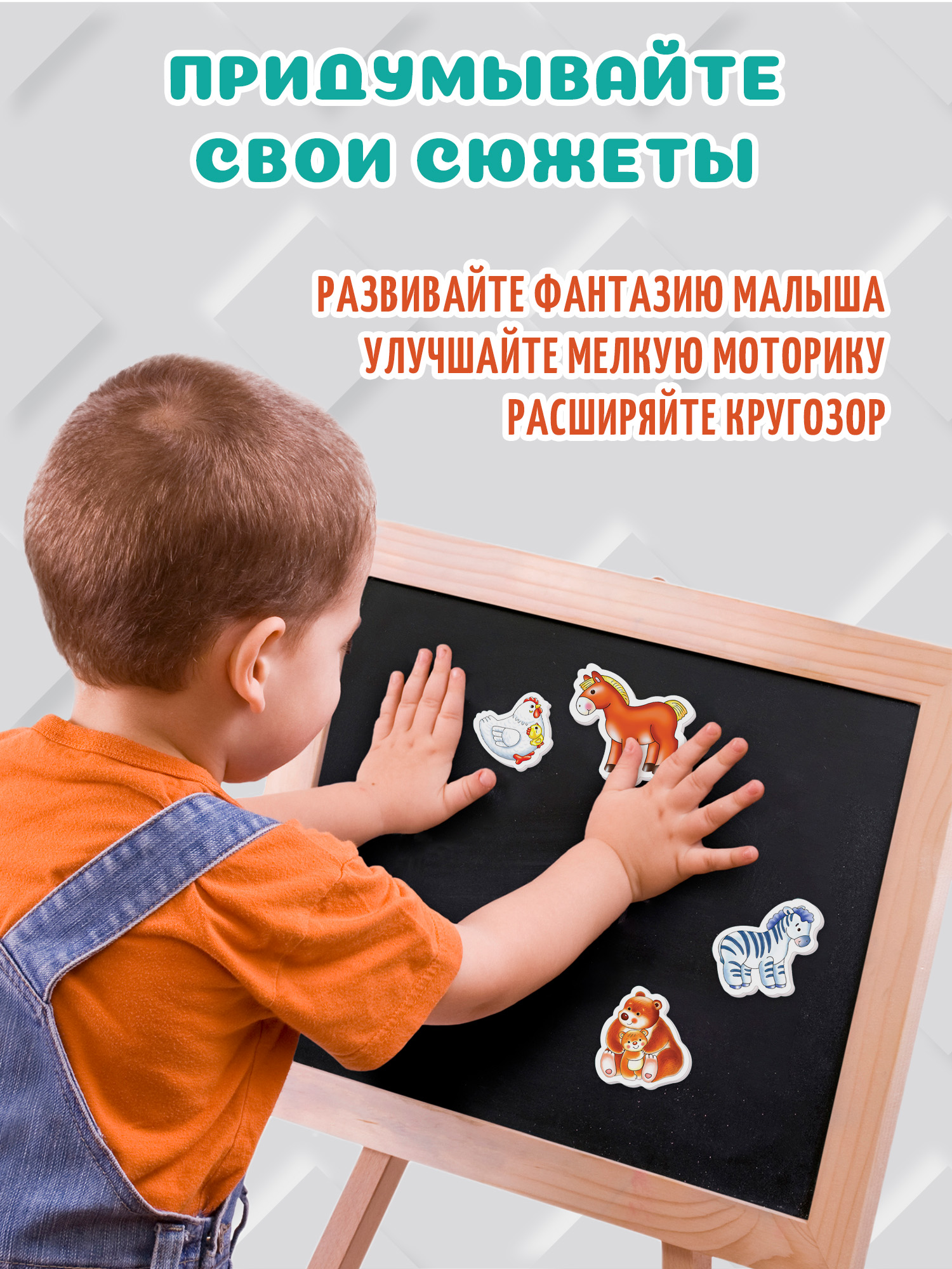Разместите магнитики на холодильнике или магнитной доске. Благодаря толщине материала ребёнку будет удобно перемещать фигурки по поверхности.