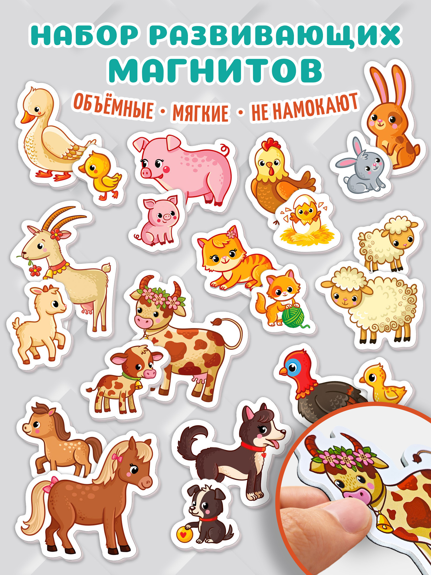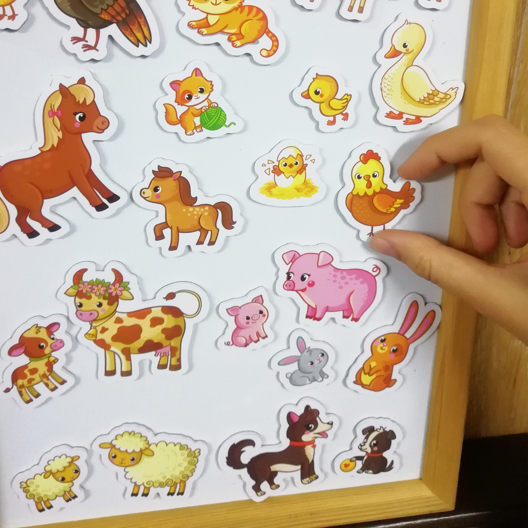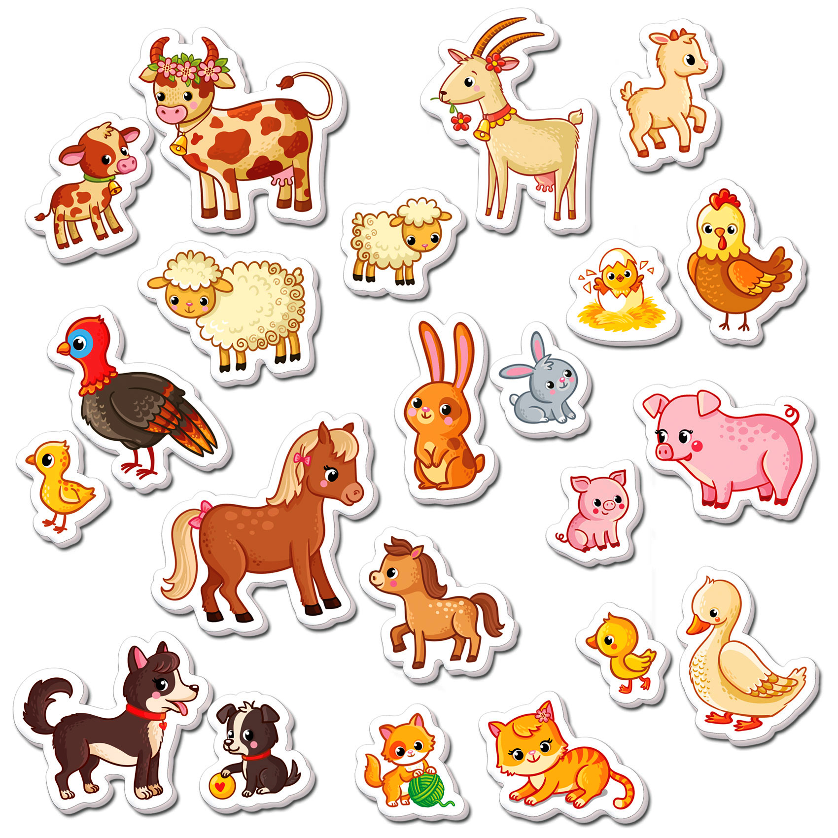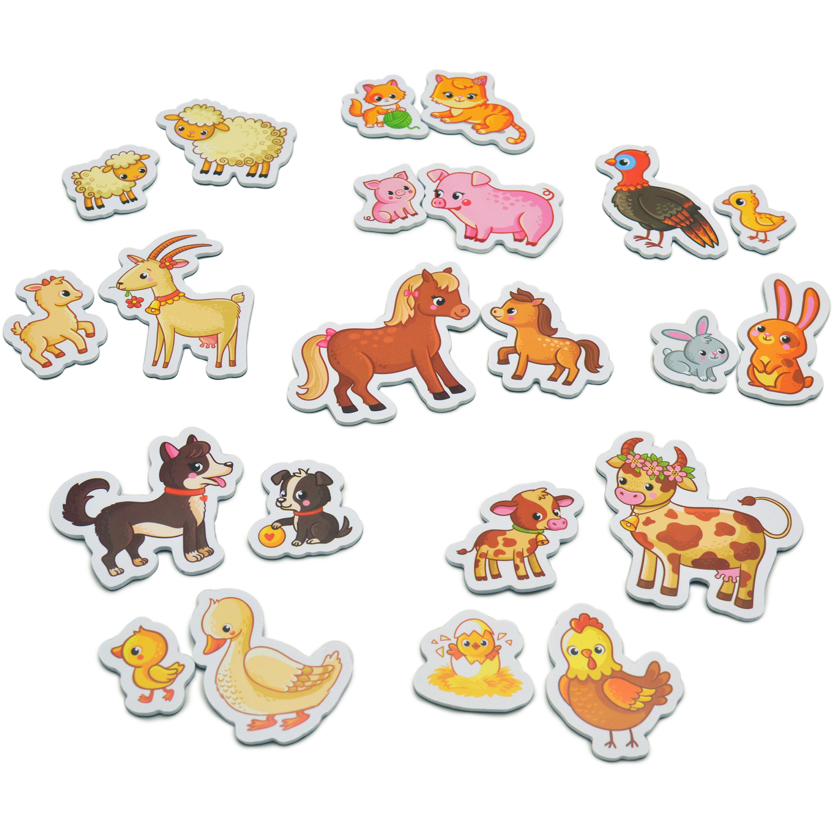 Перед вами набор магнитных фигурок для сюжетно-ролевой игры. Разместите магнитики на холодильнике или магнитной доске. Благодаря толщине материала ребёнку будет удобно перемещать фигурки по поверхности. Познакомьте малыша с названиями животных и детёнышей, помогите подобрать пары. Поощряйте желание ребёнка придумывать сюжеты для взаимодействия героев.