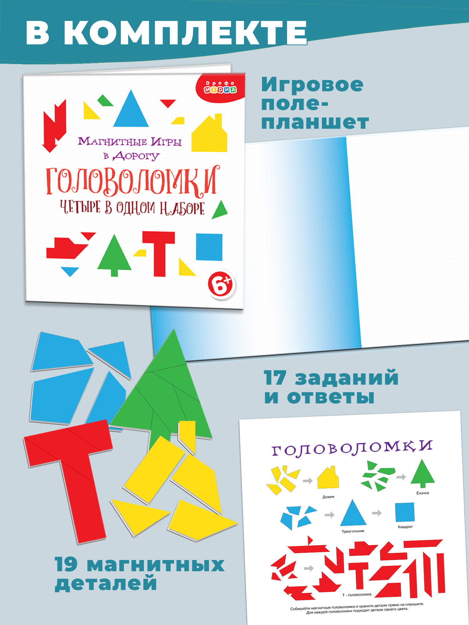 В комплекте: планшет, 19 деталей на магнитах, листовка с заданиями и ответами.
