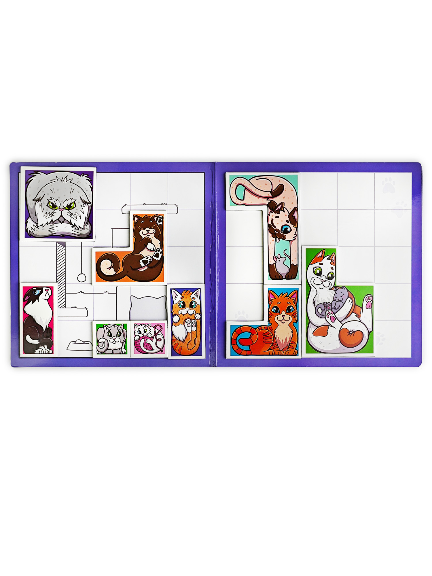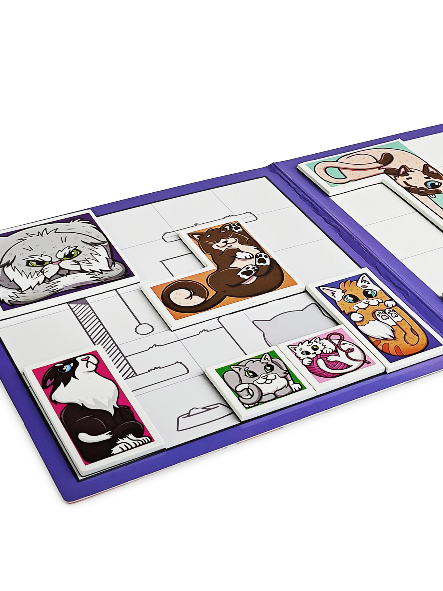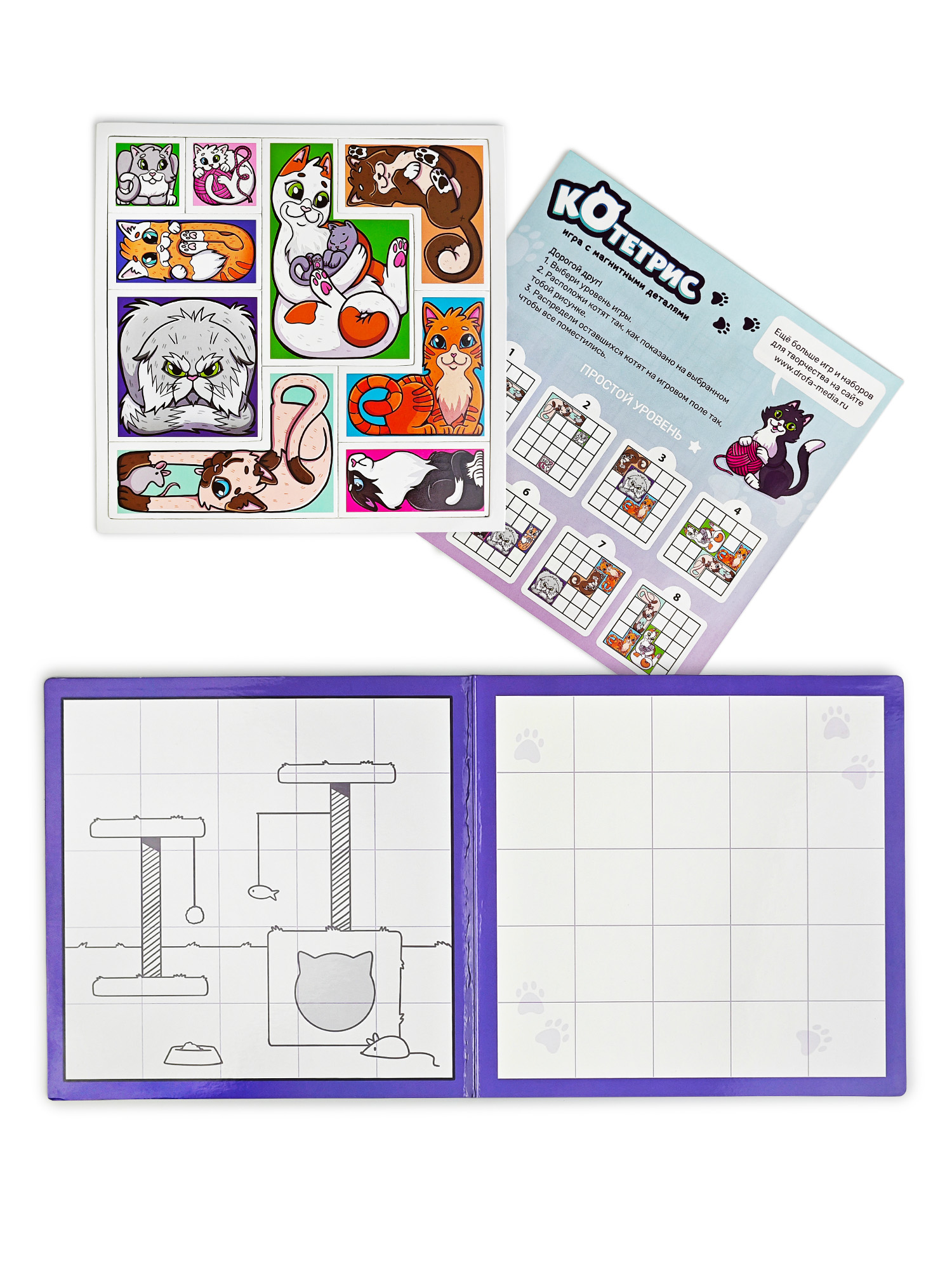 В комплекте: планшет, 9 кото-деталей на магнитах, листовка с заданиями.